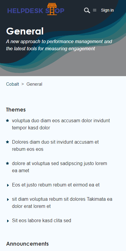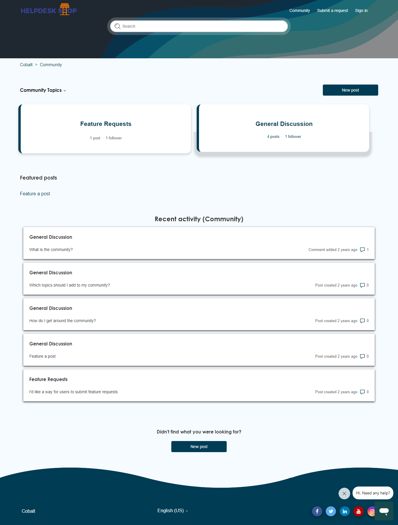The Cobalt Theme Key features - 1. Custom Block Icons at the top and bottom of the home page 2. Custom hero image for the homepage and community homepage 3. Responsive web design 4. Set/Unset social media links 5 Block for the direct navigation to categories pages and more.