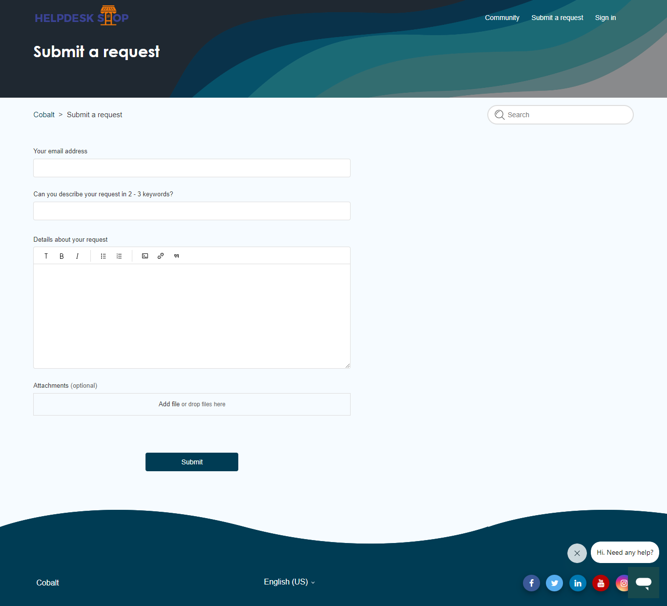 Footer Social Icon You can show/hide your social media icons and add links to your social media accounts. It is displayed in the footer of your help center.