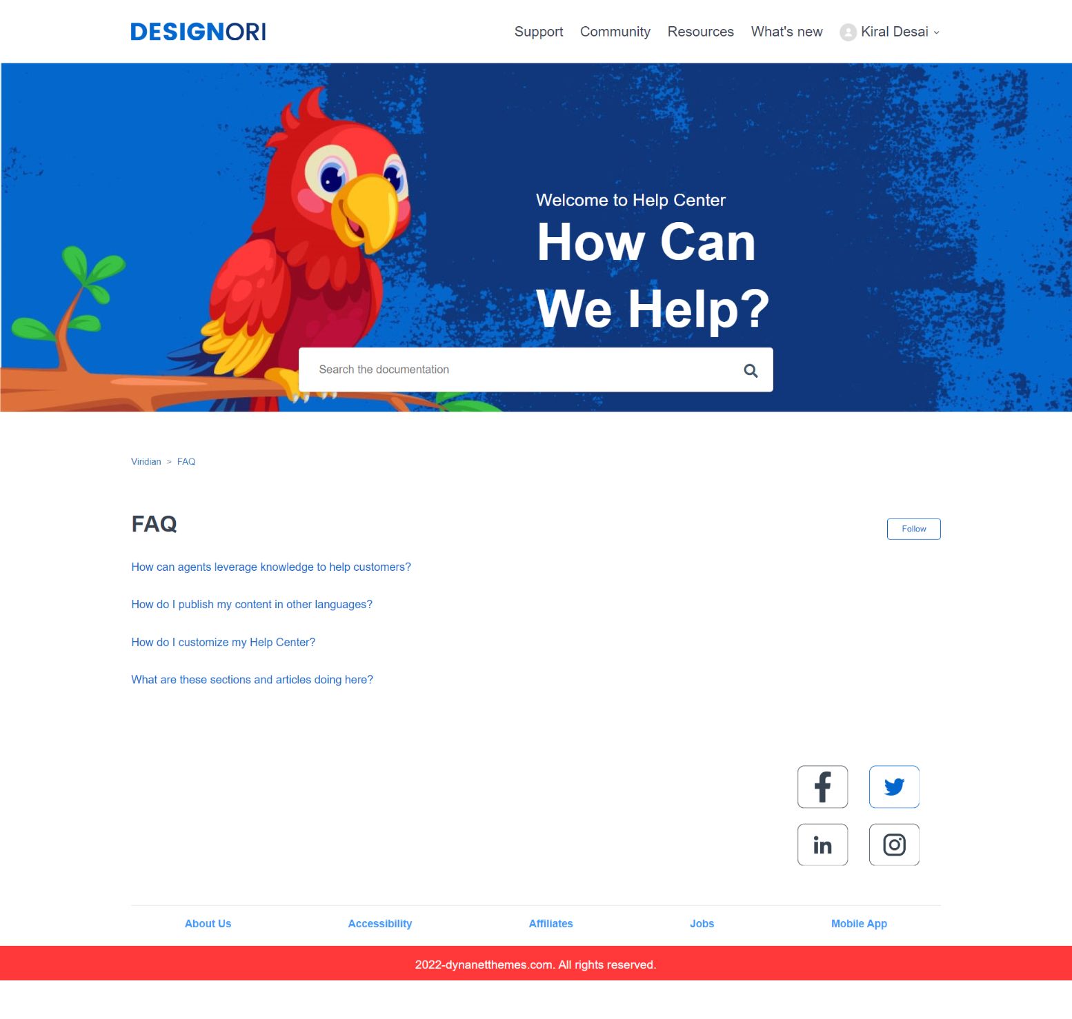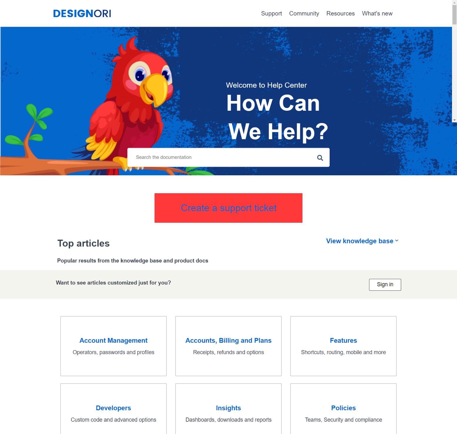 DesignOri is a perfect Zendesk Guide Theme that's packed full of features, including a responsive tabs-style navigation element, various types of configurable custom blocks, and much more.
