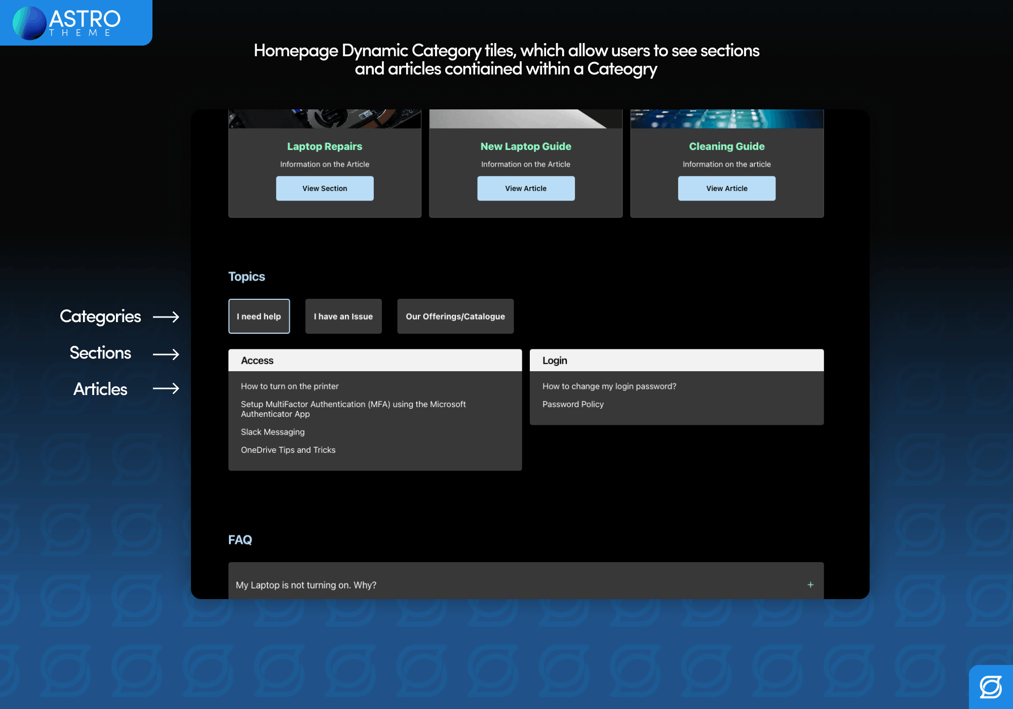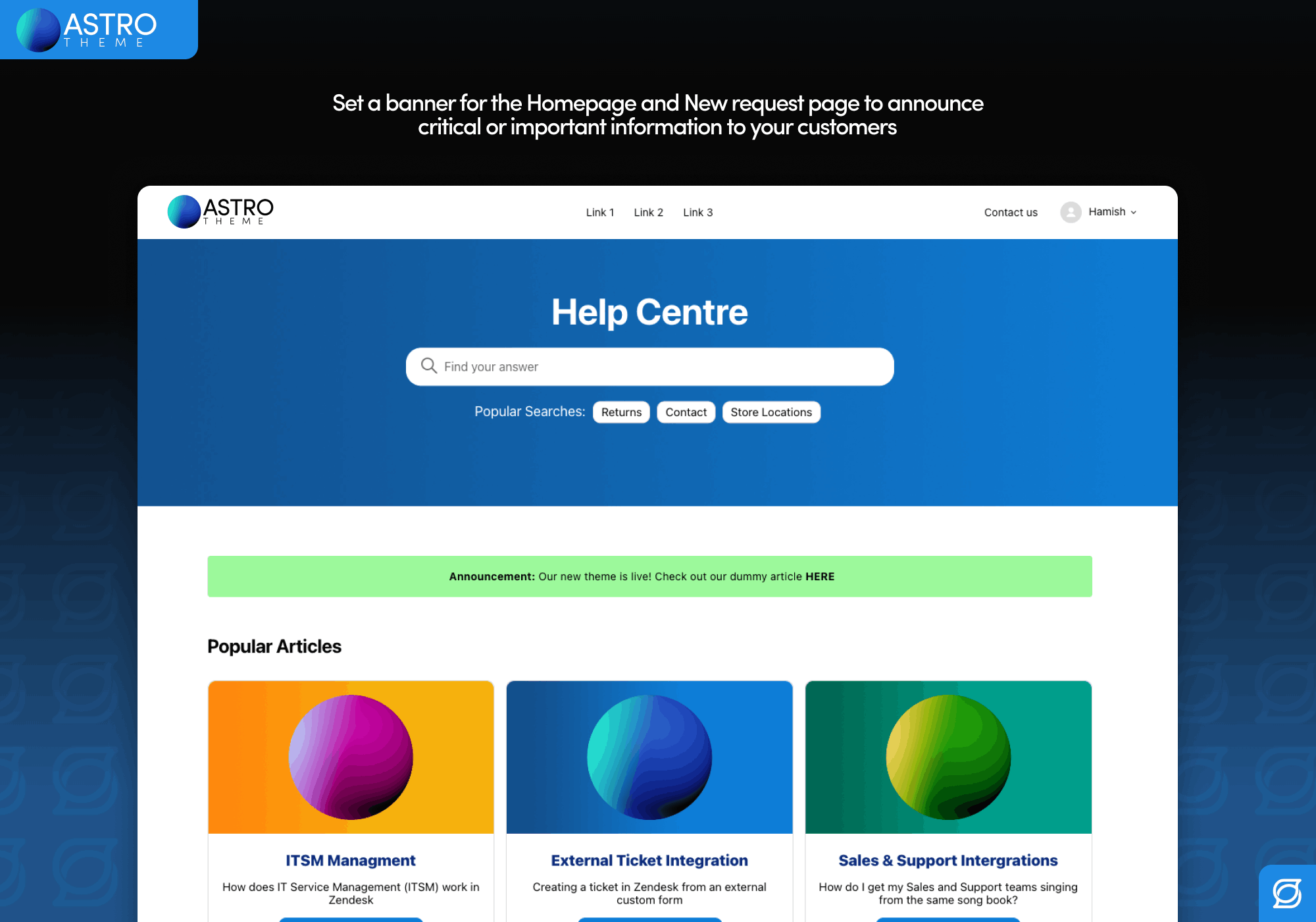 Deliver a fantastic self-service experience with the feature packed and incredibly flexible Astro Theme.