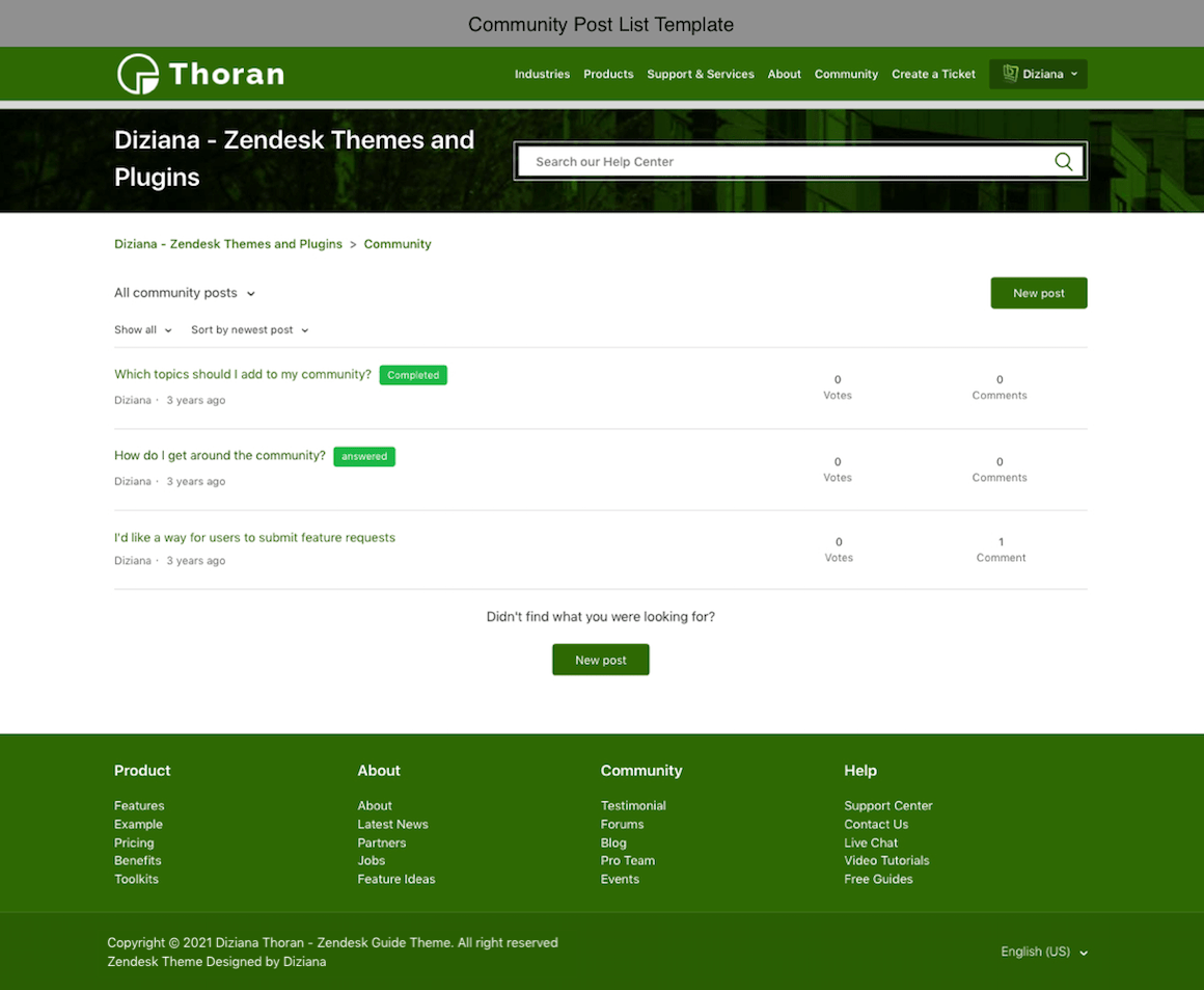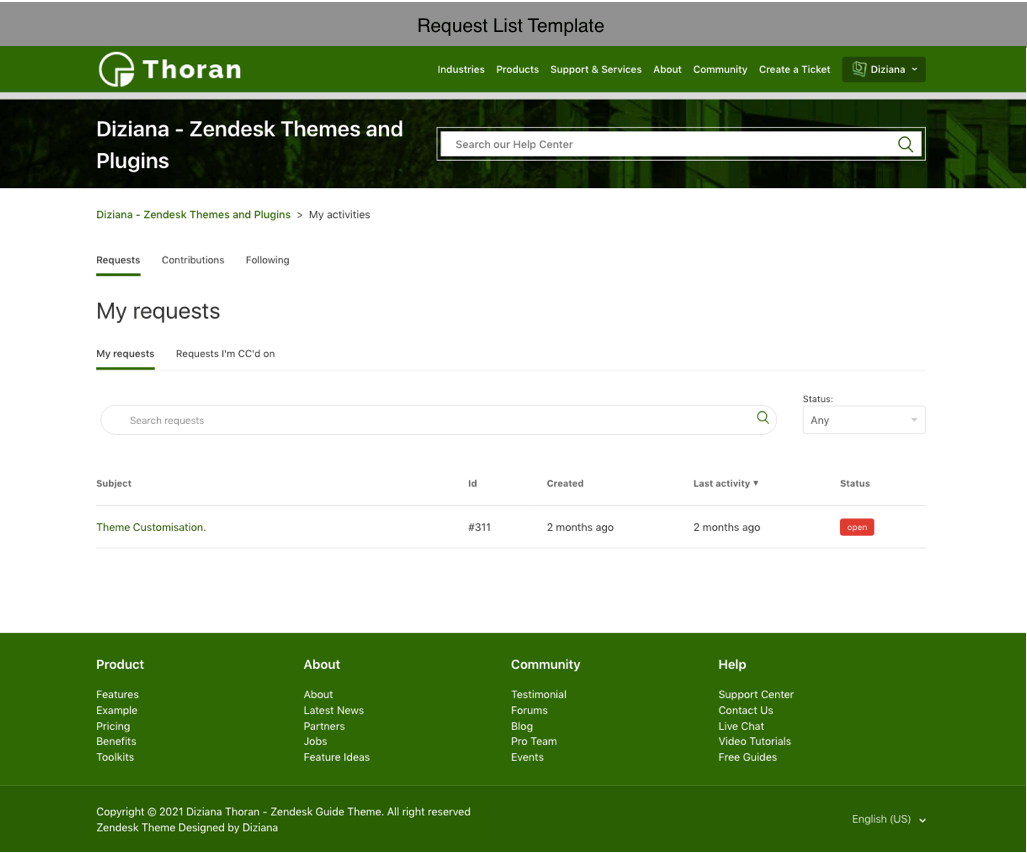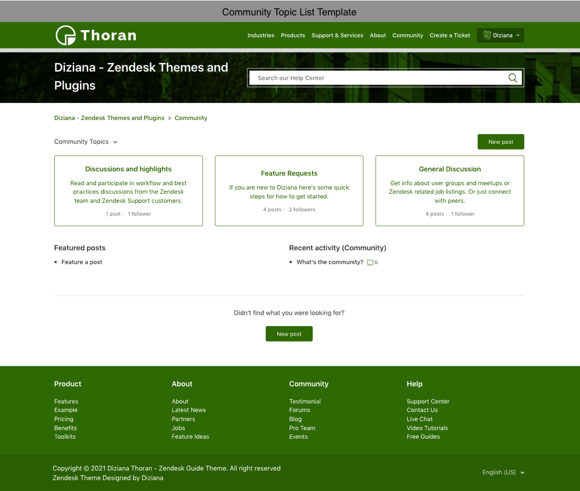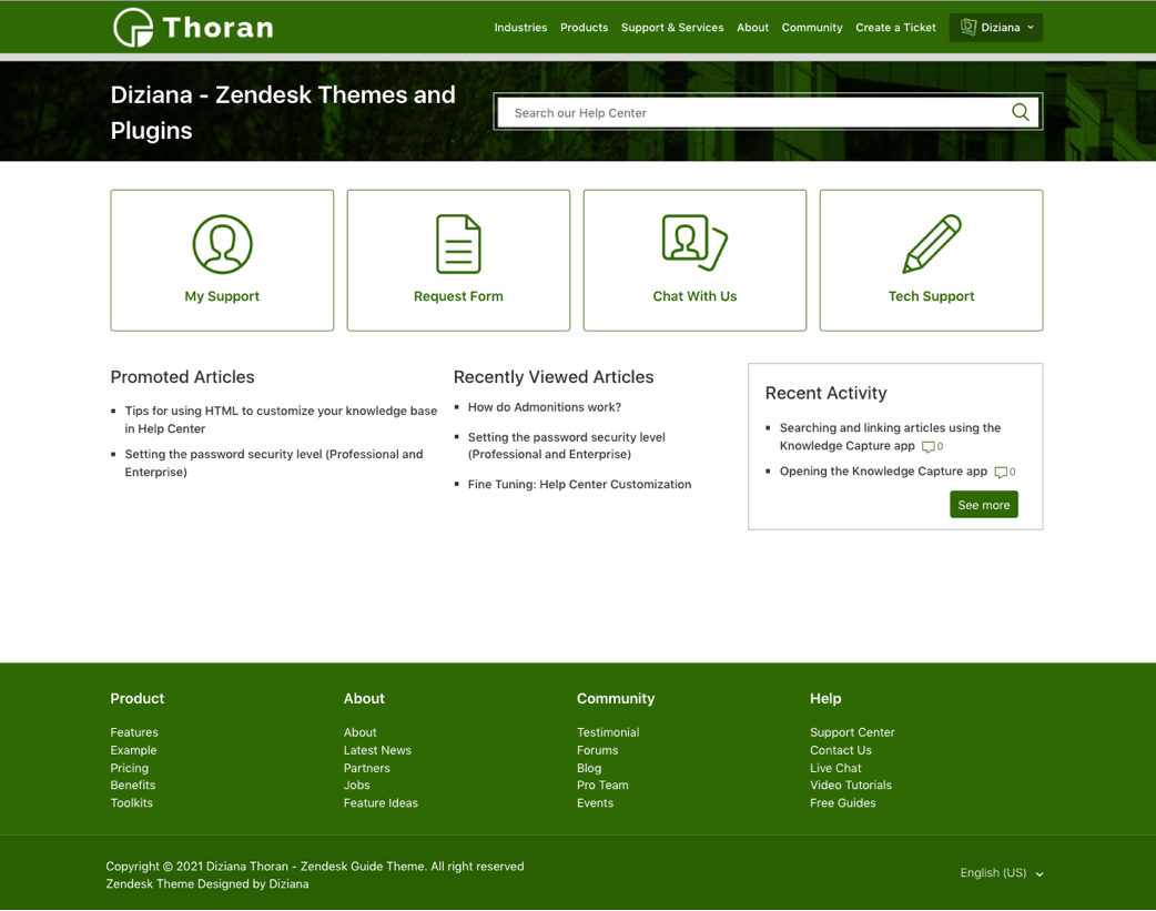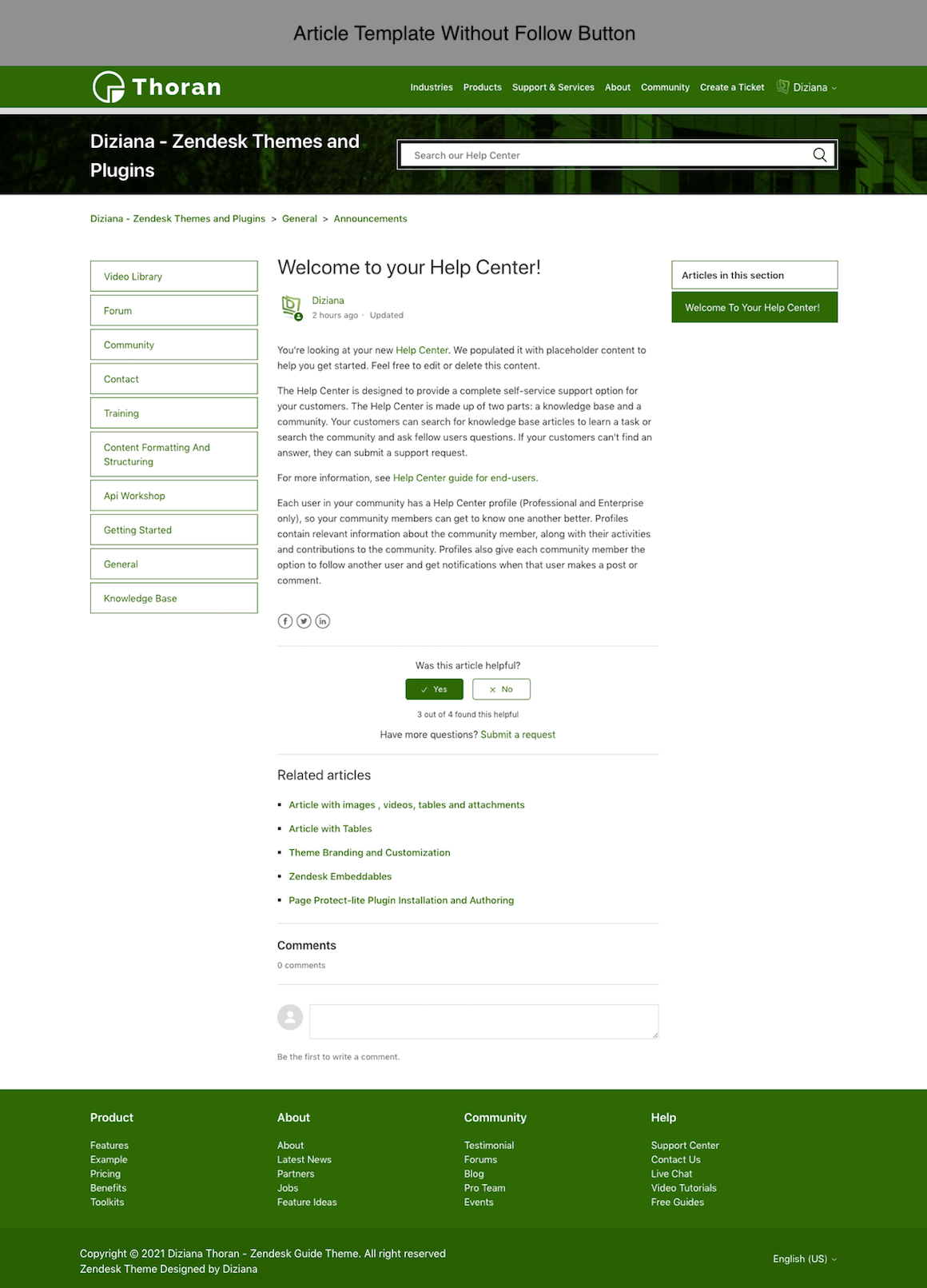 Theme License: Diziana Thoran Theme License for One (1) Zendesk Help Center or Brand.