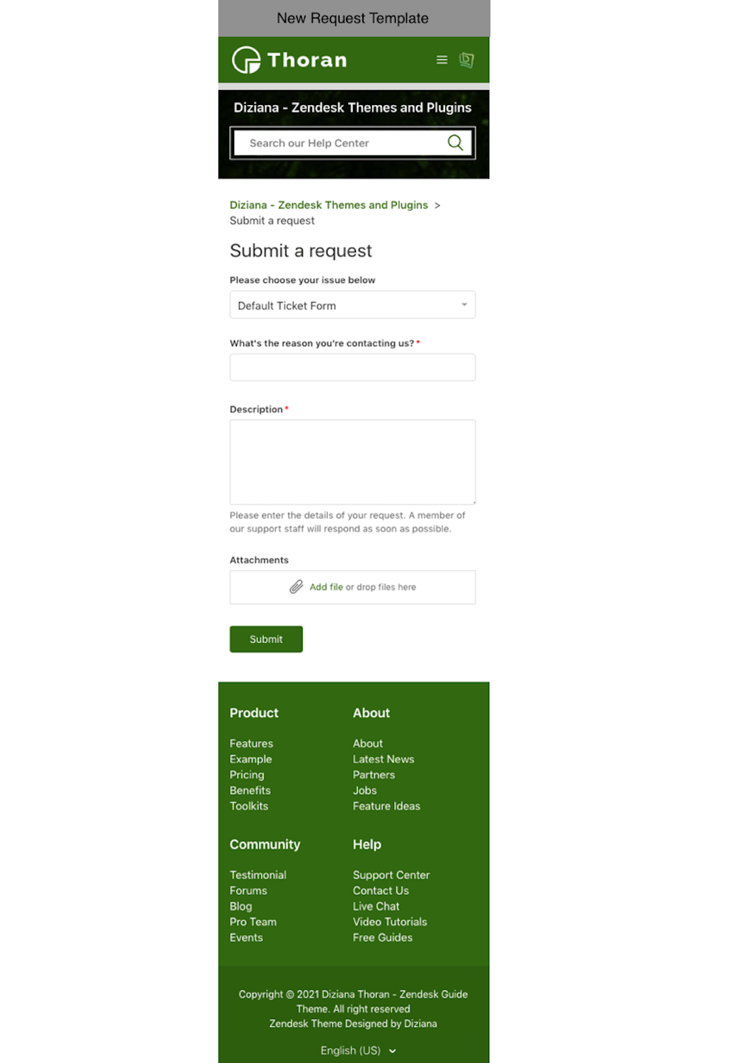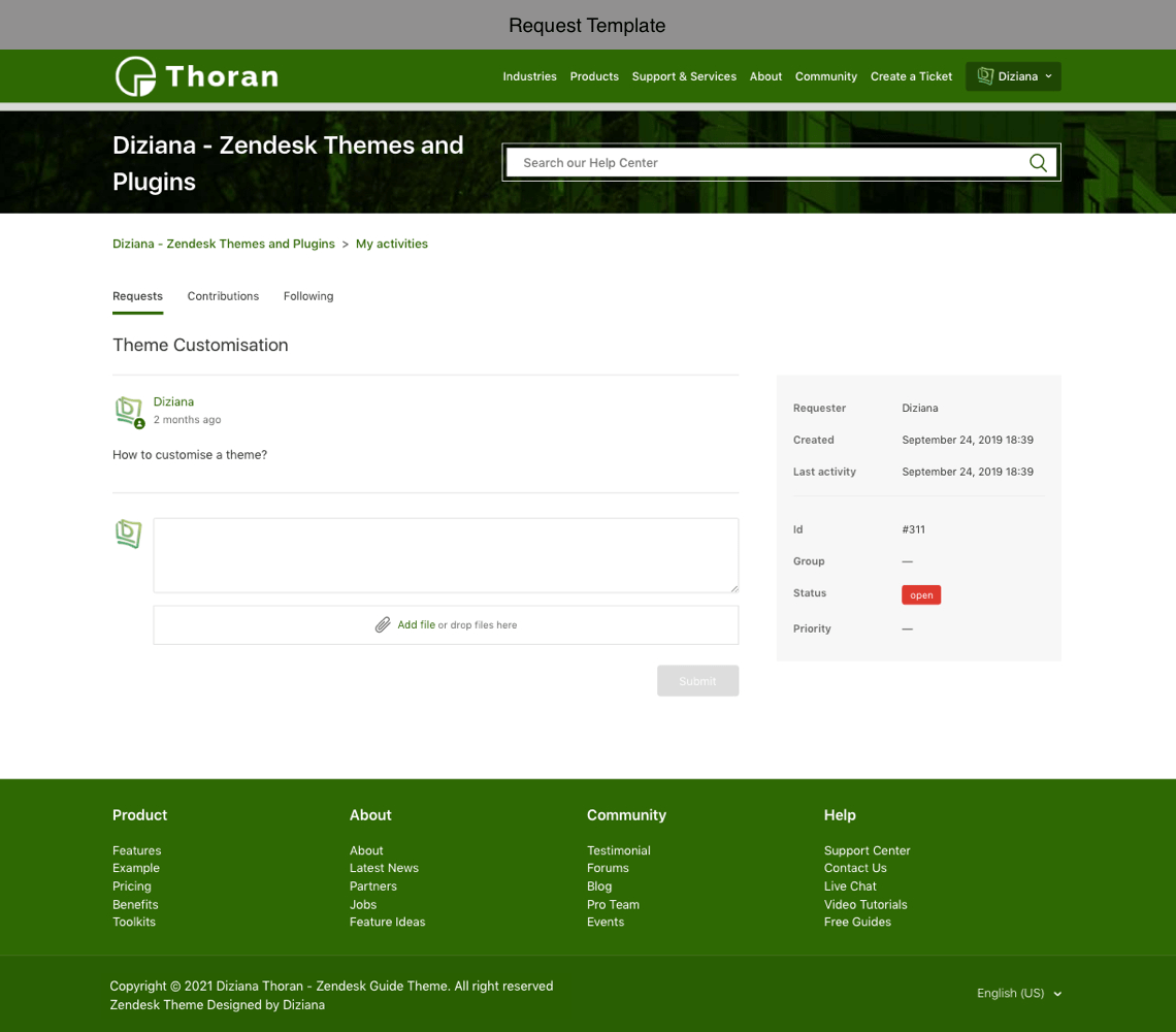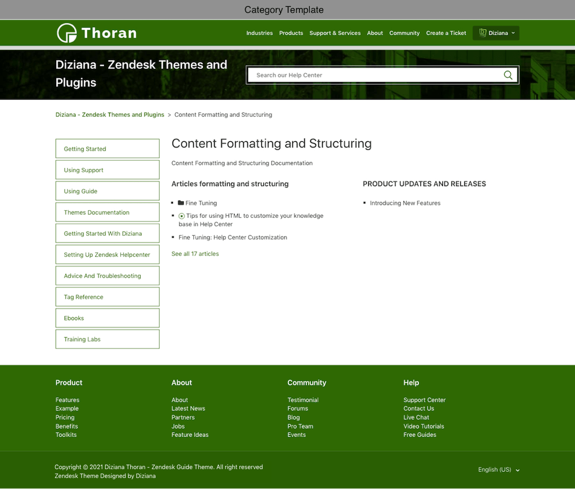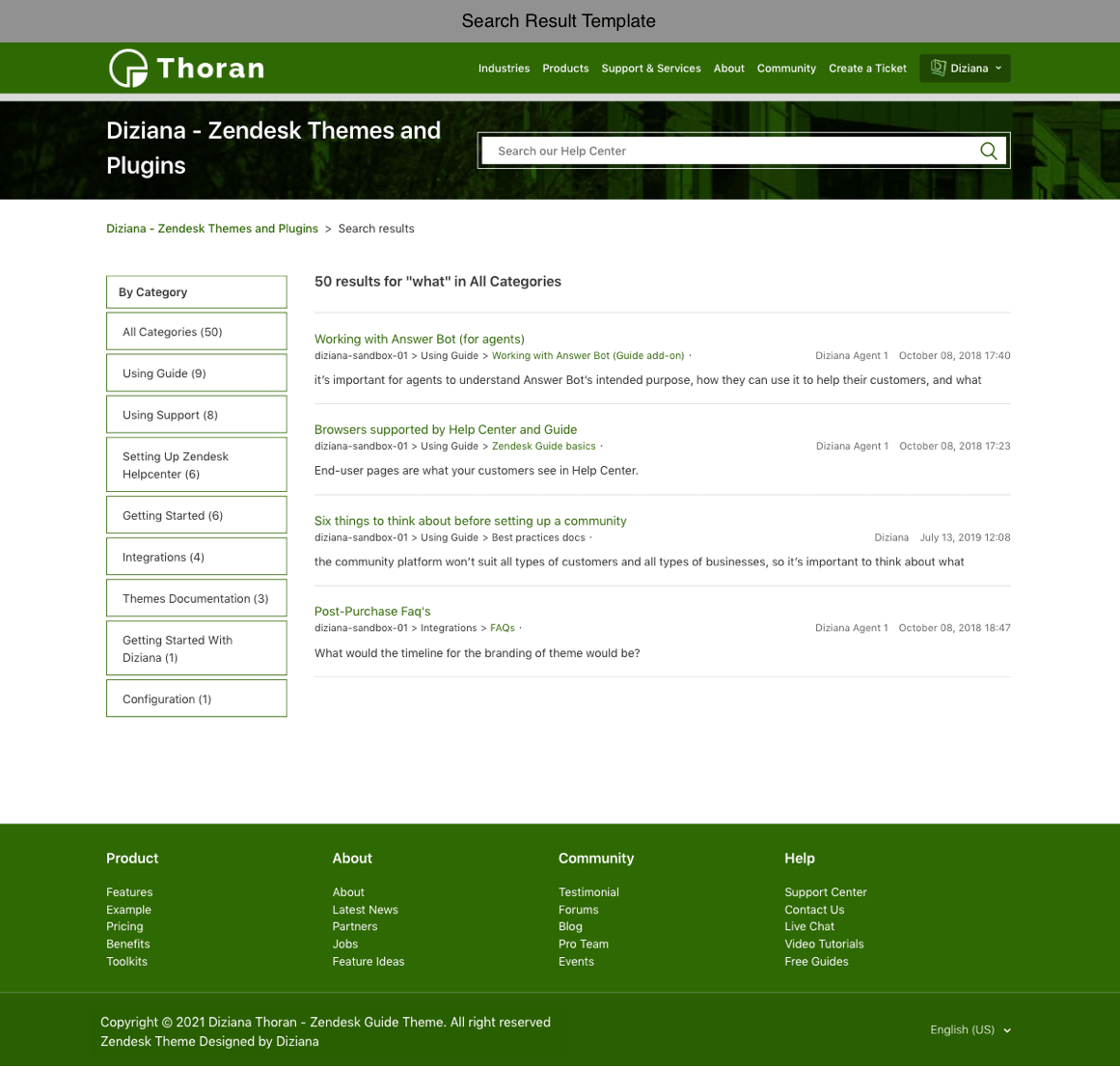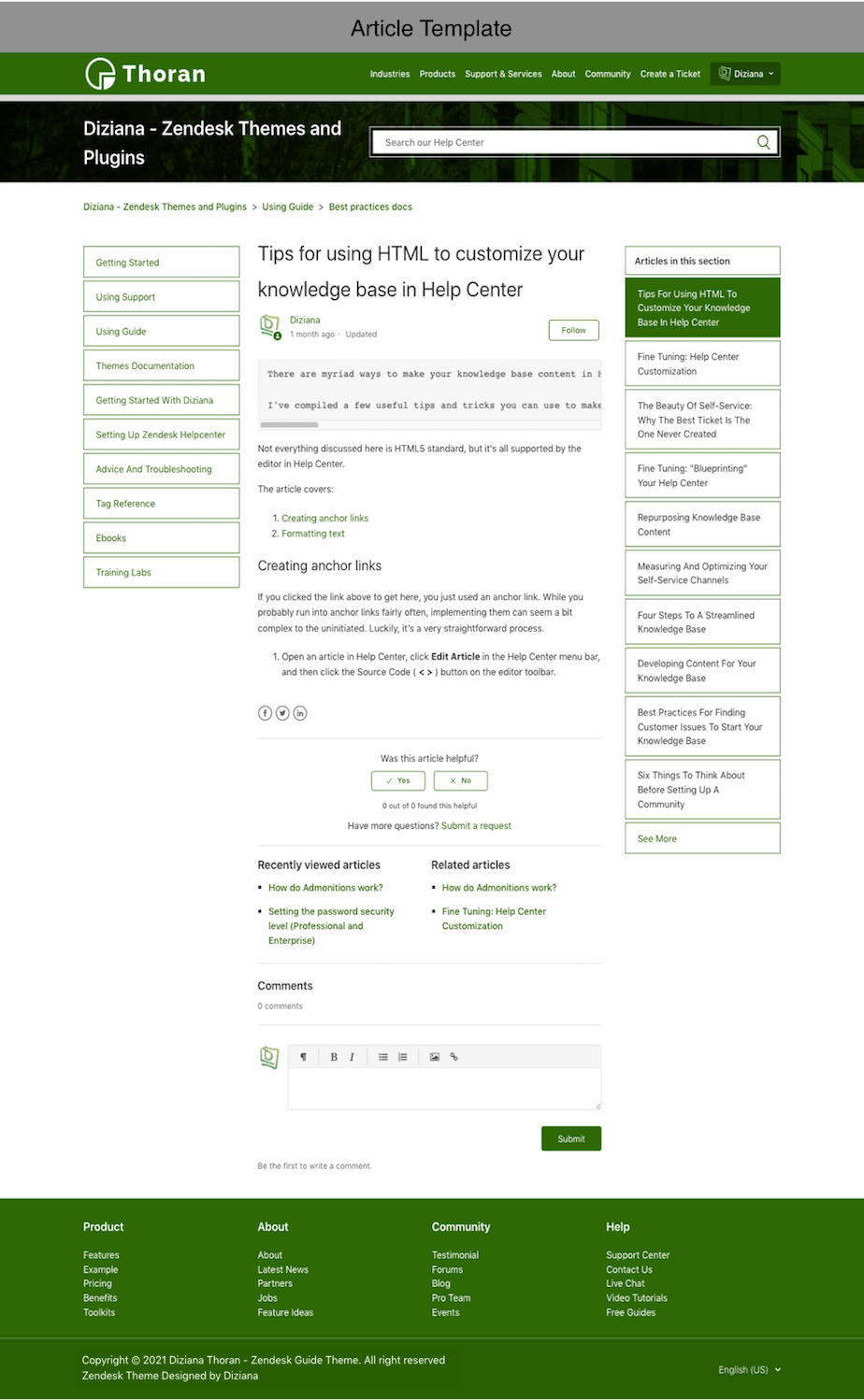 Diziana Thoran is a fully responsive Zendesk® Guide Help Center Theme (templates); an elegant one.