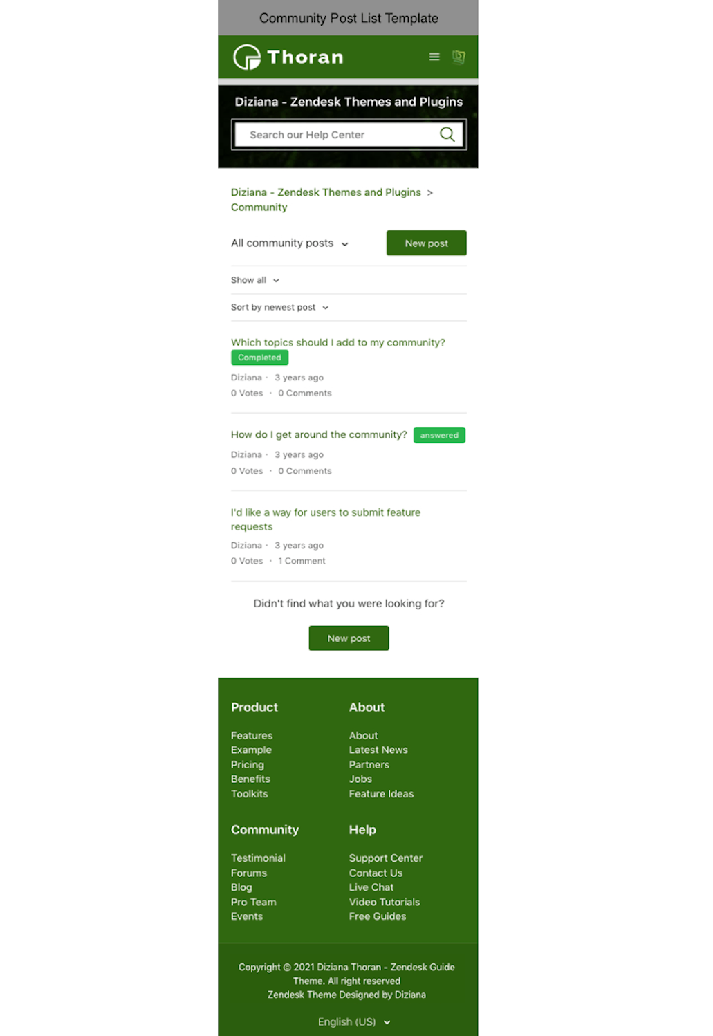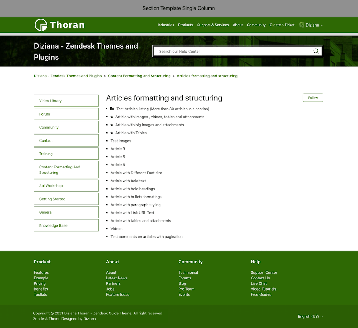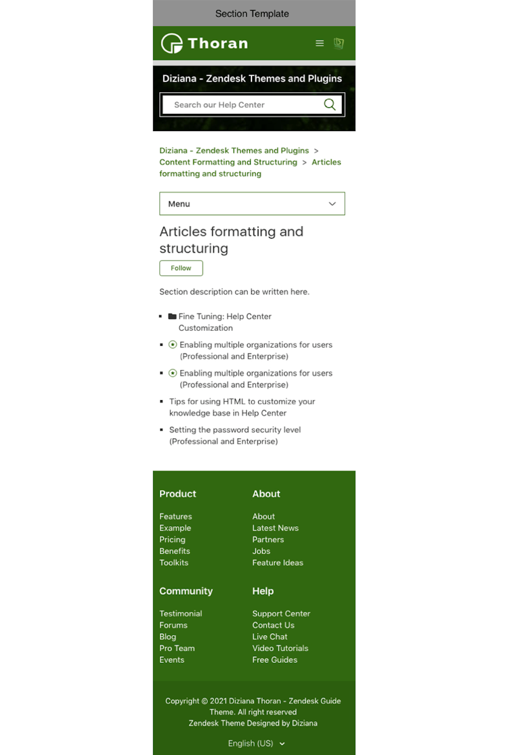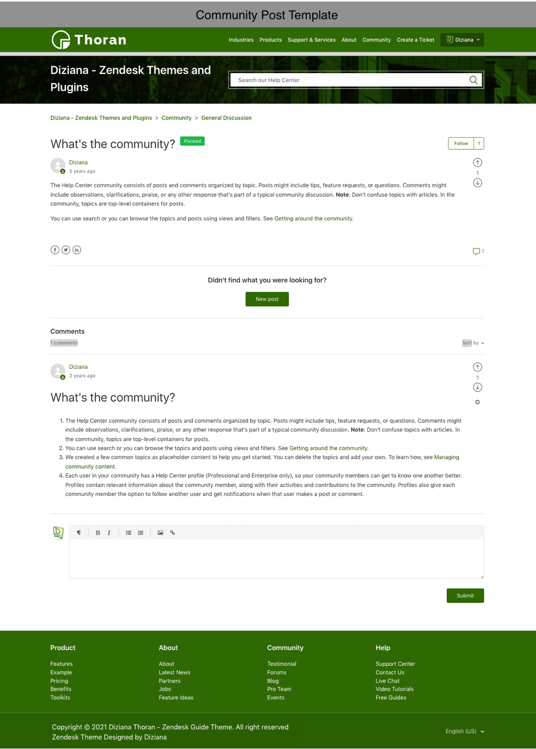 Diziana Thoran is a fully responsive Zendesk® Guide Help Center Theme (templates); an elegant one.