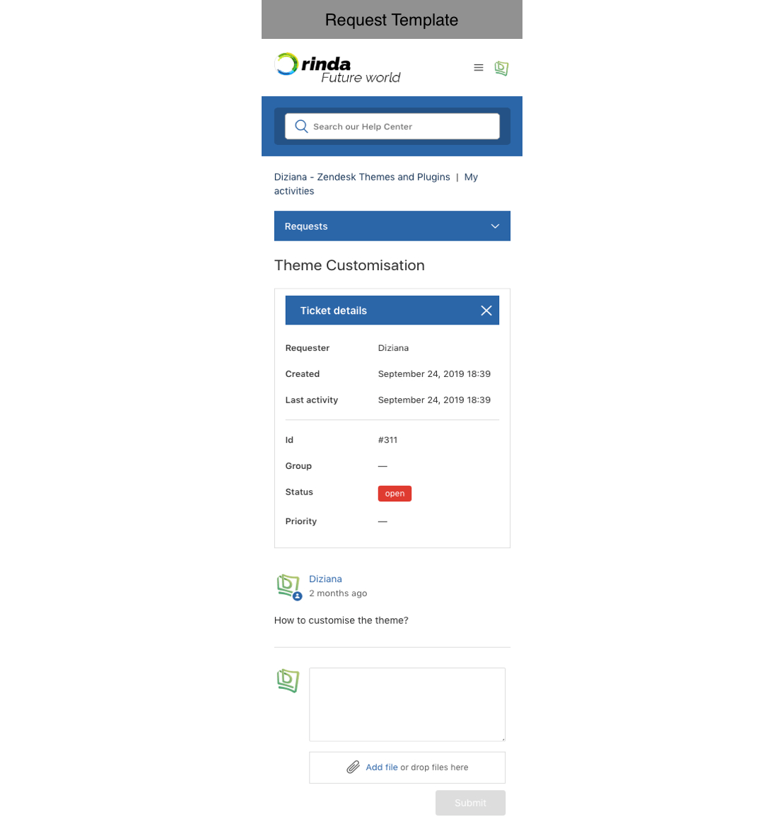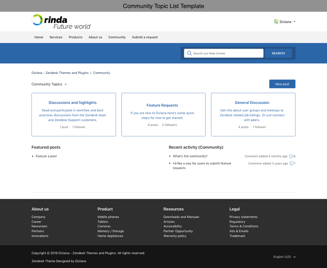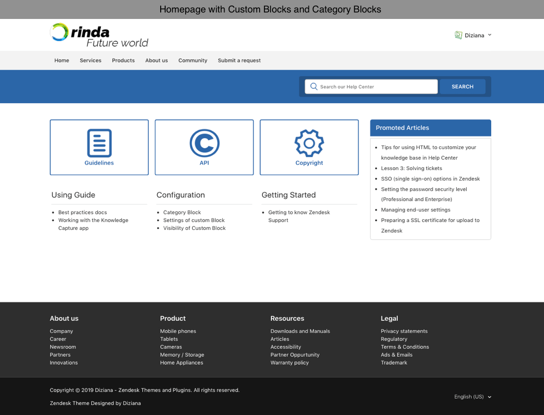 Diziana Rinda is a fully responsive Zendesk® Guide Help Center Theme (templates); an elegant one.