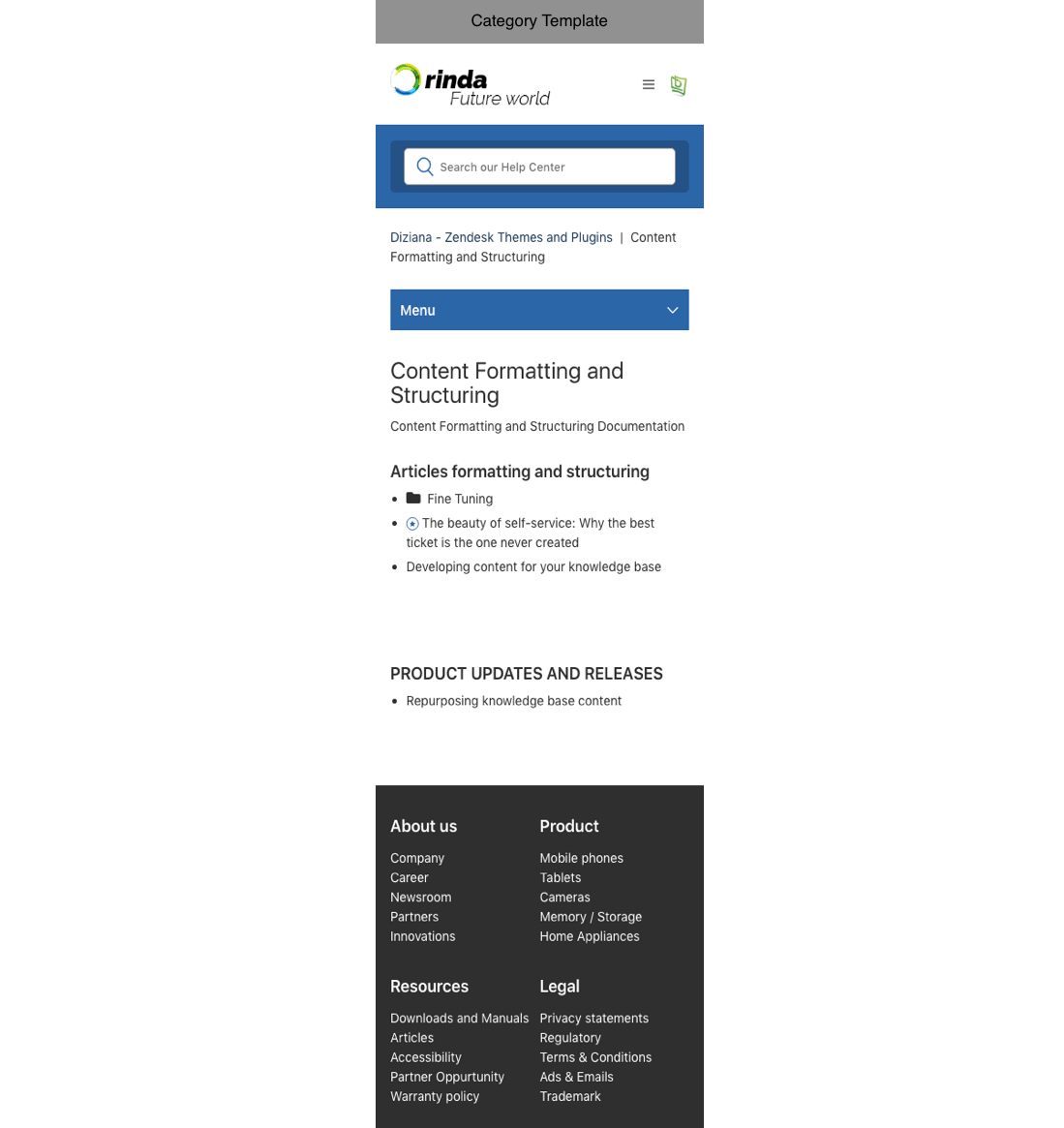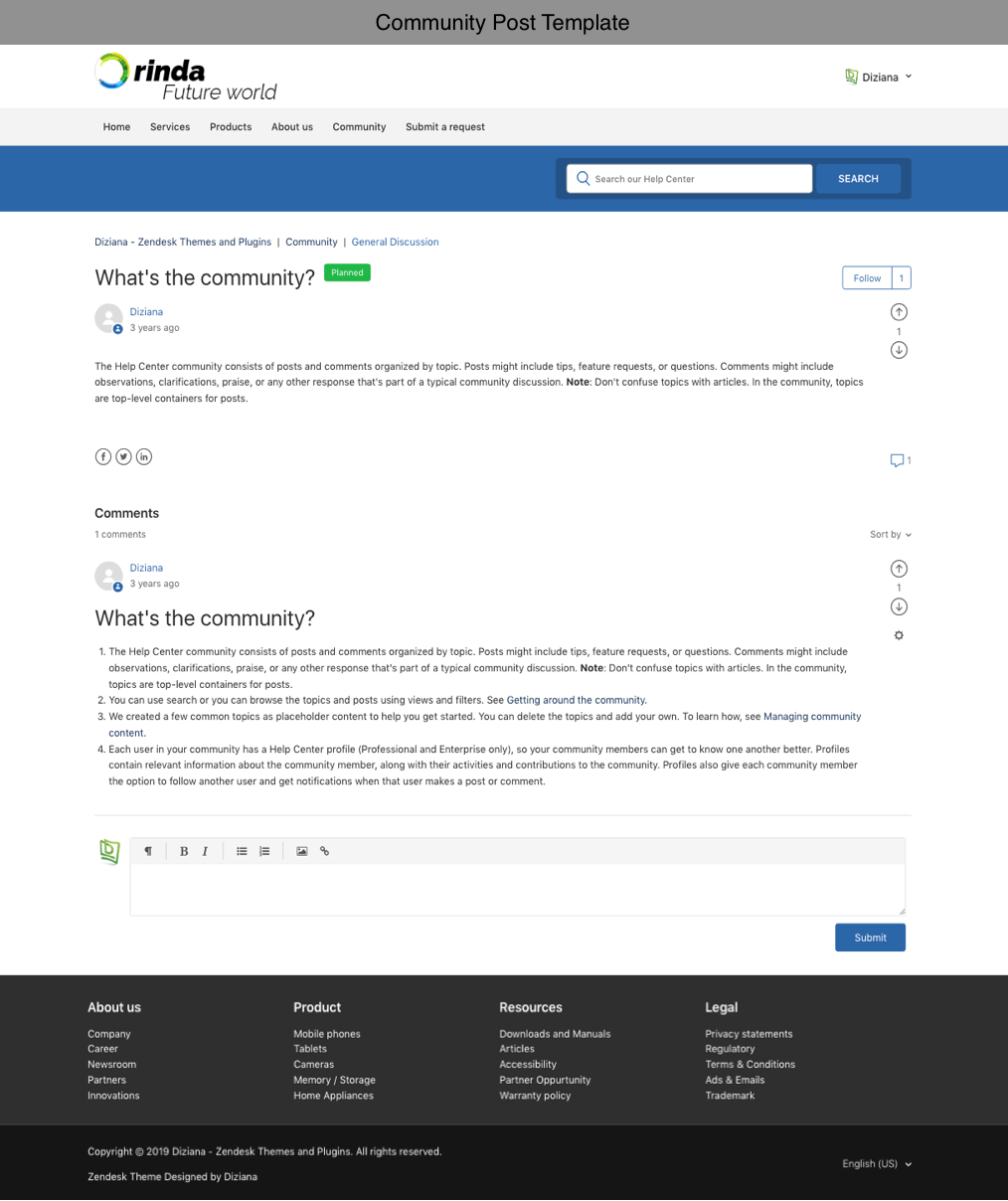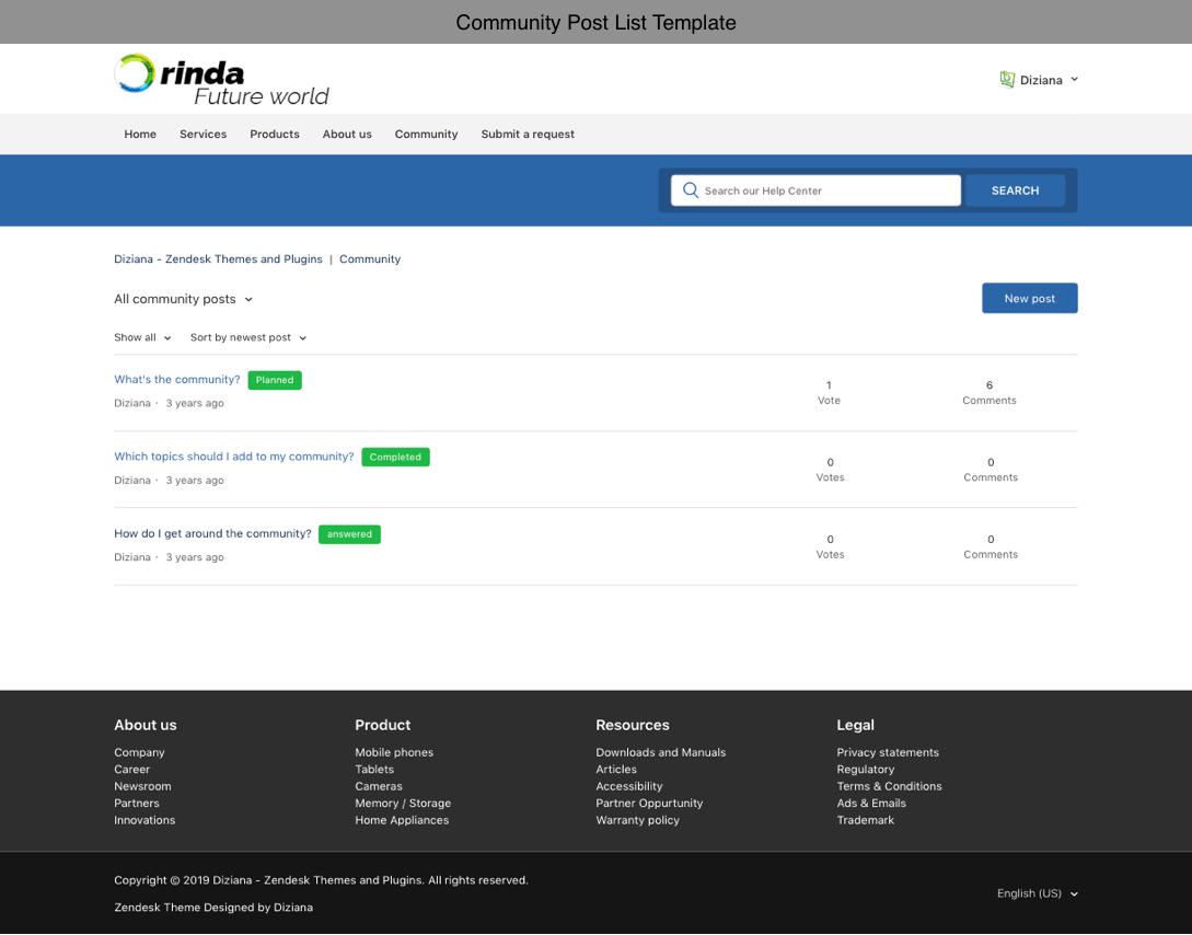 Diziana Rinda is a fully responsive Zendesk® Guide Help Center Theme (templates); an elegant one.