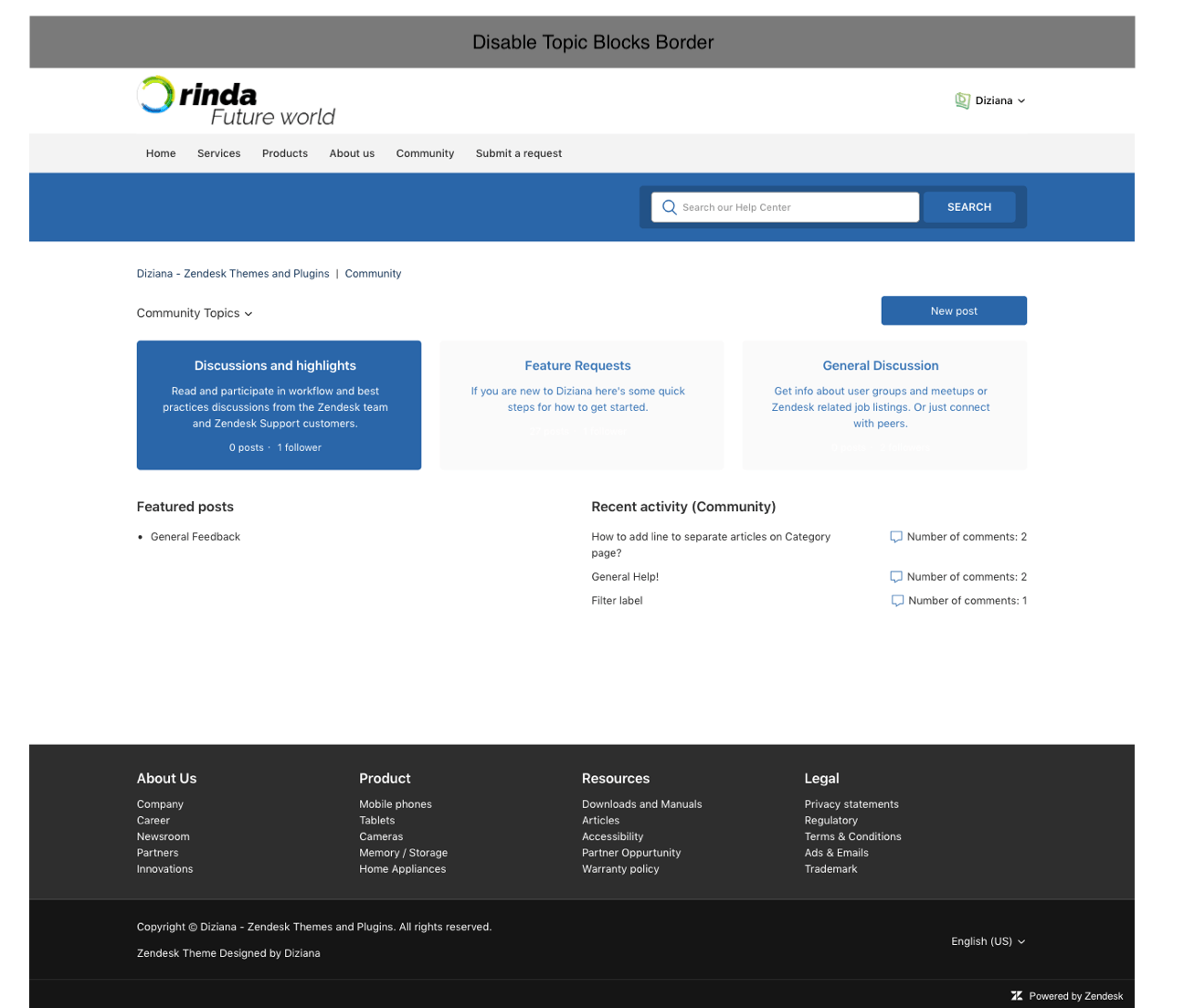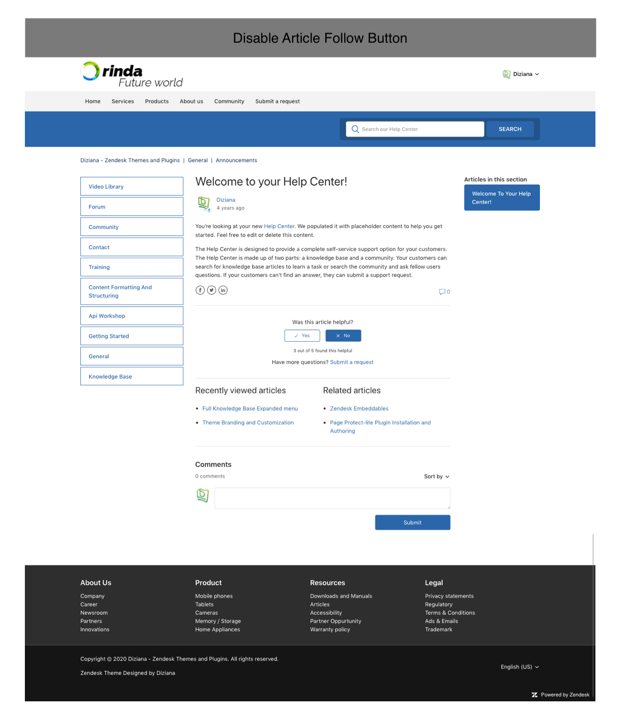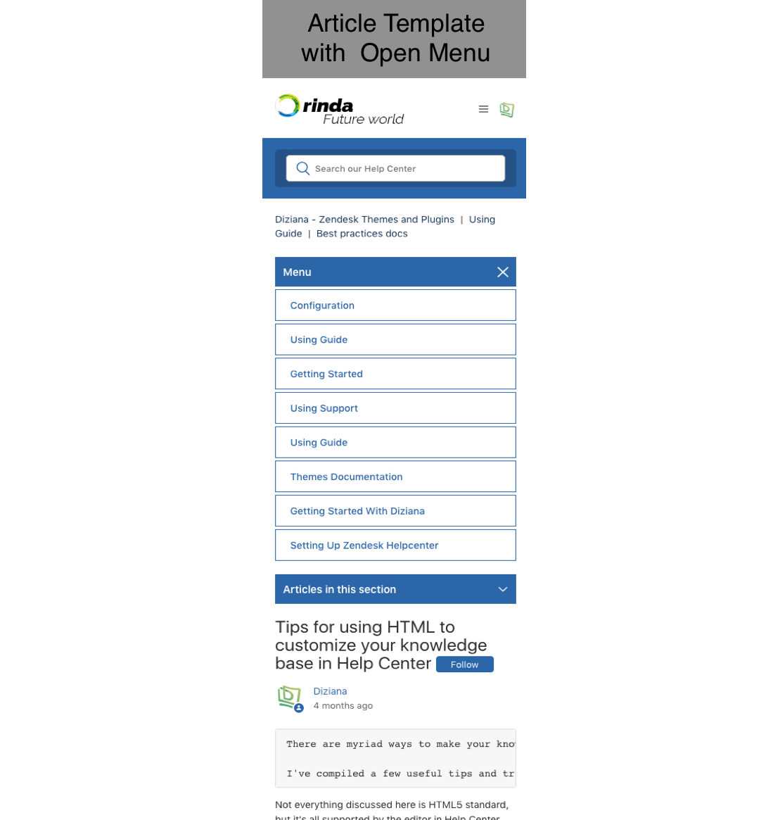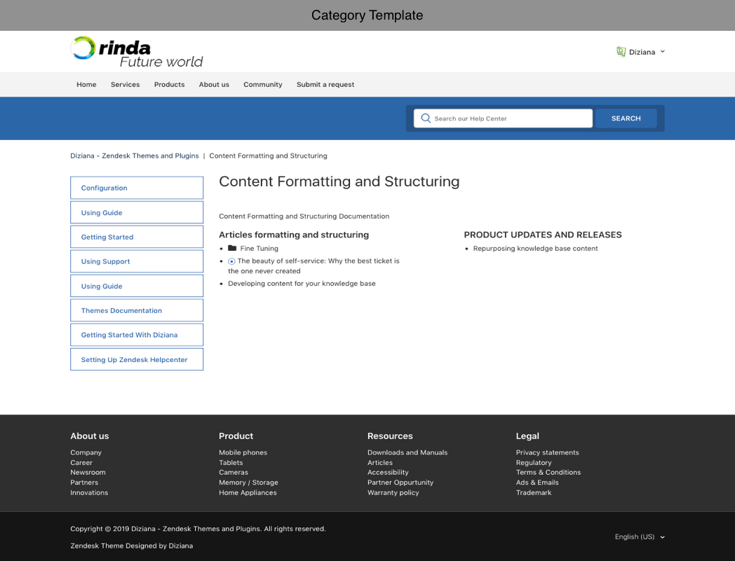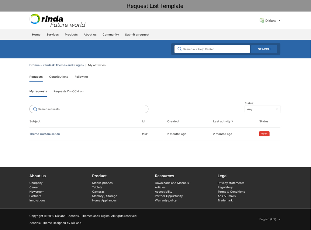 Theme License: Diziana Rinda Theme License for One (1) Zendesk Help Center or Brand.