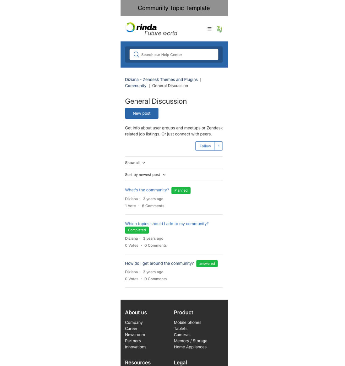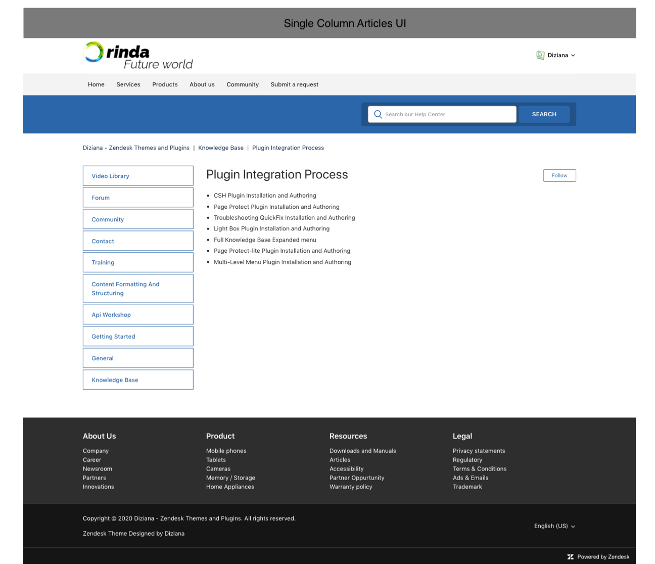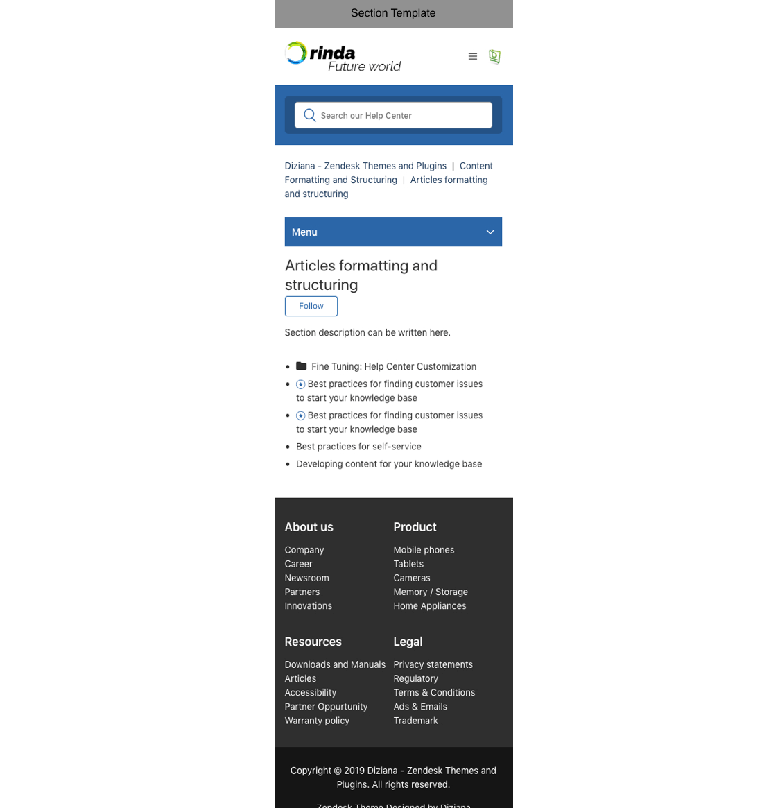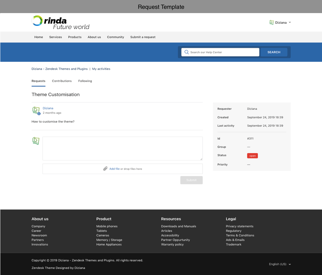 Diziana Rinda is a fully responsive Zendesk® Guide Help Center Theme (templates). It can be used by all kinds of organizations -- Technology, Education, tours & travel, Food, Startups, IT, Medical, Construction, Builder, Marketing, Startup, Fashion, Government, NGO, Not-For-Profit - Companies, Business, or Organizations.