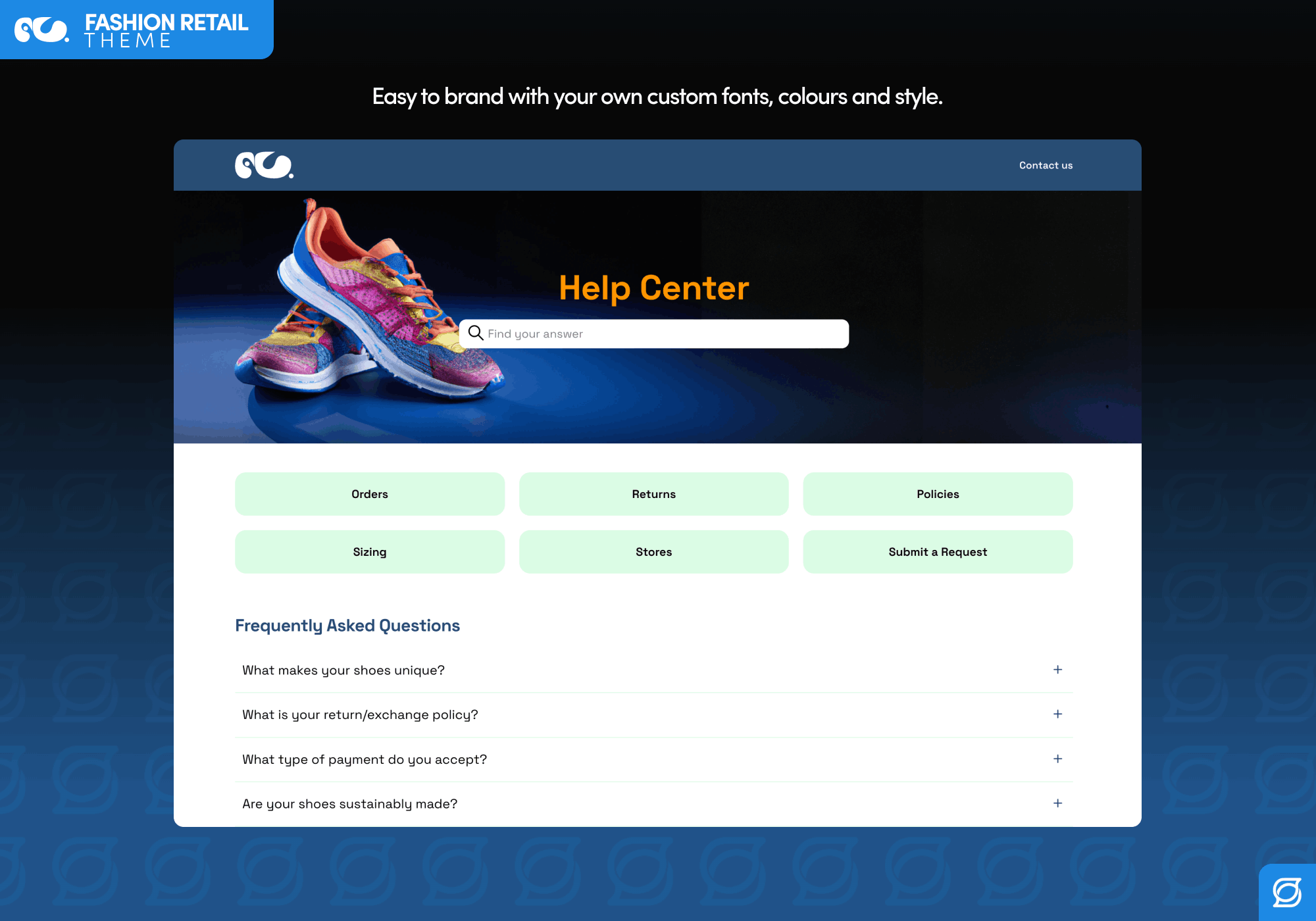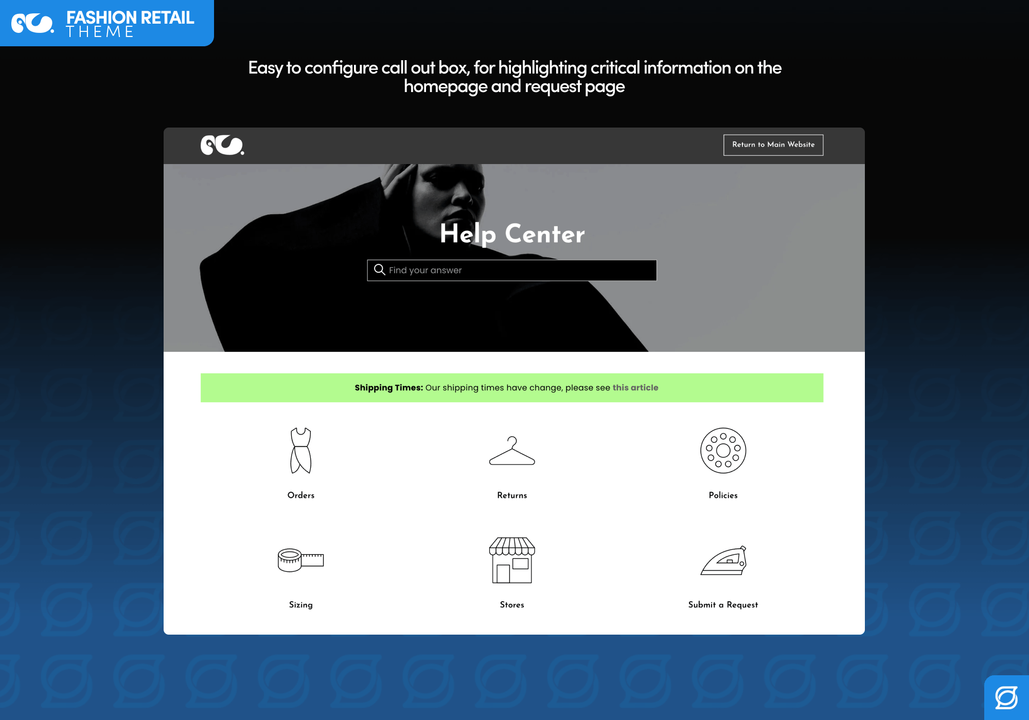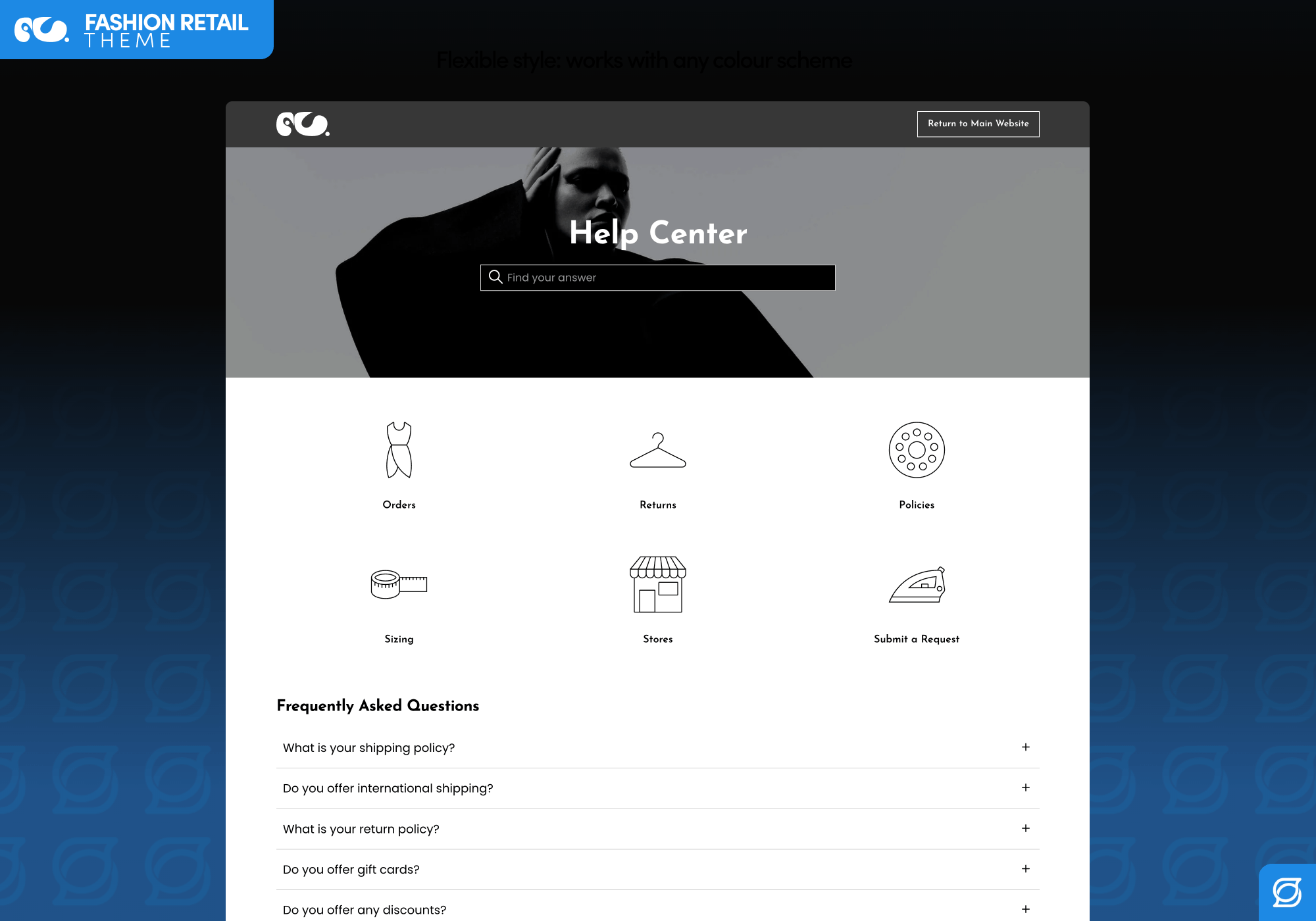 Fashion Retail Theme is the perfect tool for brands wanting a clean and elegant look for their Zendesk Guide Help Center.
