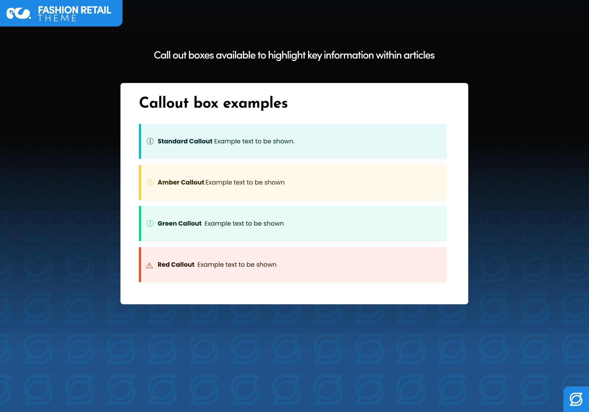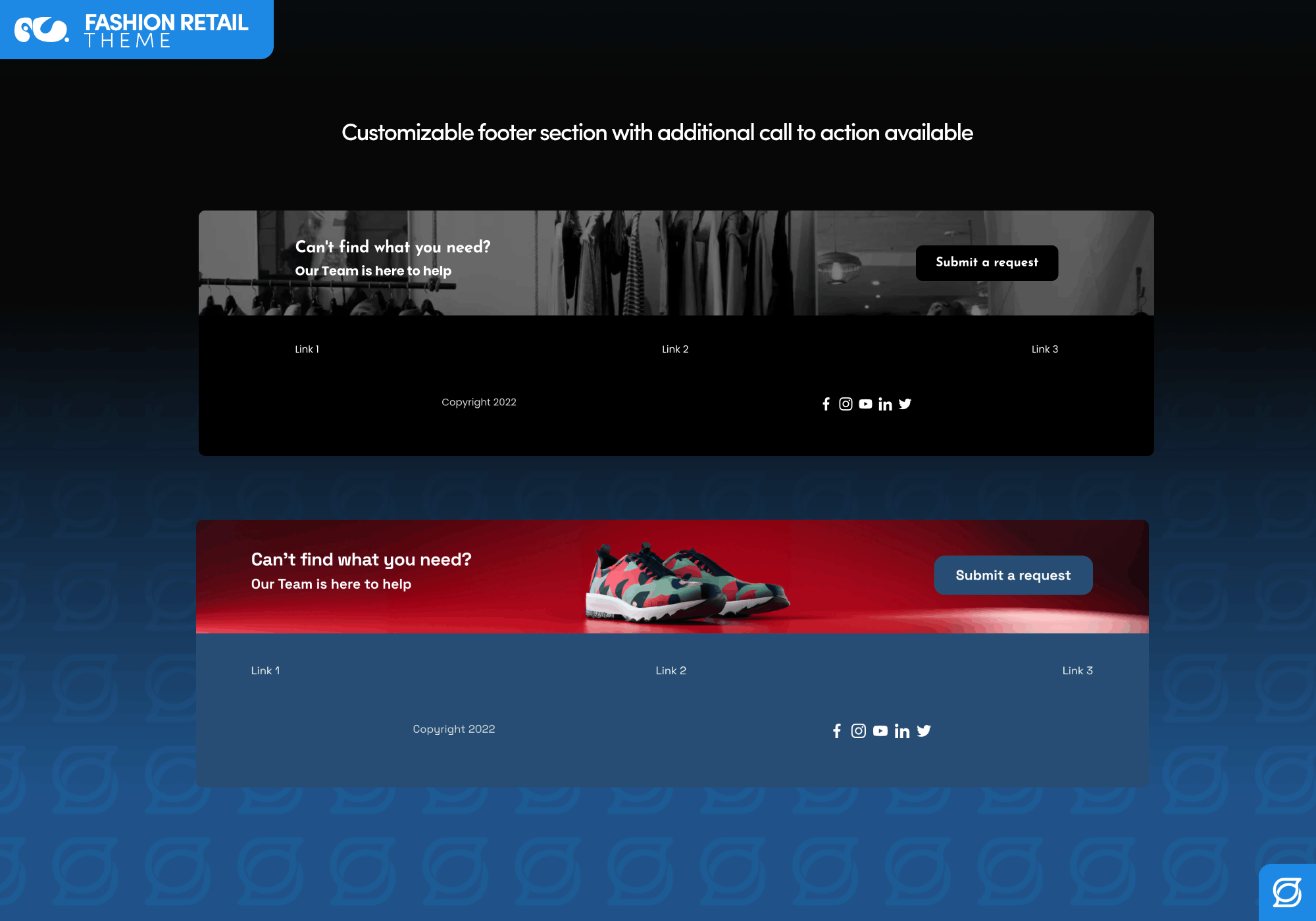 Need the Header and Footer of the Theme to look exactly like your main website? We're here to help, simply contact us to find out how we can develop a custom theme for your brand that mirrors your branding perfectly.