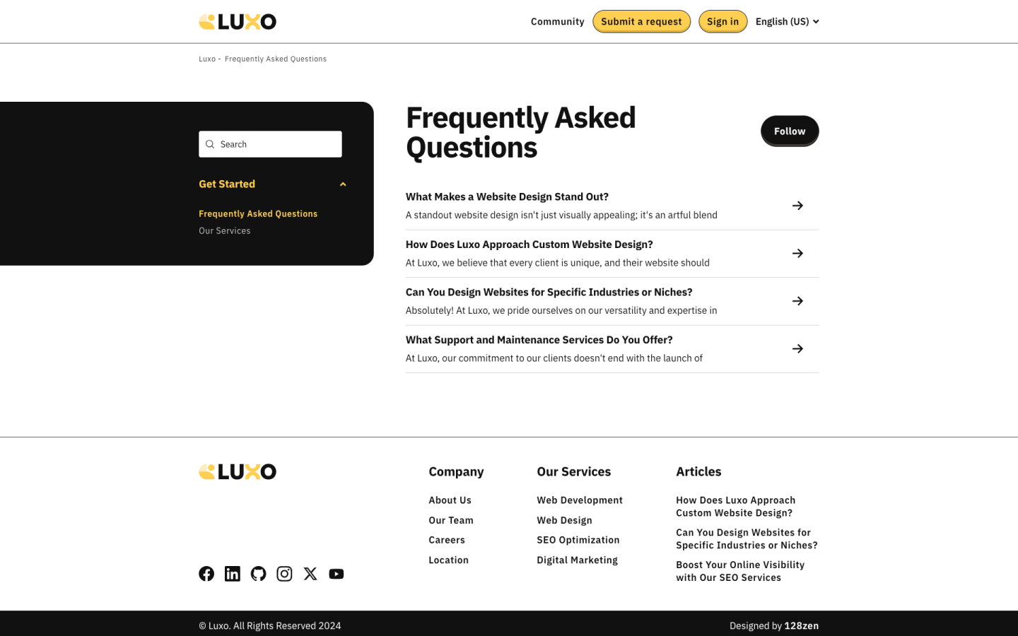 Luxo 128 is a fresh and modern professional Zendesk theme. With its clean design and customized pages, it looks great on any device. Perfect for various industries, Luxo 128 offers simplicity with your brand and style.