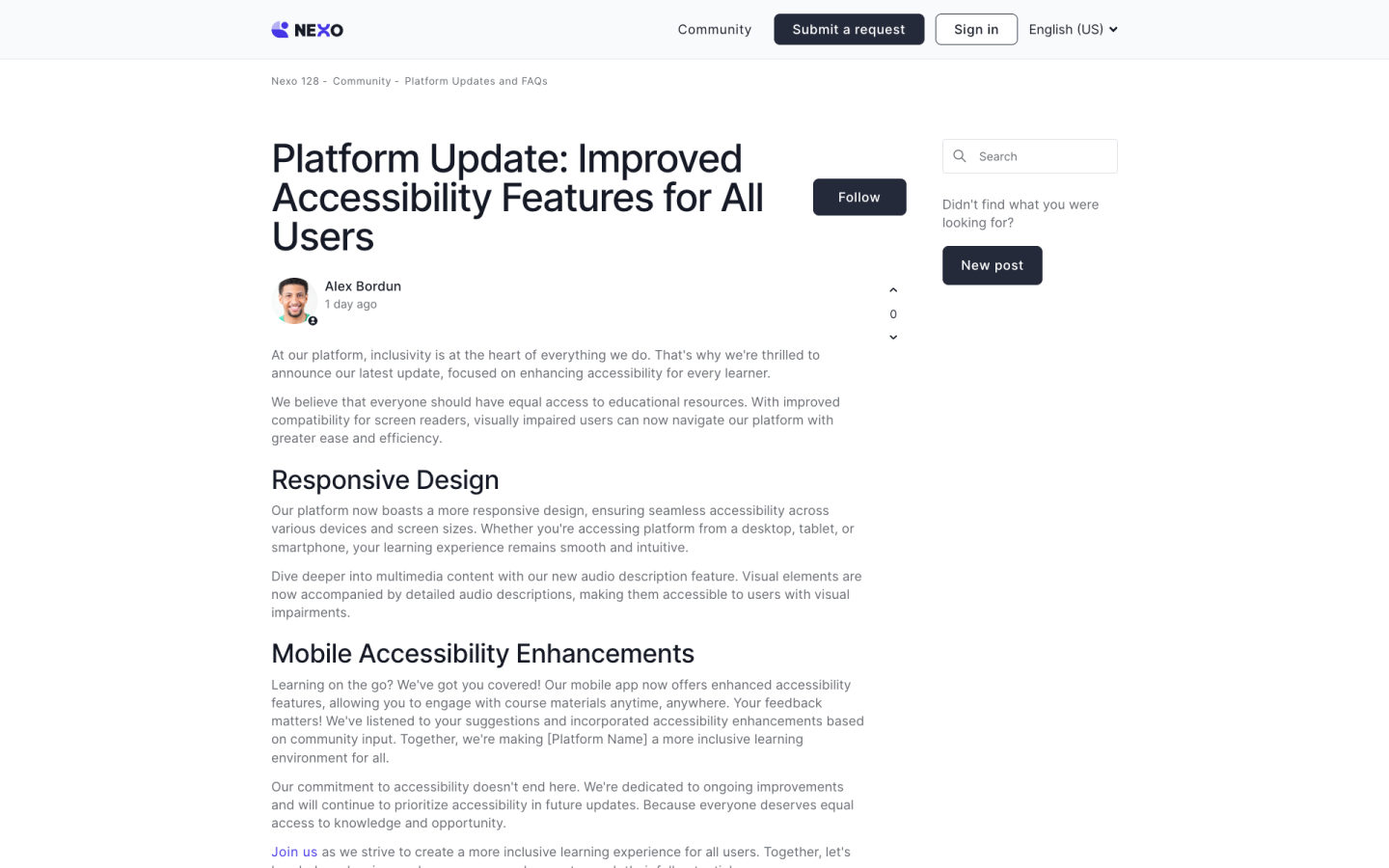 Nexo 128 stands out as a Zendesk theme boasting a polished and eye-catching design, enriched with numerous practical functionalities. It provides an array of customizable blocks and prompts, empowering users to initiate actions effortlessly. You can effortlessly tailor these elements to align with your brand's identity, requiring no coding expertise. This facilitates a swift and seamless launch of a help center tailored to delight your customers.