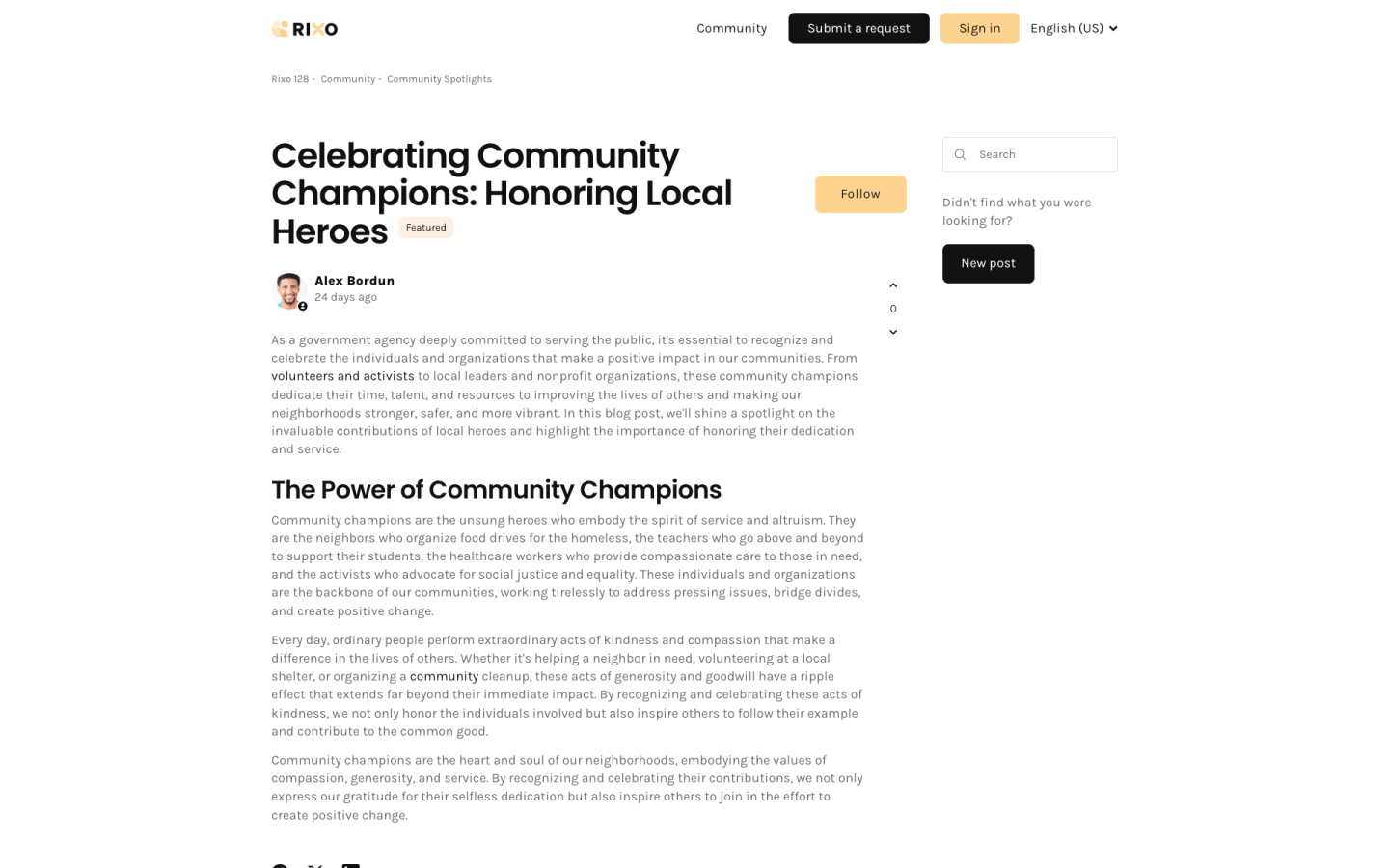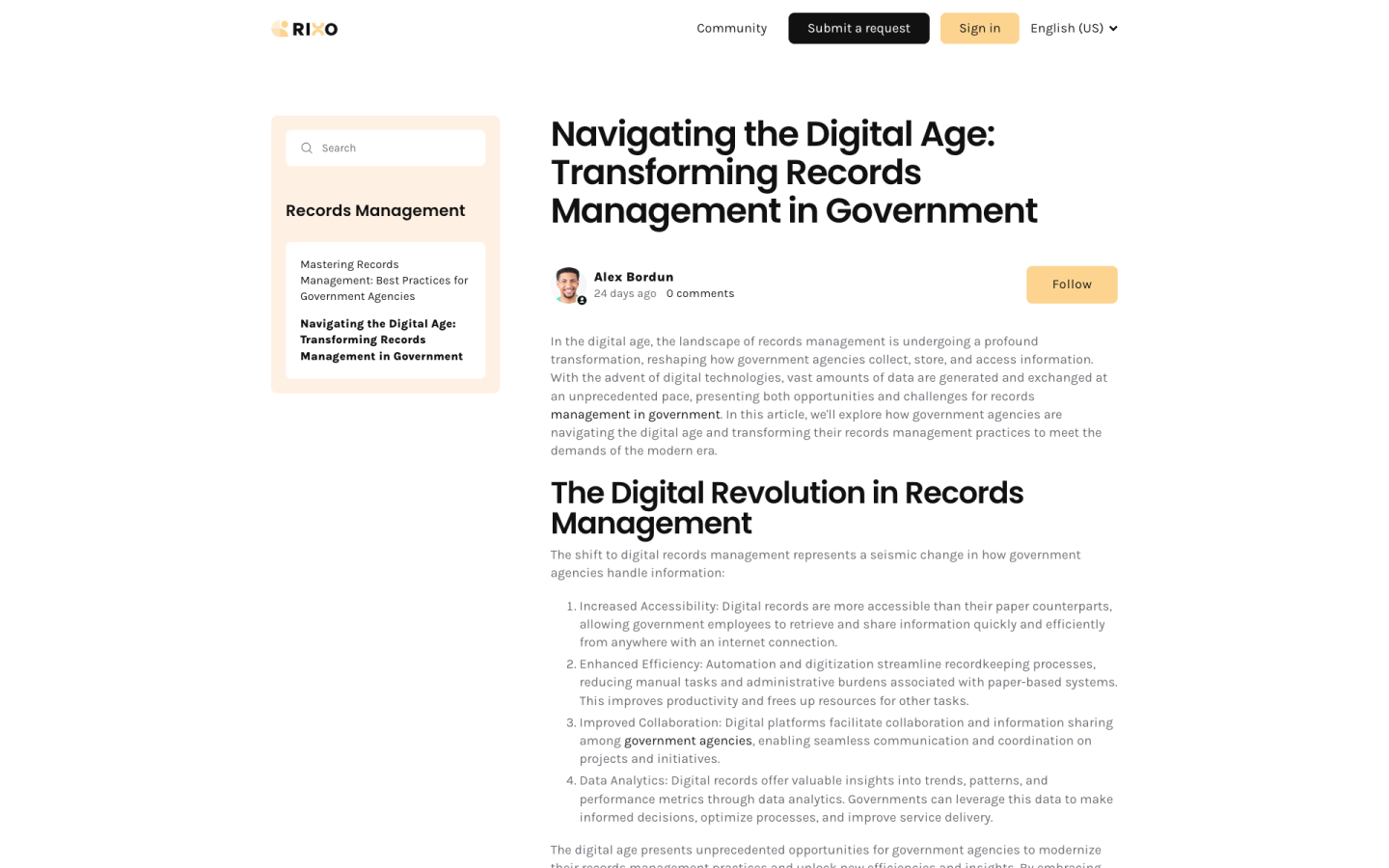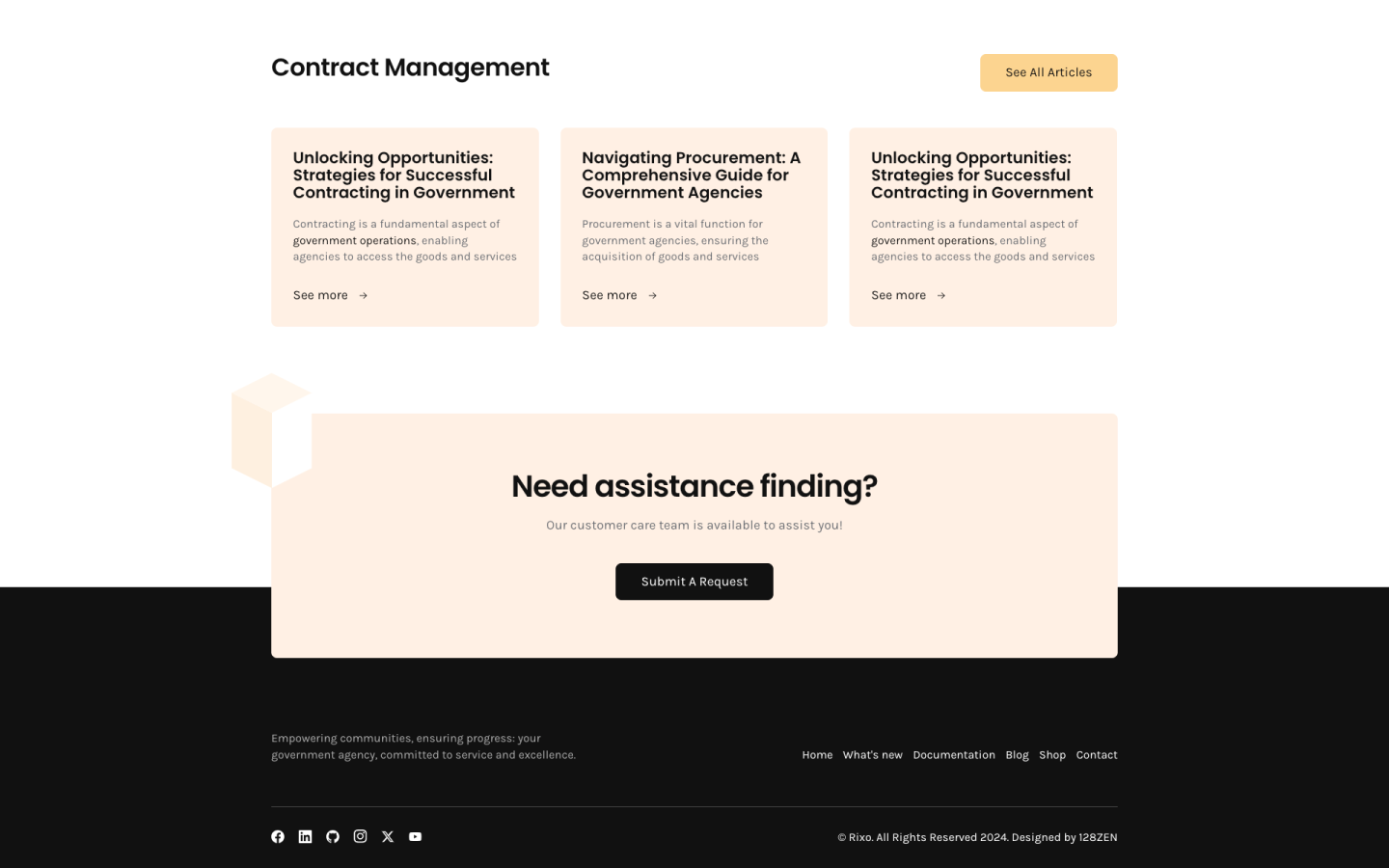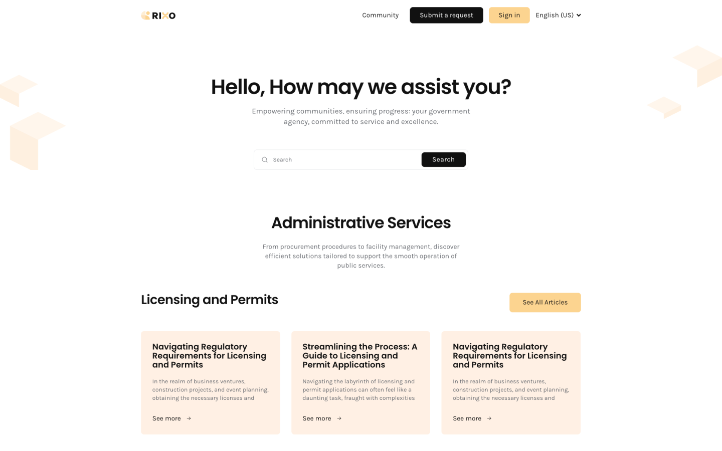 Rixo 128 is a sleek and modern Zendesk theme ideal for various businesses, especially in government services, records management, and welfare assistance programs. It features a minimalist design and customizable pages for a visually stunning and technically robust experience across all devices. The platform provides detailed articles, resource access, request submission, and tailored solutions, emphasizing service excellence and community empowerment.