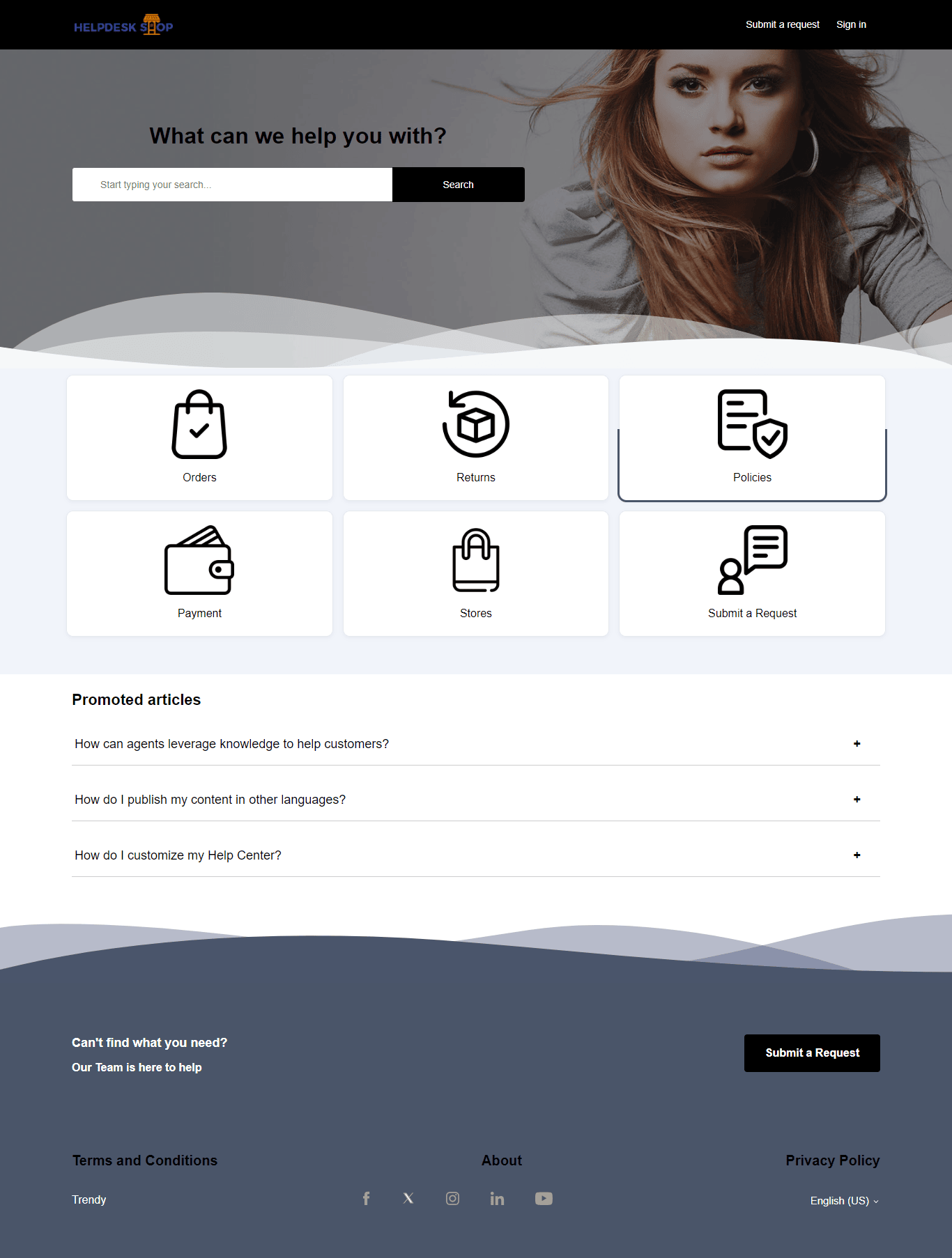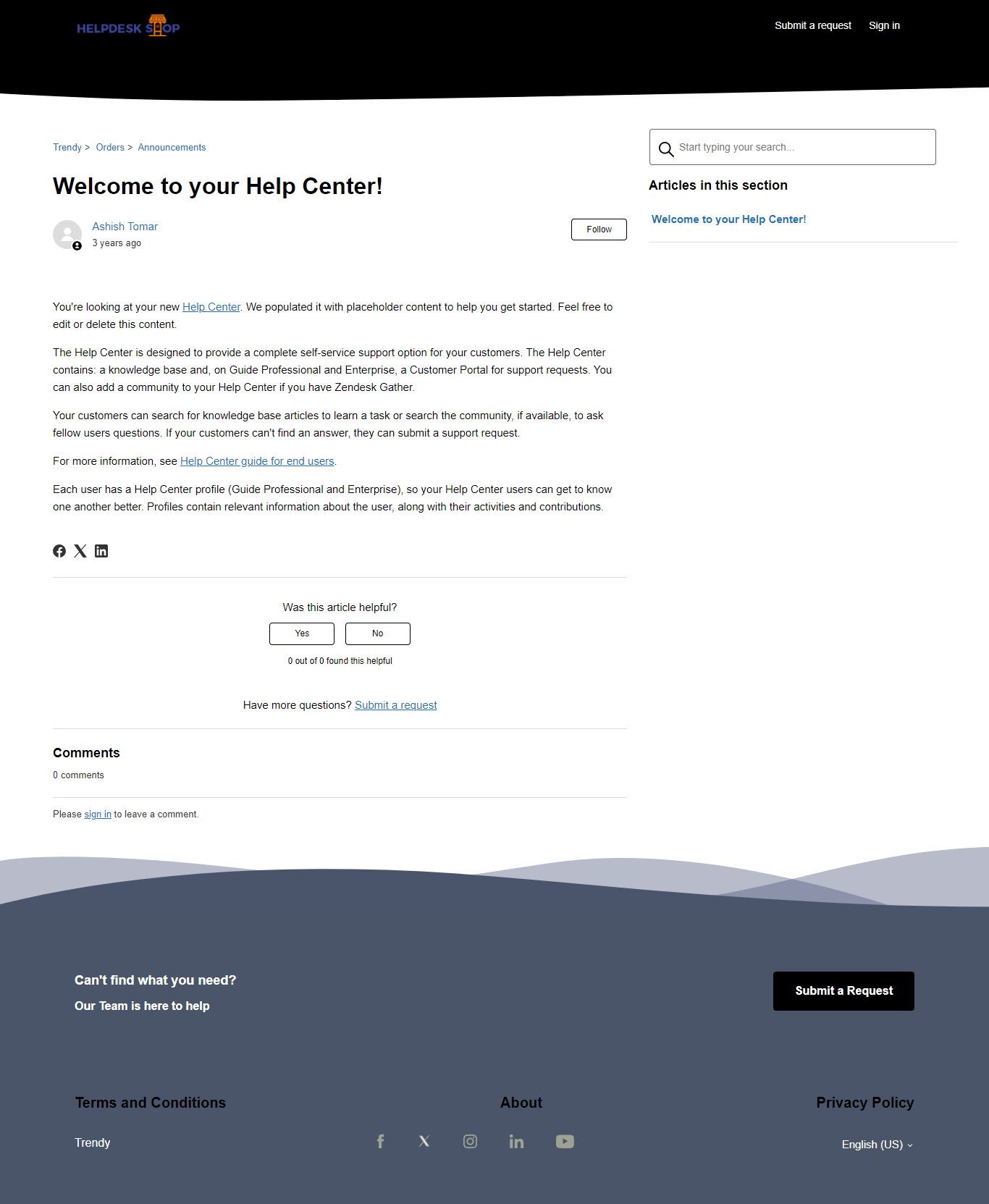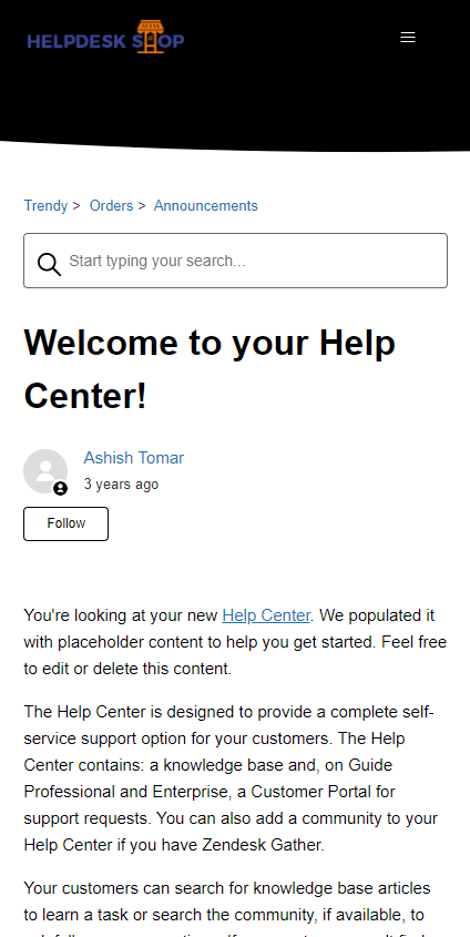 About the theme -Trendy Theme is a fully responsive, multipurpose Zendesk Help Center (Guide) theme that perfectly blends style and performance. Its elements are thoughtfully arranged to ensure seamless navigation throughout the help center.