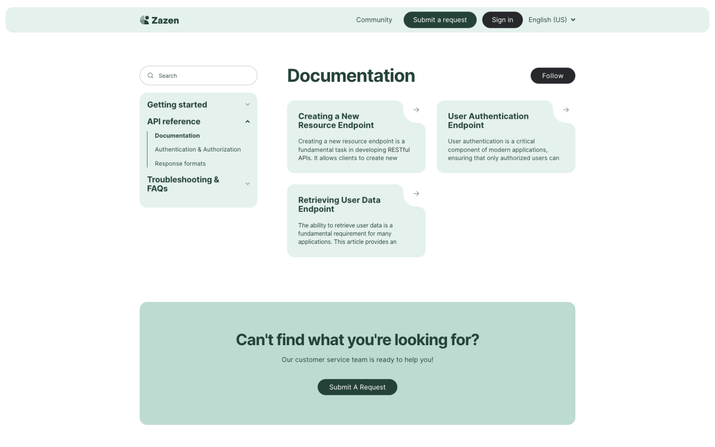 With its intuitive navigation and thoughtfully designed elements, Zazen 128 ensures that your customers can find the help they need quickly and easily. The theme is ideal for showcasing articles, documentations, tutorials, FAQ and updates while seamlessly integrating standard Zendesk features like ticket forms, user profiles, and knowledge base articles. Zazen 128 adapts to your needs, fostering a supportive environment that keeps your users informed and satisfied.