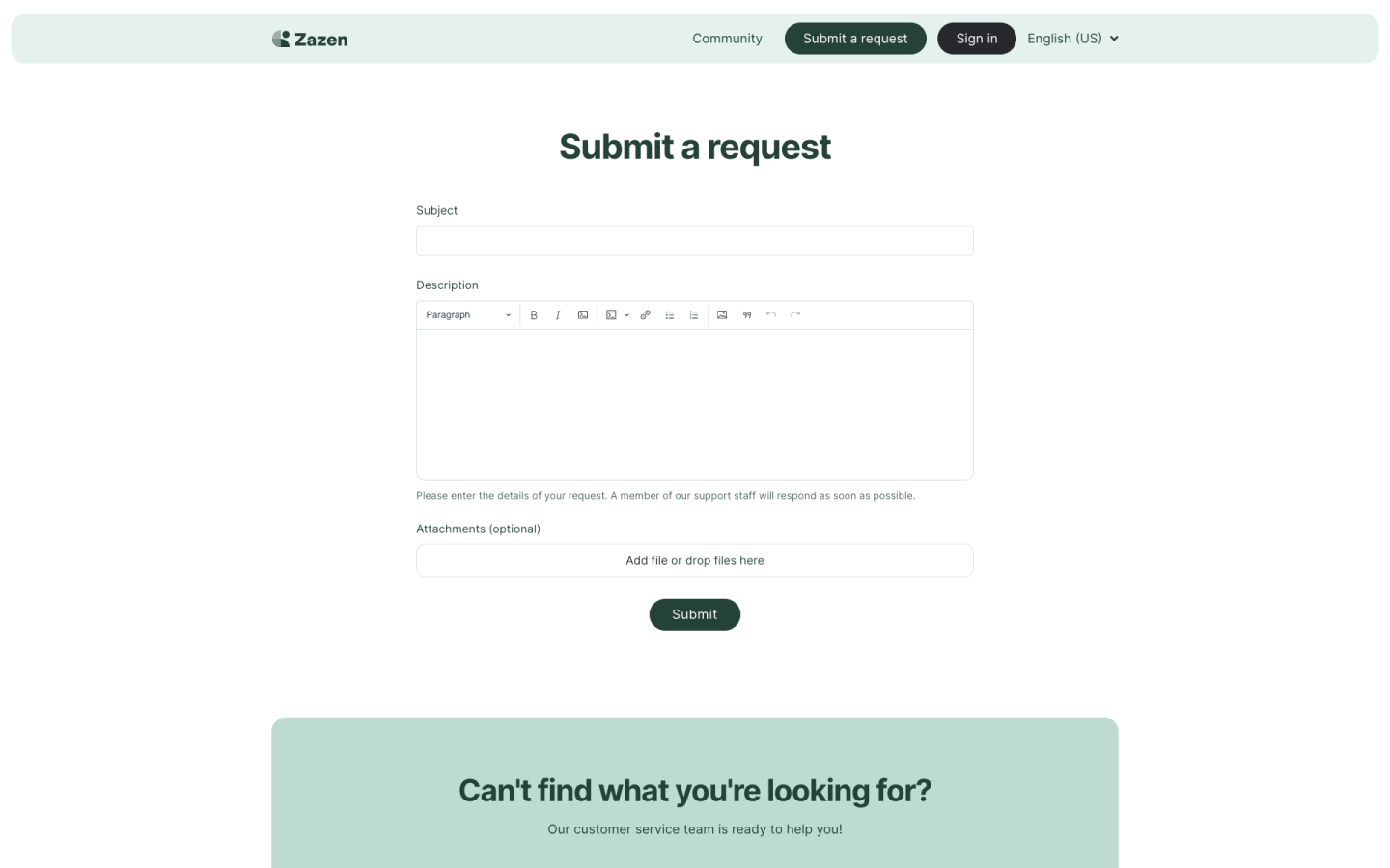 Enhance your customer support with the Zazen 128 theme, featuring a clean, minimalist layout for optimal usability. This theme includes a highly customizable homepage, allowing you to tailor colors and fonts to match your brand effortlessly. With a responsive design and optimized performance, Zazen 128 is perfect for businesses seeking to create a calm and efficient support experience.