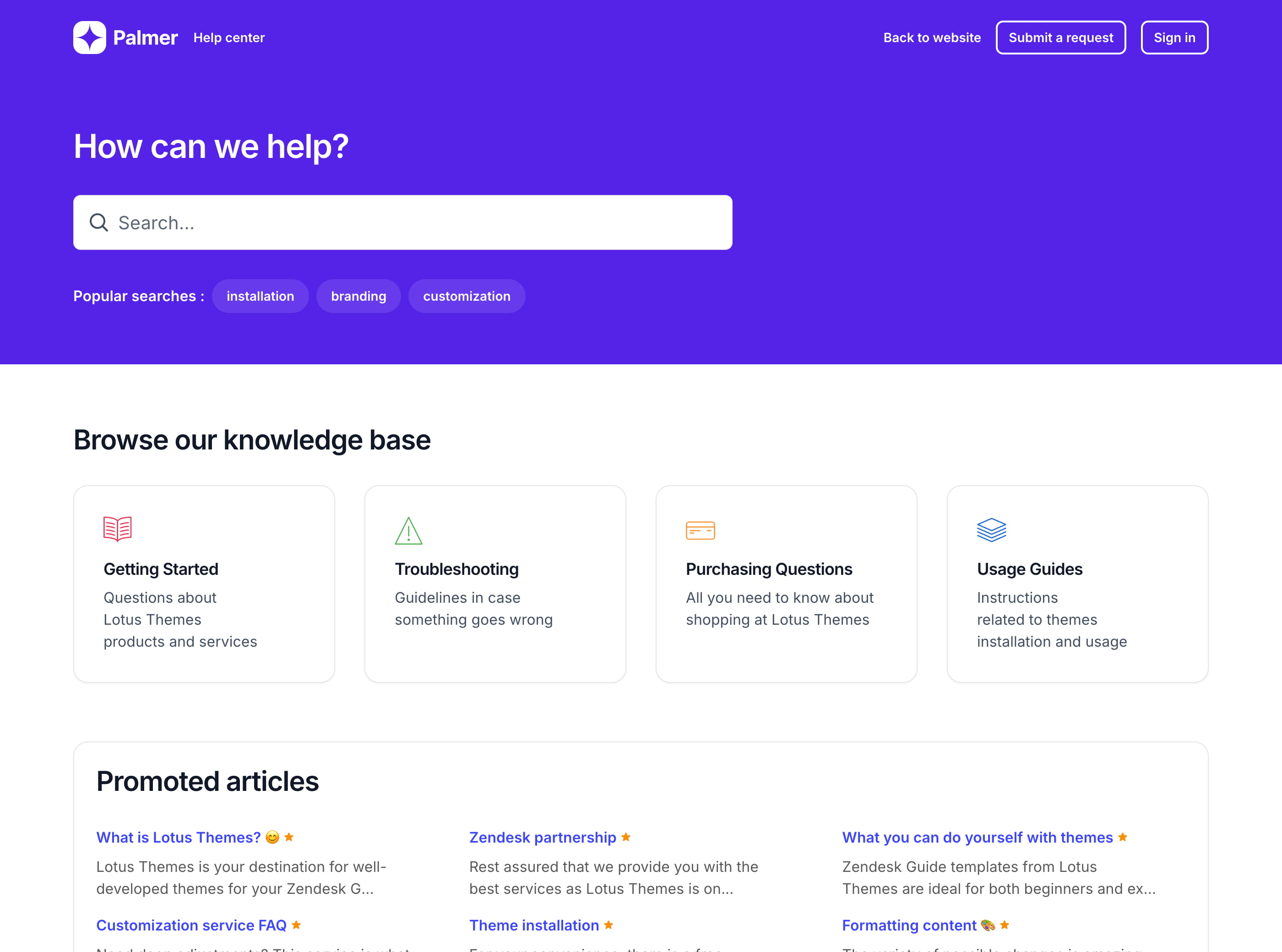 5,000+ companies have chosen Lotus Themes for their beautiful design, consistent performance, and ease of use. Even Zendesk hires us to improve their help centers. View case studies →