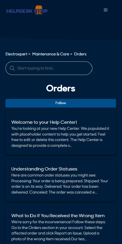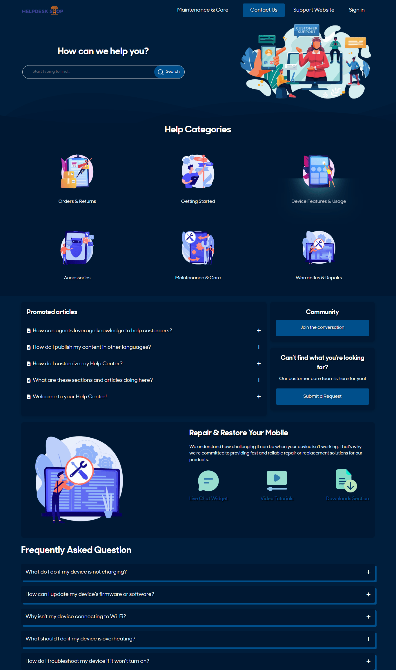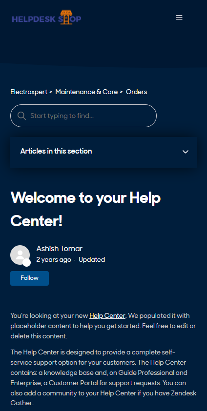 The Electroassist theme mesmerizes with its elegant design and striking blue background, boosting visual appeal. This fully responsive theme, crafted for versatile use in the electronics market, is meticulously tailored for the Zendesk Help Center (Guide). Electroassist seamlessly merges style with functionality, ensuring smooth navigation. With a captivating color palette, a floating search box, and a modern layout, it sets a new standard for Help Center themes.