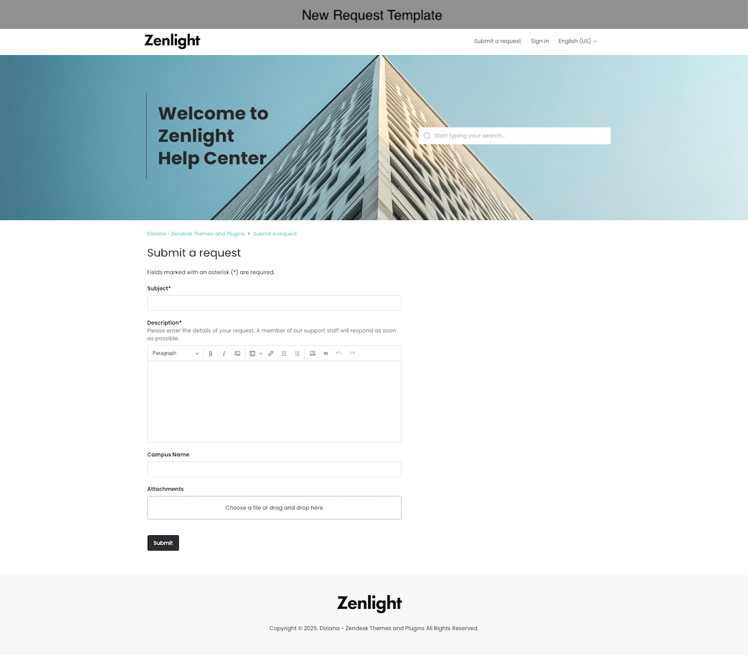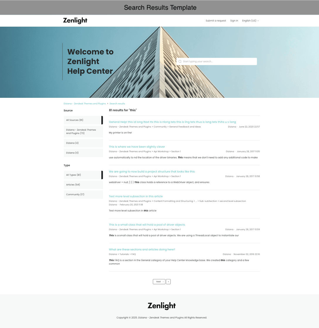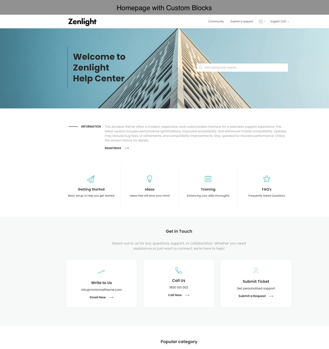 Zenlight is a fully responsive, multipurpose Zendesk Theme (templates) for your Zendesk Guide Help Center. It can be easily configured through the settings UI in Zendesk Guide Admin.