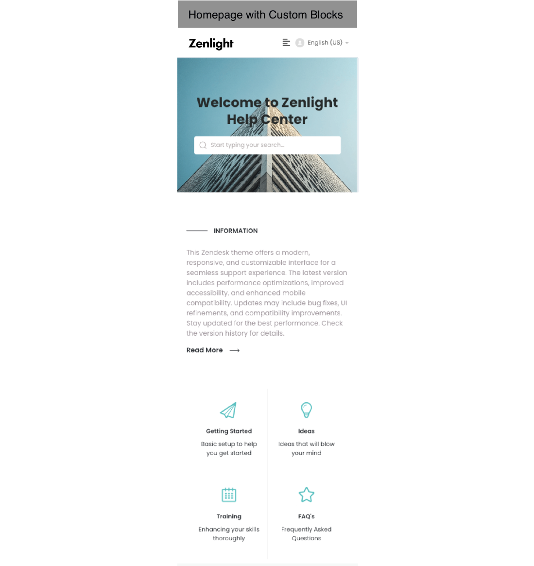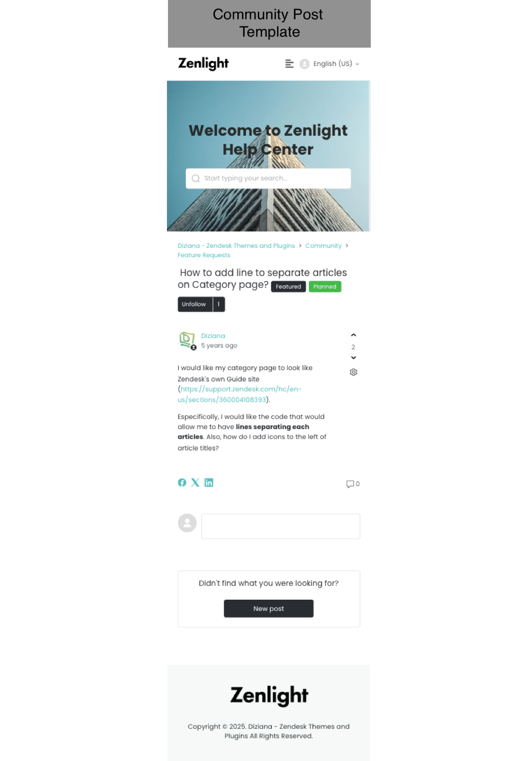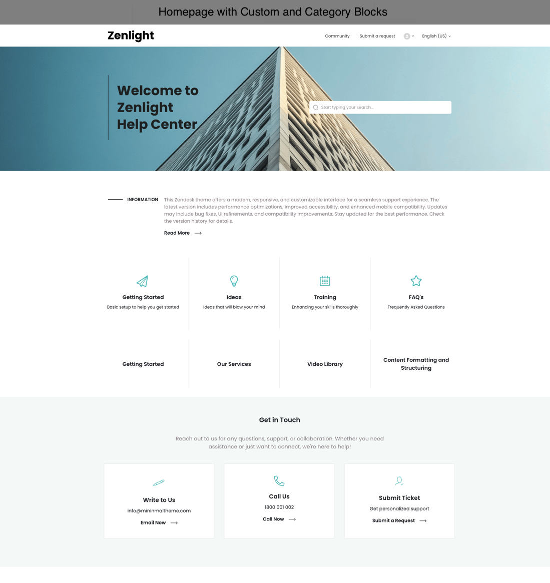 Zenlight is a fully responsive, multipurpose Zendesk Theme (templates) for your Zendesk Guide Help Center. It can be easily configured through the settings UI in Zendesk Guide Admin.