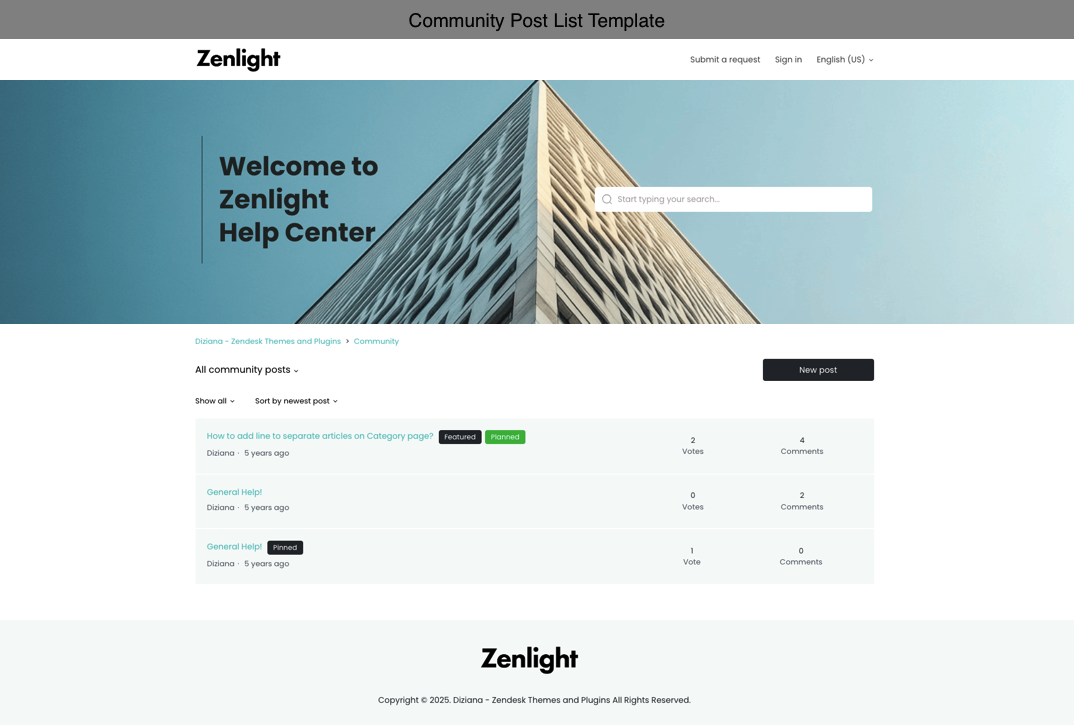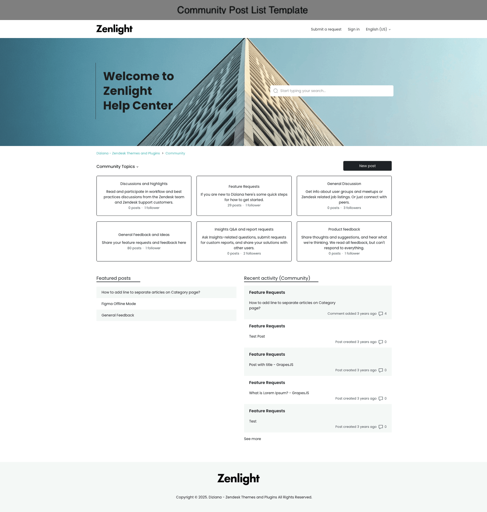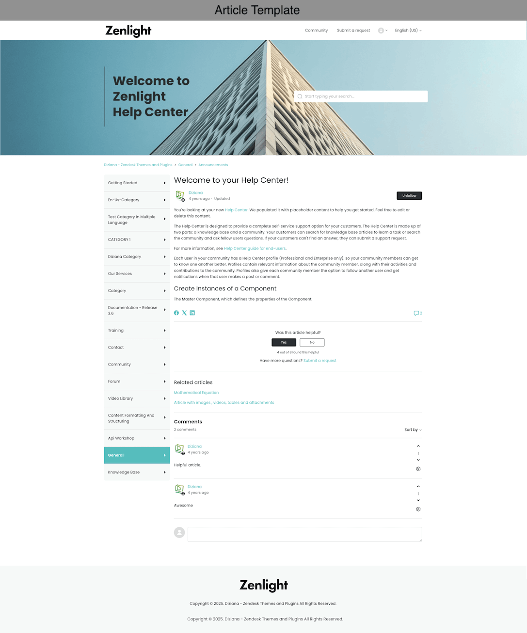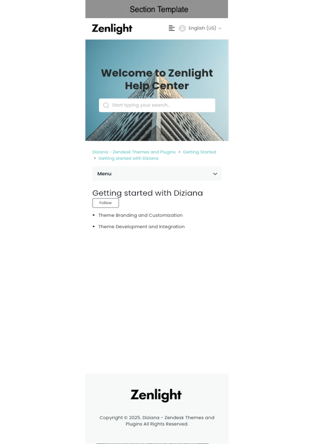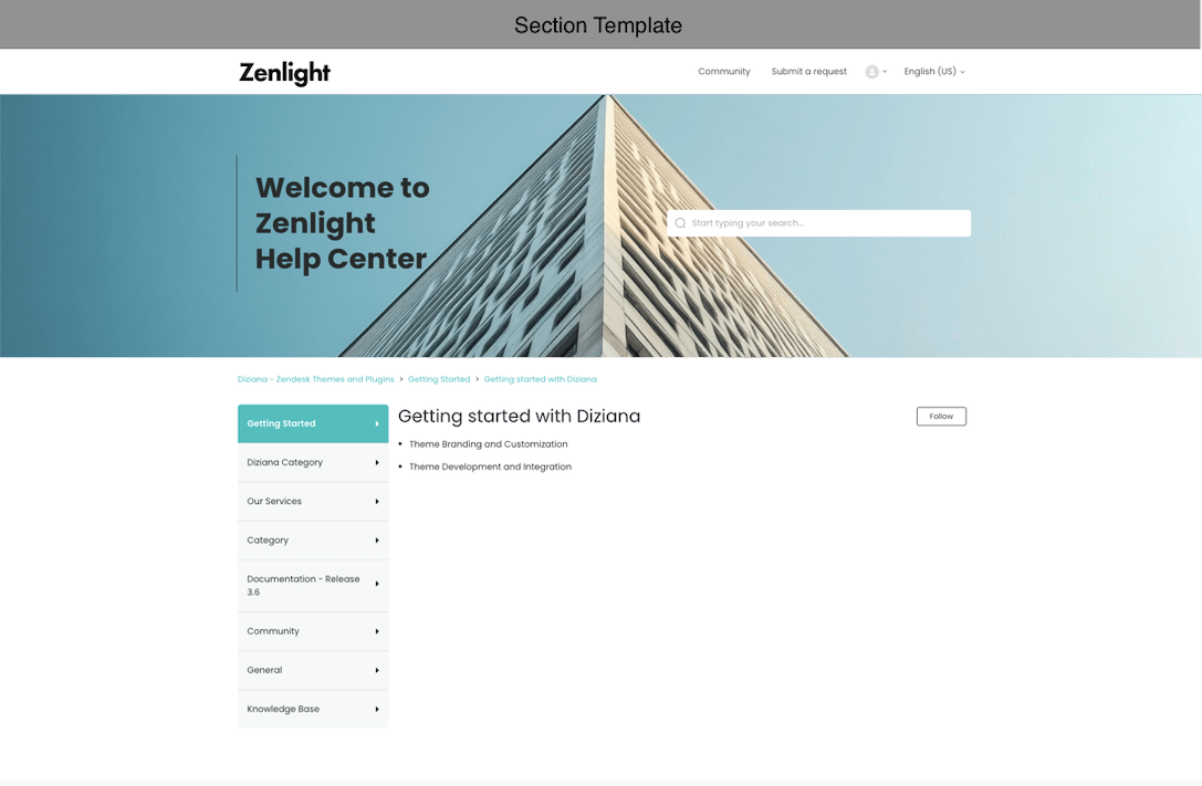 Diziana Zenlight is a fully responsive multipurpose Zendesk® Guide Help Center Theme (templates). This theme can be easily configured through settings UI in Zendesk Guide Admin.