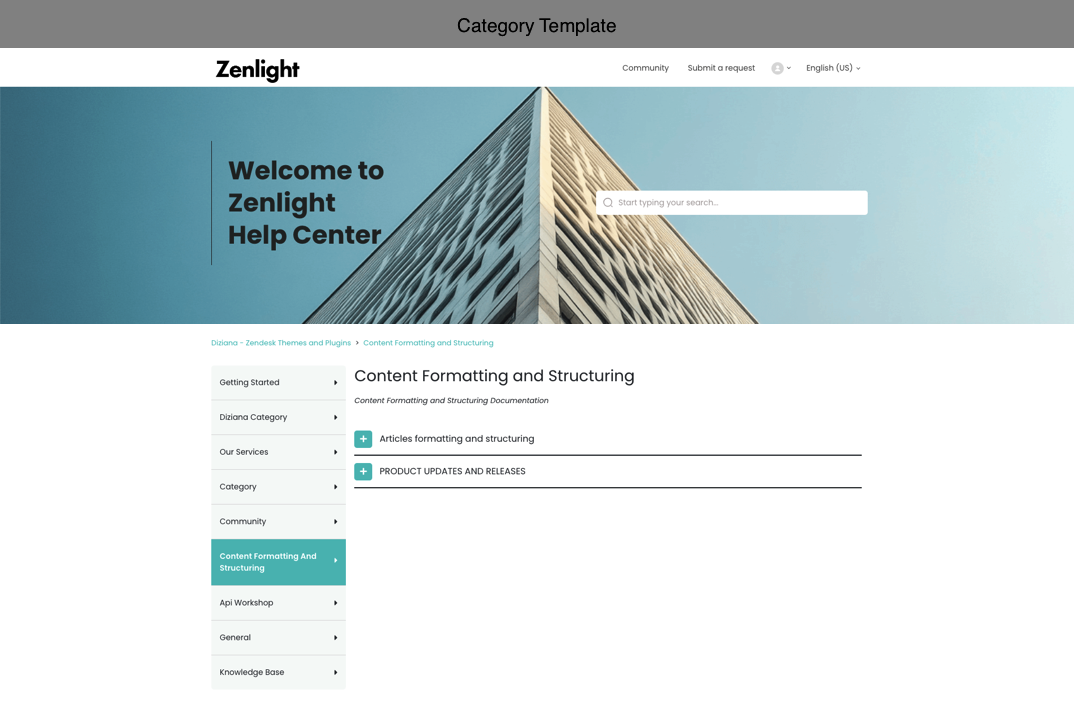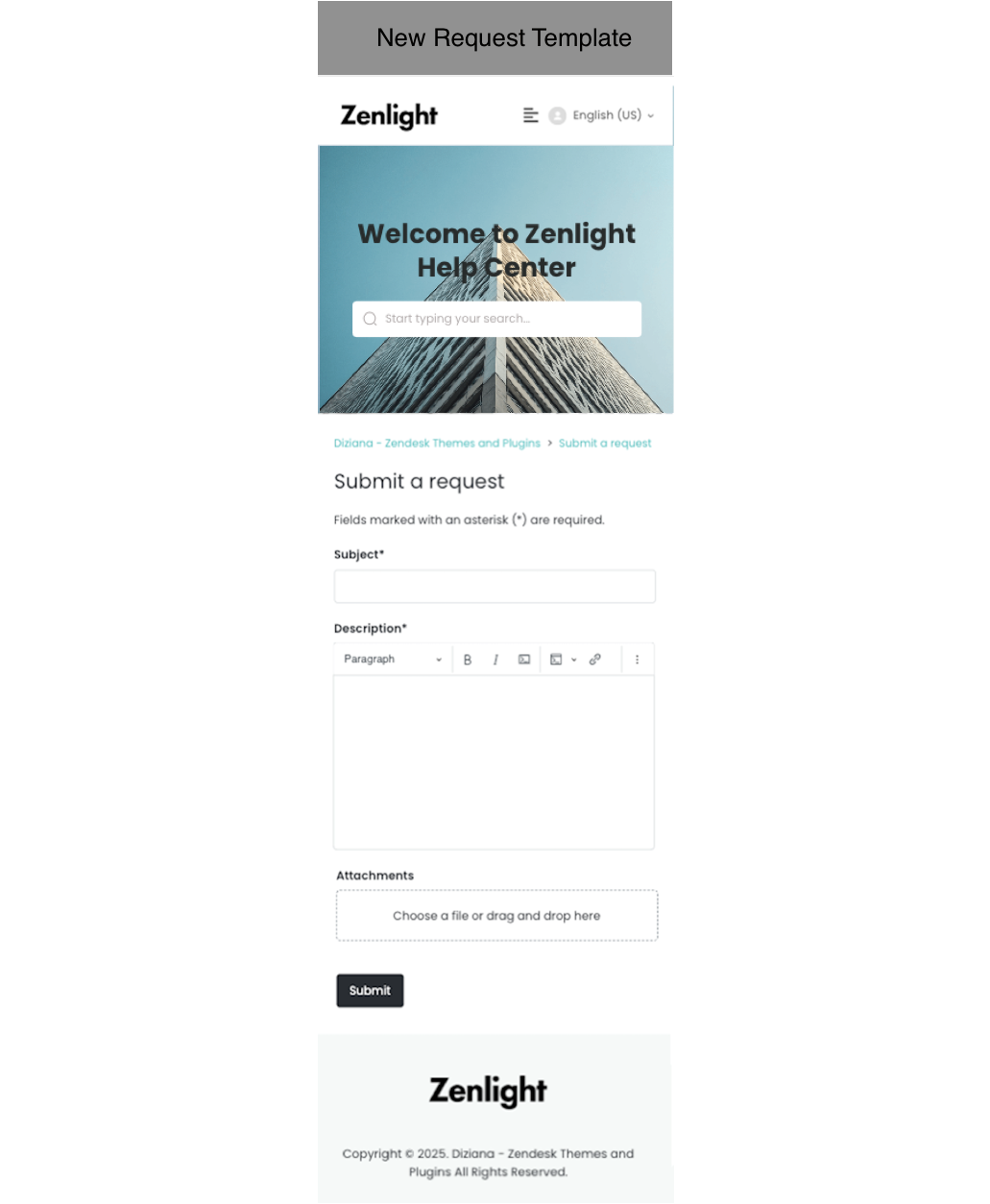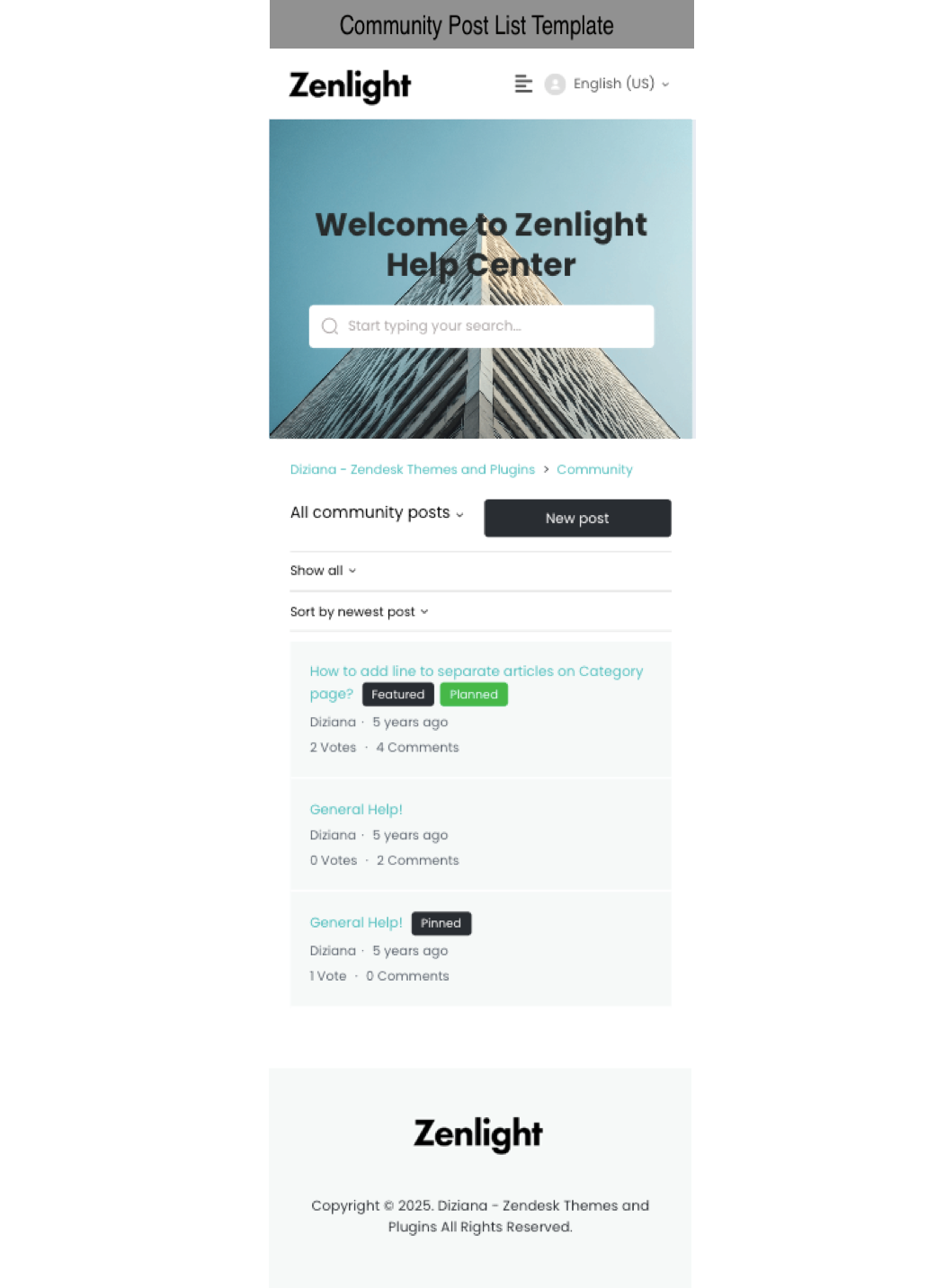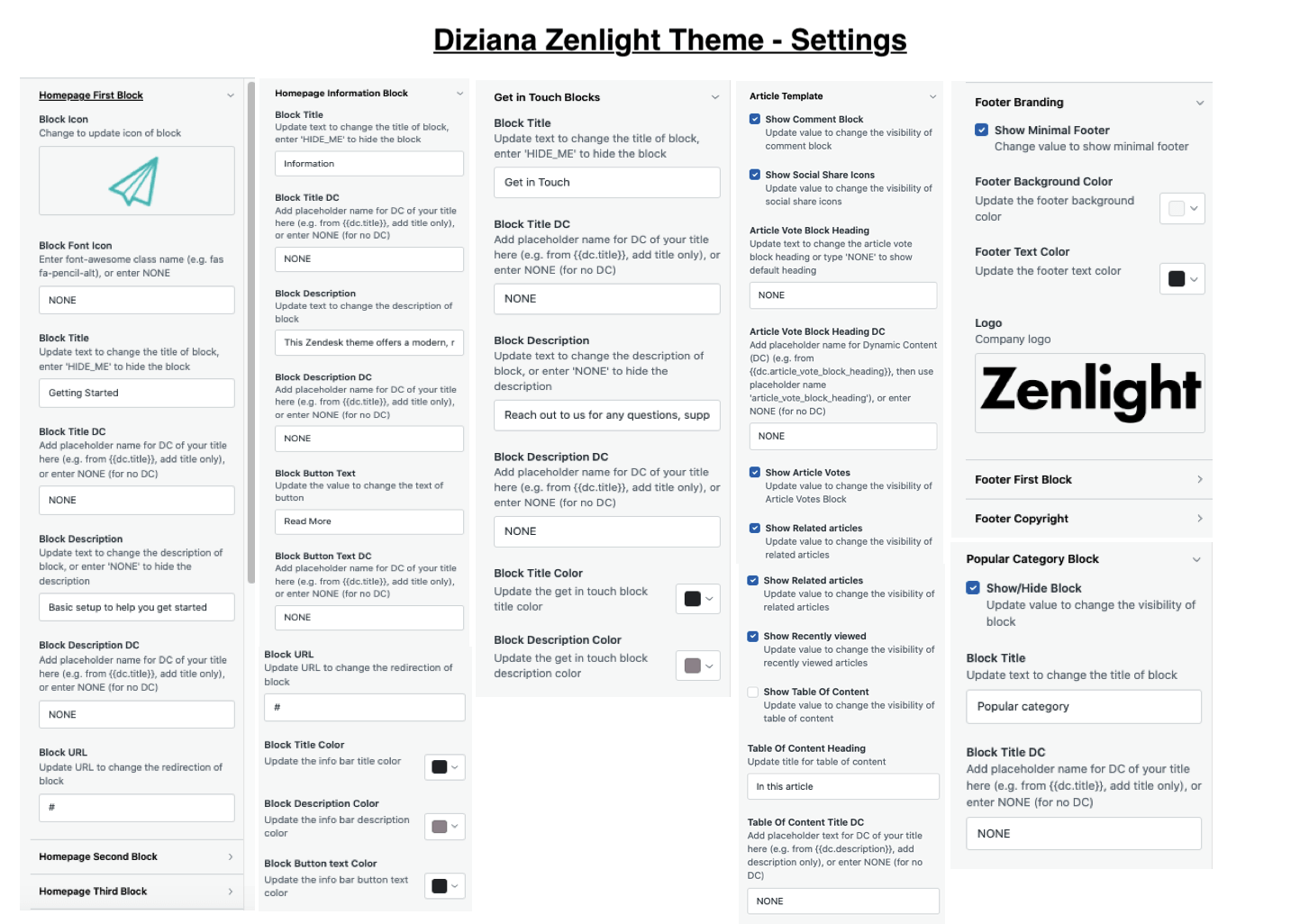 Diziana Zenlight is a fully responsive multipurpose Zendesk® Guide Help Center Theme (templates). This theme can be easily configured through settings UI in Zendesk Guide Admin.