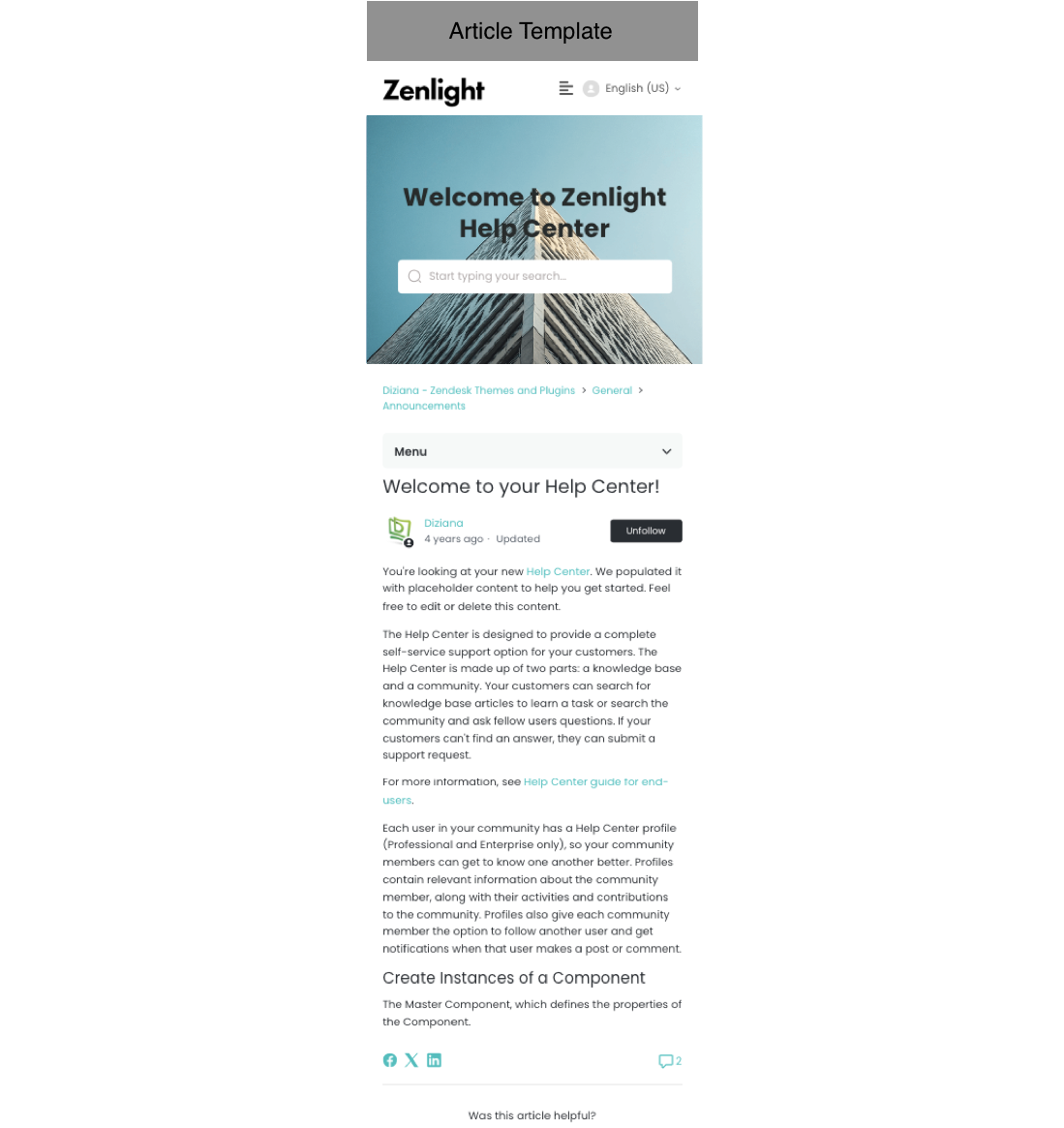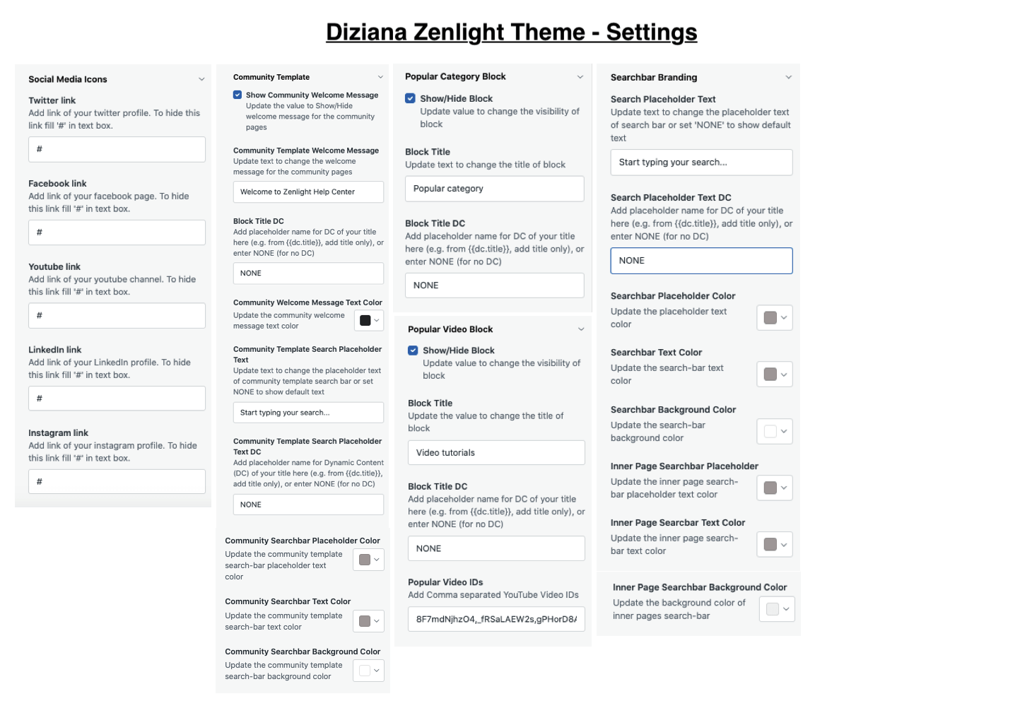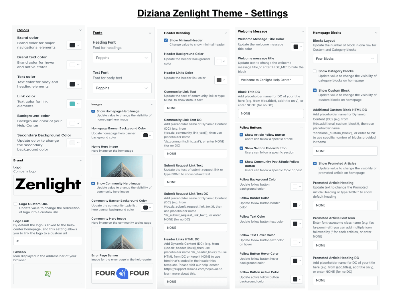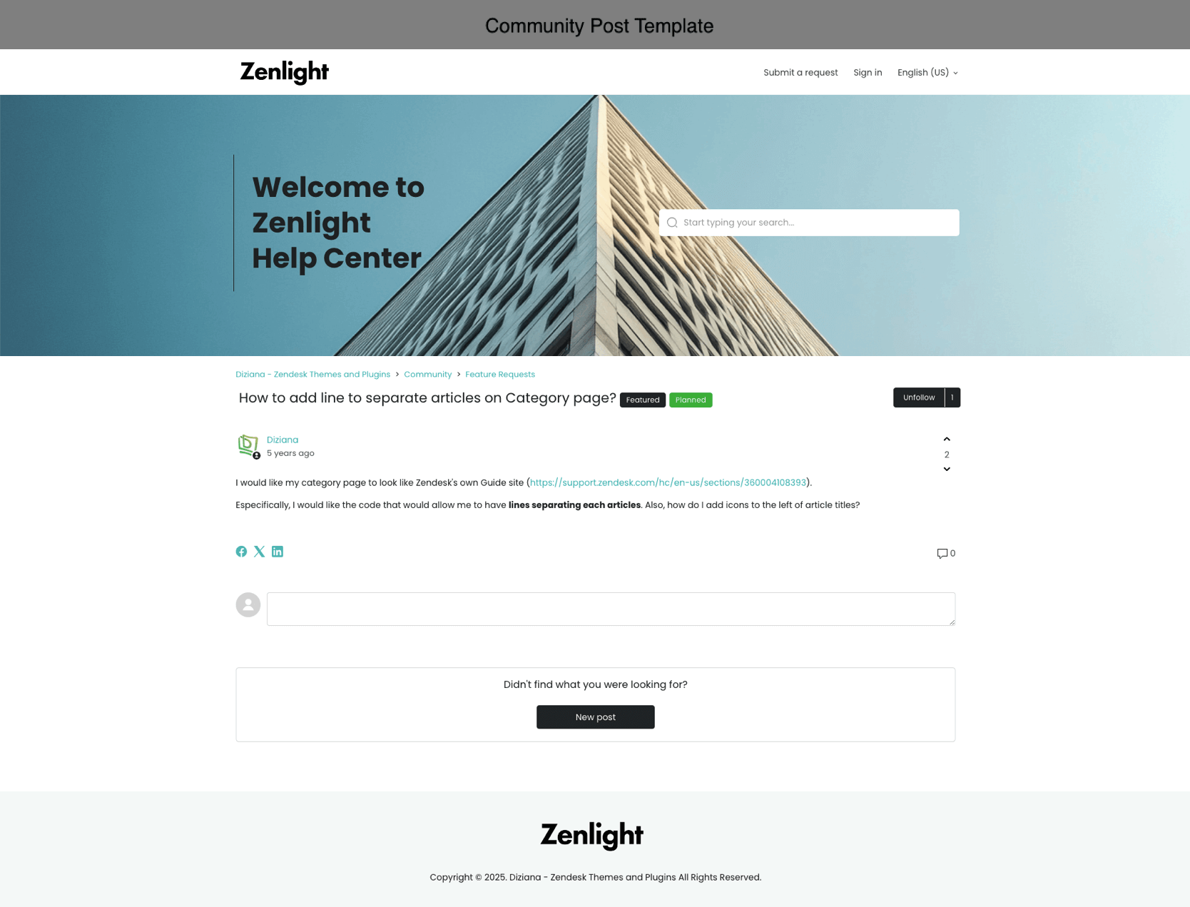 Diziana Zenlight is a fully responsive multipurpose Zendesk® Guide Help Center Theme (templates). This theme can be easily configured through settings UI in Zendesk Guide Admin.