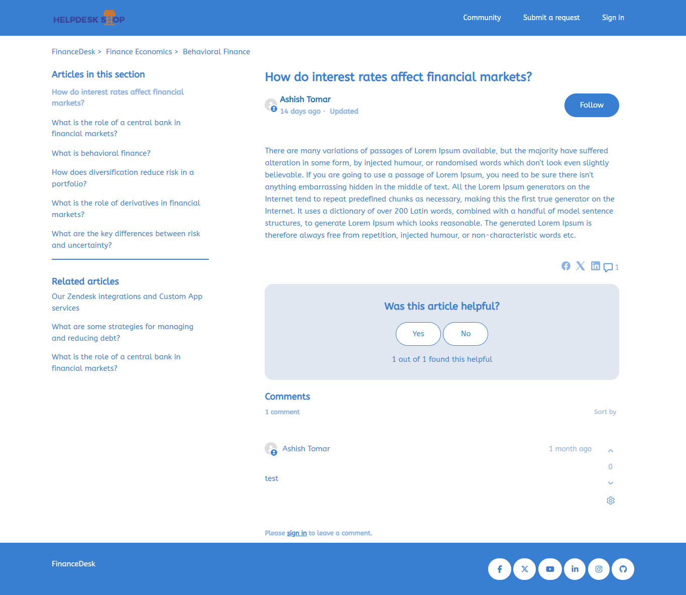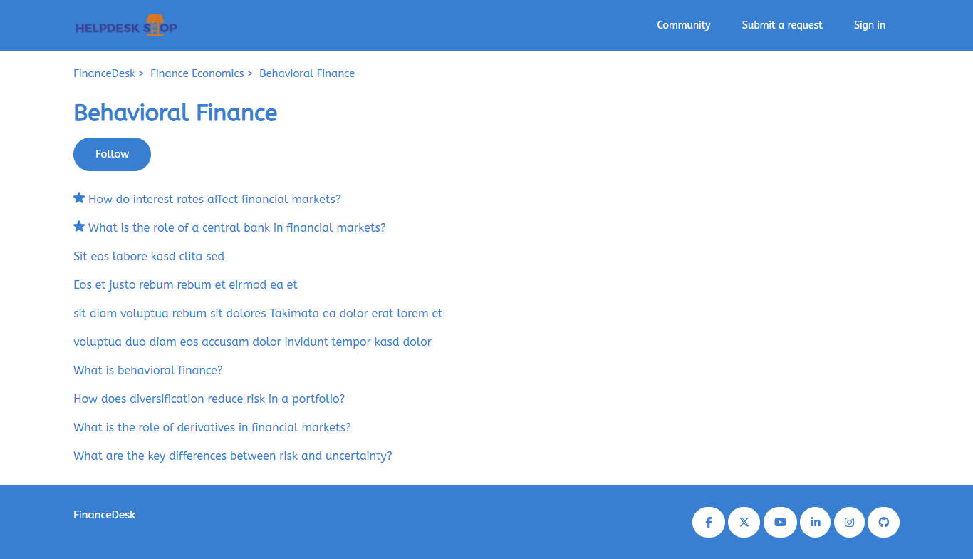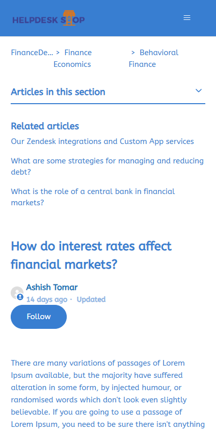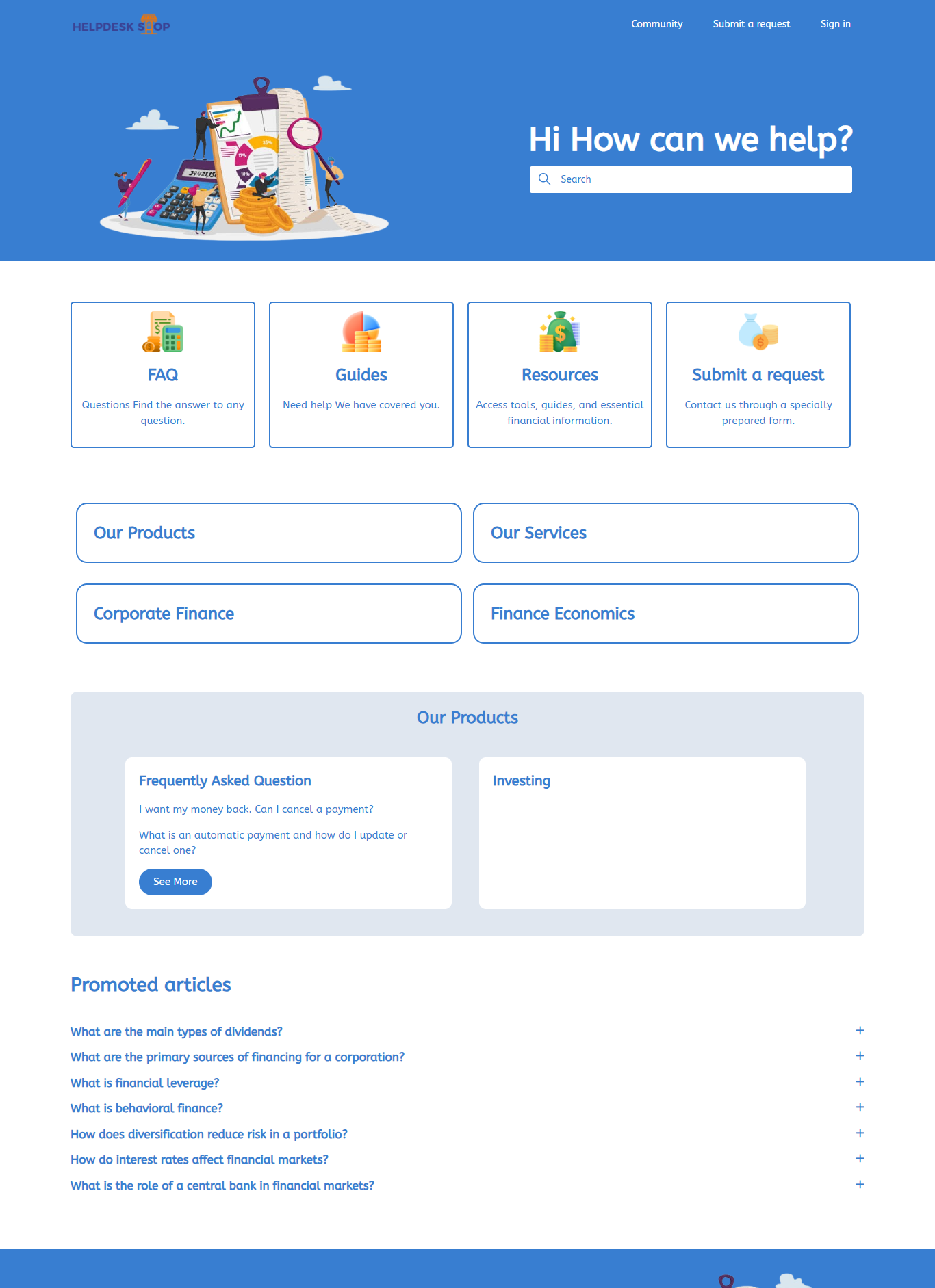 FinanceDesk is a fully responsive, multipurpose Zendesk Help Center (Guide) theme that balances style and performance. Designed for seamless navigation, it features a refined image beside the search box and an impressive full-screen layout. With beautiful blocks, responsive design elements, and a modern aesthetic, it creates a light, refined ambiance. Following the latest web design trends, FinanceDesk introduces a fresh layout packed with extensive features for an enhanced user experience.