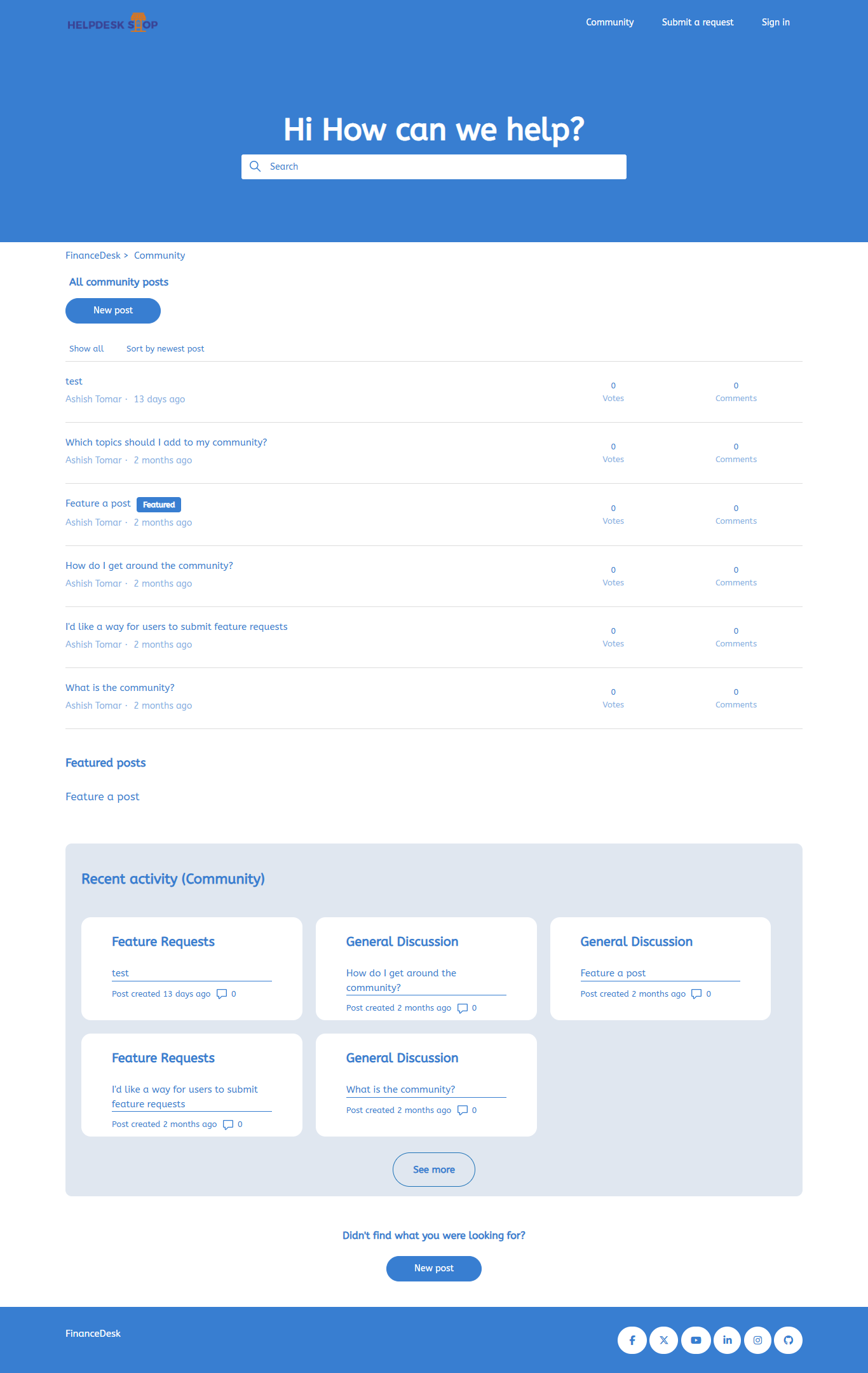 Custom Blocks - Custom blocks are static links to any pages on your help center or your main website. It’s possible to change the link, icon, title, and description in each of them. There is one more block also which is only visiblefor the end users. This theme is partially configurable from the admin settingsUI. You can look at the screenshots of the admin settings UI. If any bugs occur you get your problem fixed free of charge within 3 months after the purchase. You can contact us at any time after the theme purchase through ‘Email’ and get assistance.