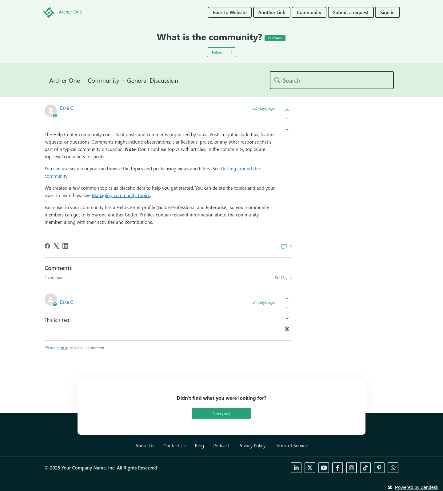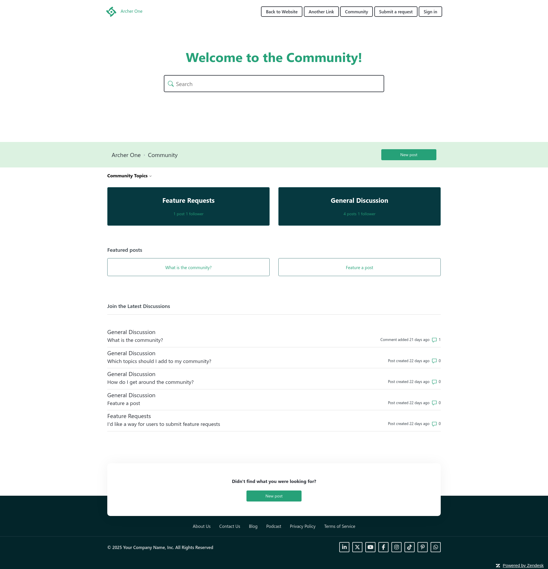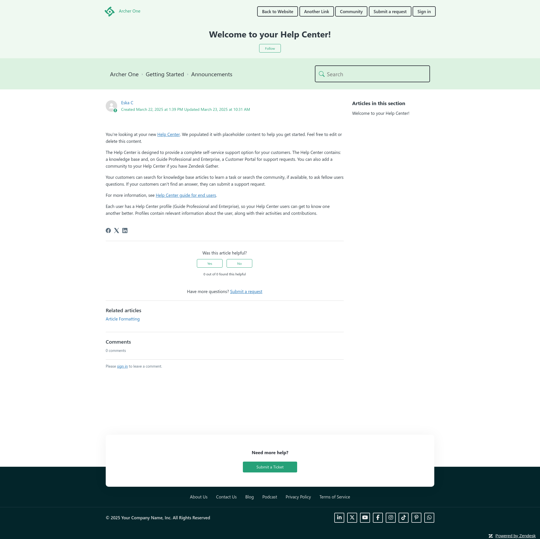 Archer One provides a modern, responsive layout that makes customizing your help center a breeze. Get started with an engaging design featuring multiple category boxes , along with fully customizable header and footer. This flexible structure not only helps organize your content in a visually appealing way but also ensures that your users can easily navigate your help center.