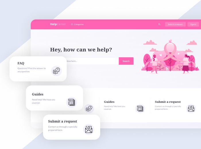 Play around with different styles and designs to reflect your unique identity. Adapt colors, images, icons, fonts, and logos: our Zendesk theme offers easy help center customization without coding.