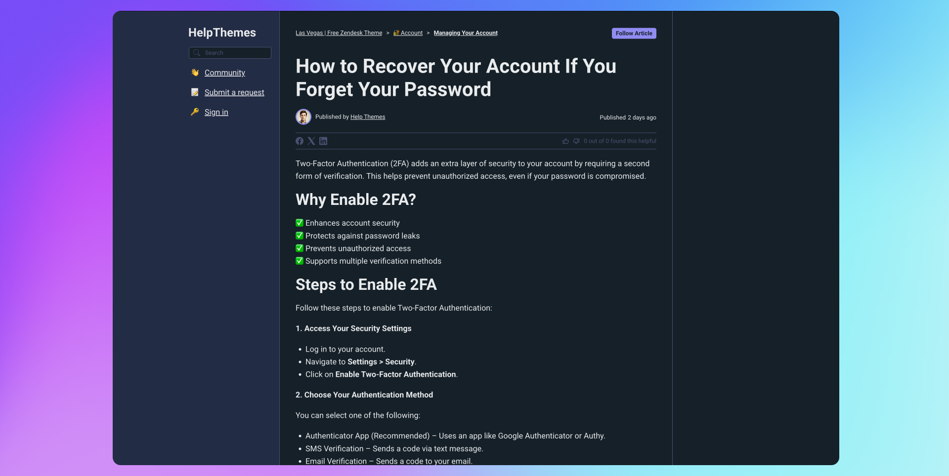 HelpThemes is a design and development agency focused on providing Zendesk customers with the largest collection of easy-to-customize themes. We've developed the largest collection of affordable Zendesk themes on the internet. Check out more of our affordable Zendesk themes at HelpThemes.com.