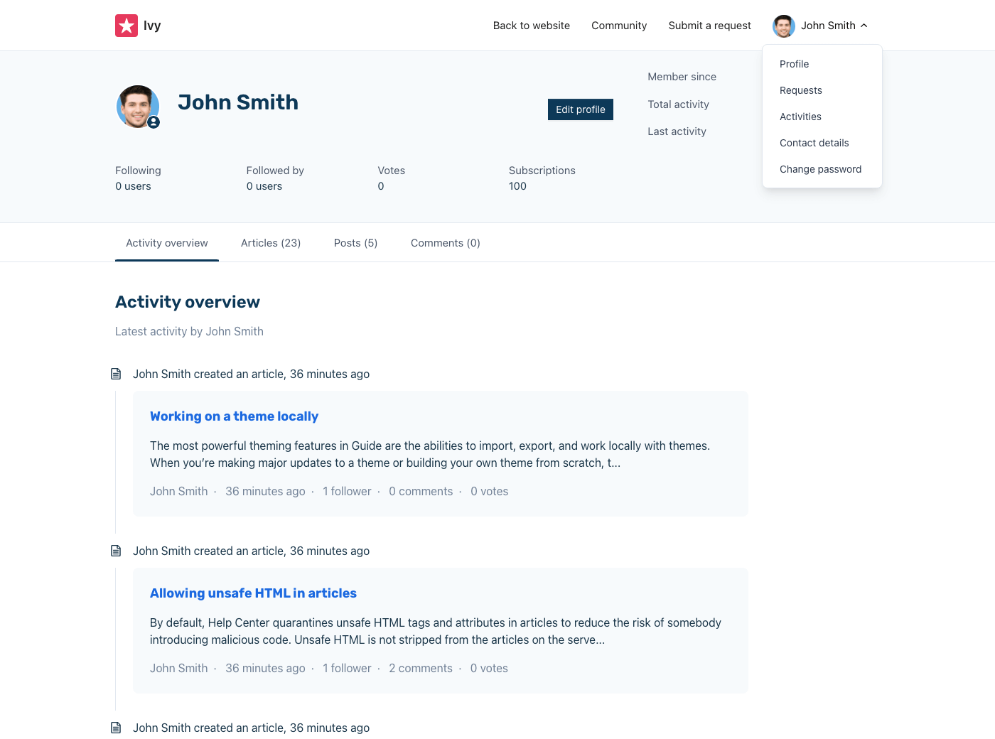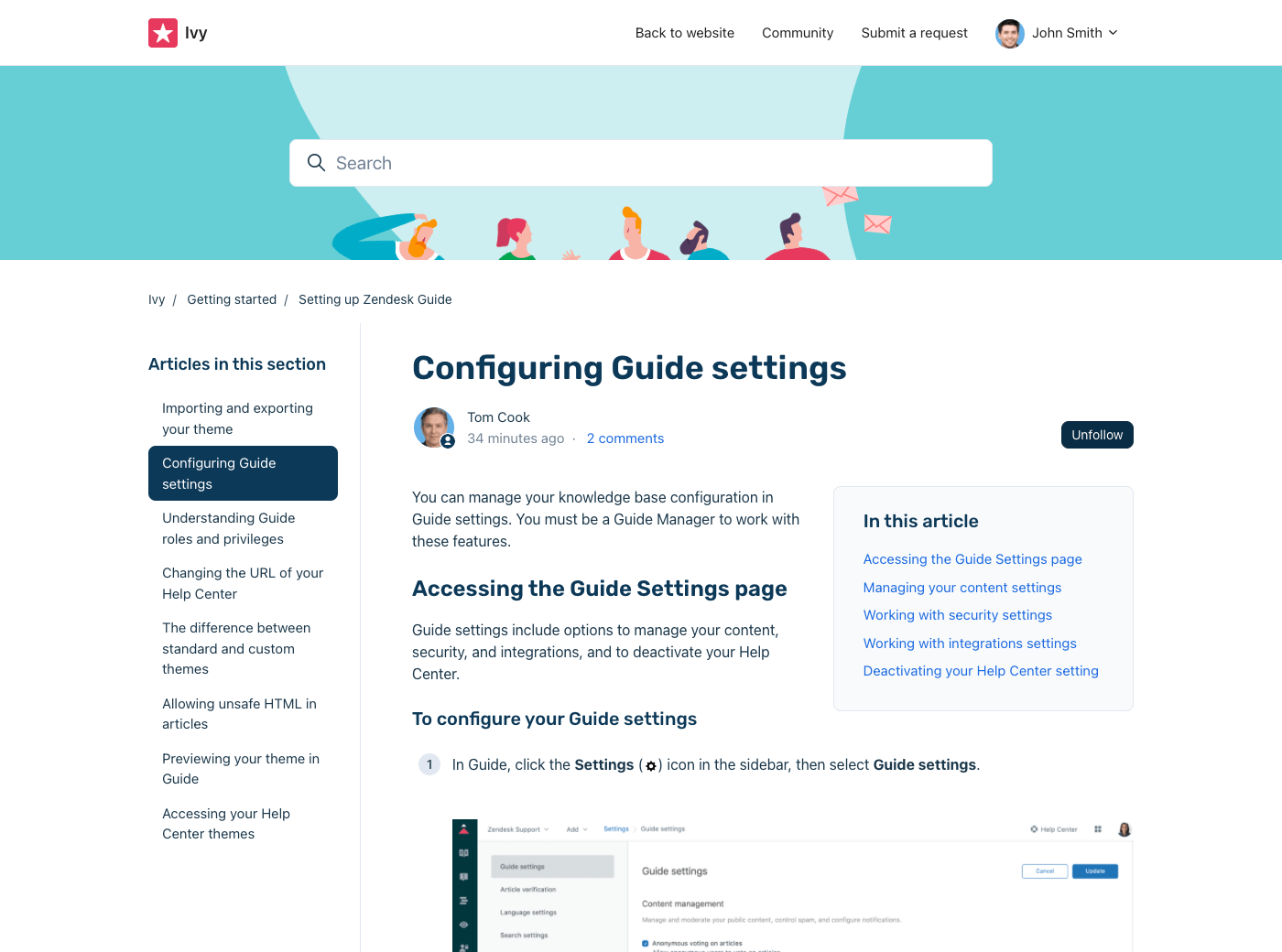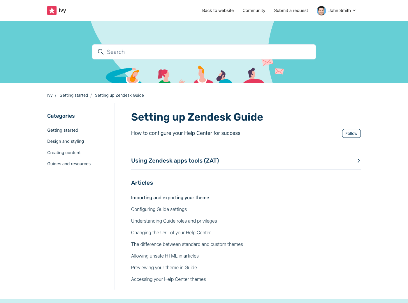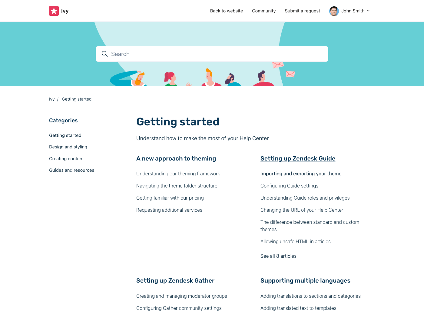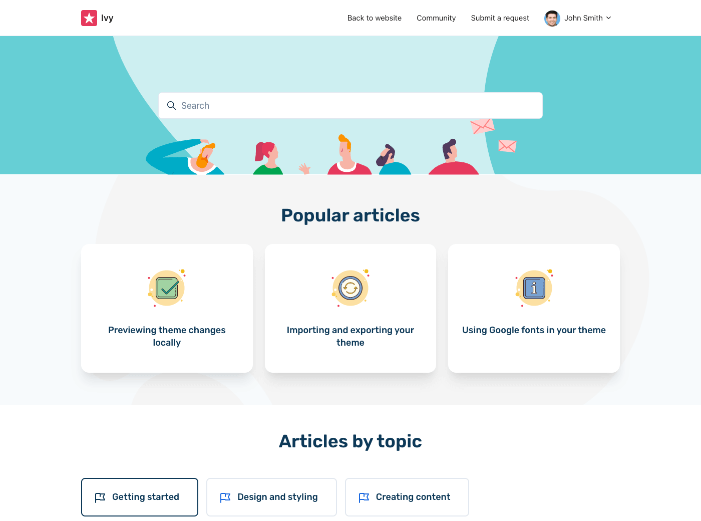 Ivy is a beautiful and highly customizable theme for Zendesk Guide. It is designed to serve as a solid foundation on which to build an amazing knowledge base for your customers.