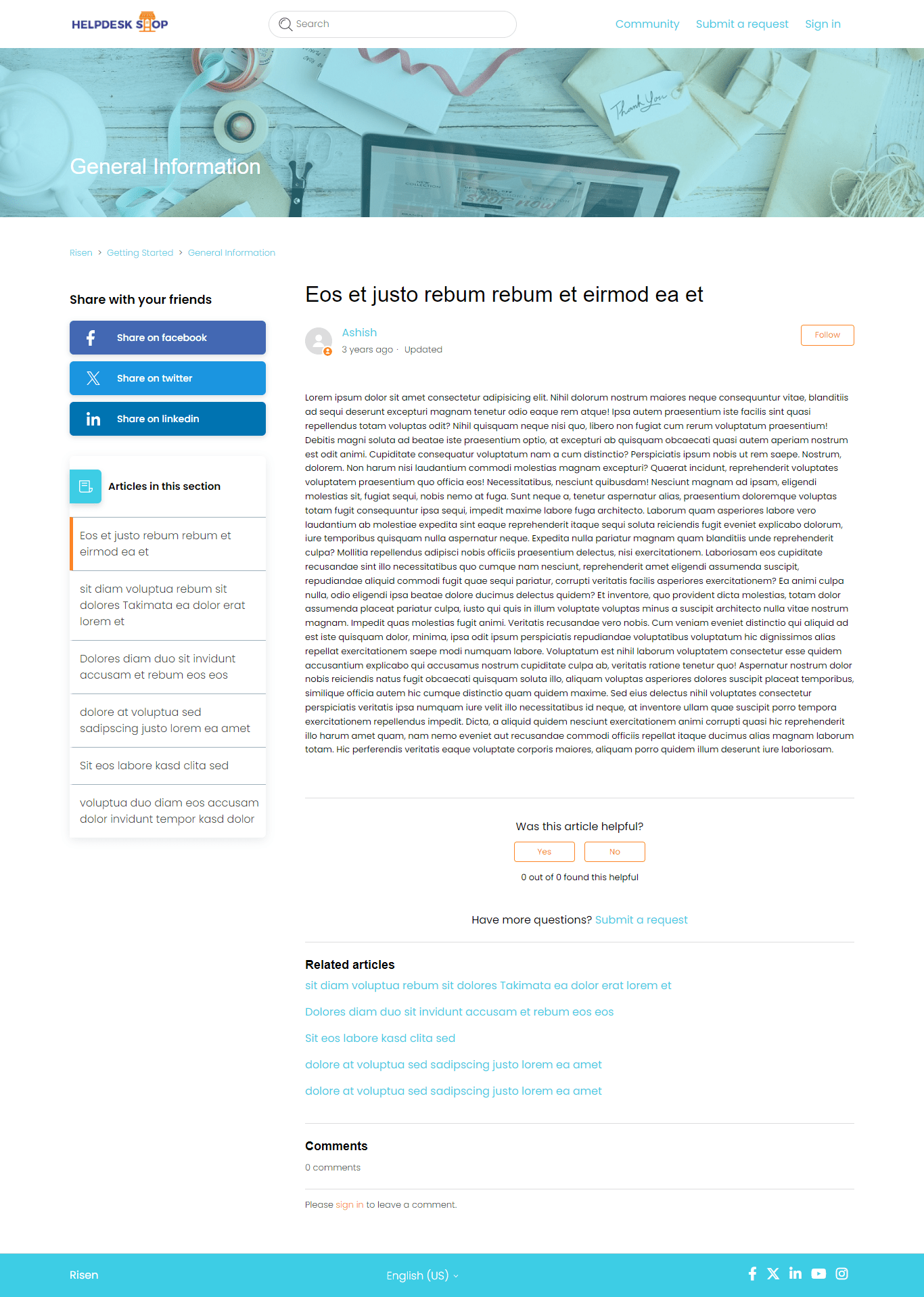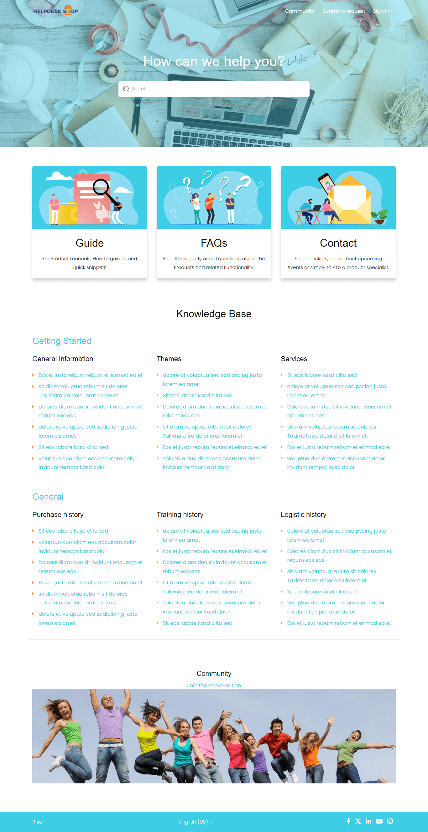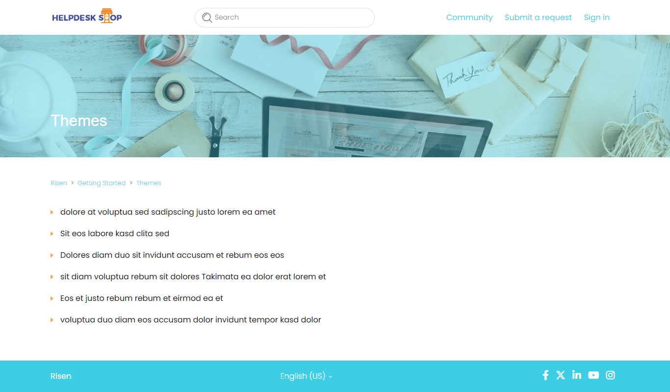 About the theme -Risen is a fully responsive multipurpose Zendesk Help Center (Guide) theme. The theme is a perfect balance between style and performance. All the elements of the help center are arranged in a way that keeps navigation super easy. The theme comes with a large parallax image at the back of a floating search box at the centre of it all. It has a stunning full-screen layout with beautiful blocks and interactive design elements, which generate an airy and elegant feeling to the help center. It follows latest trends in web design and features a brand new layout with a long list of features.
