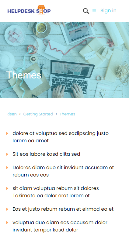Theme features -Fully responsive – Our responsive themes for Zendesk Help Center are designed for all kinds of devices and all major browsers. Your customers will be able to use your Help Center on any device — either on a large desktop or on a small smartphone. We ensure that the themes are cross-browser and cross-device compatible.