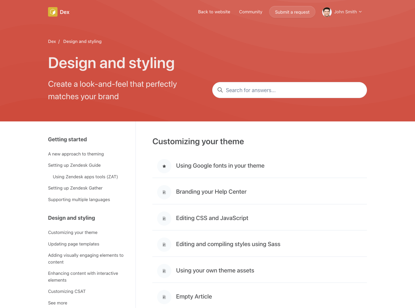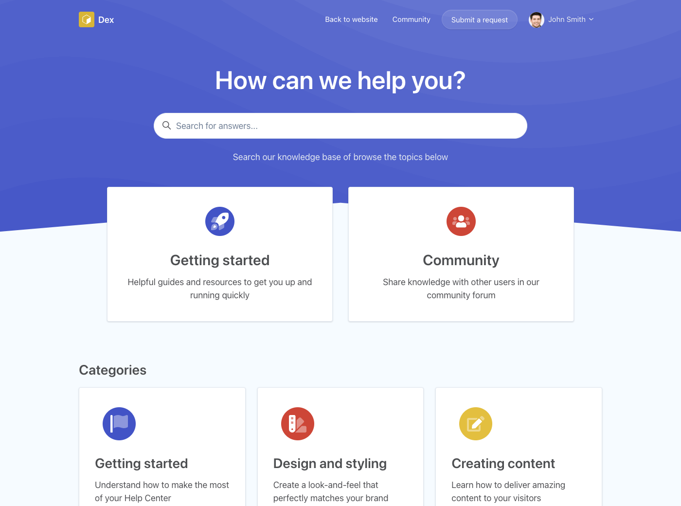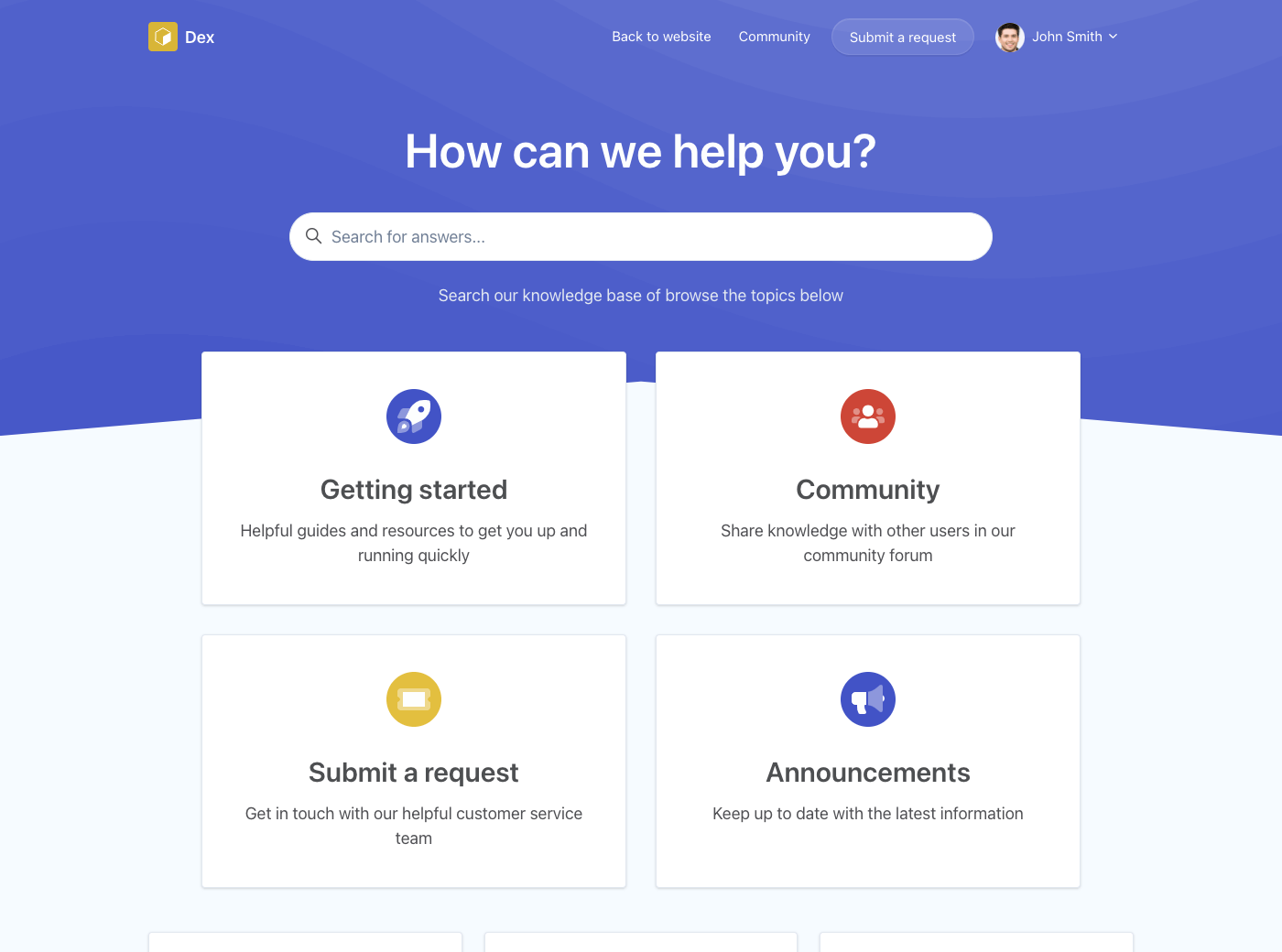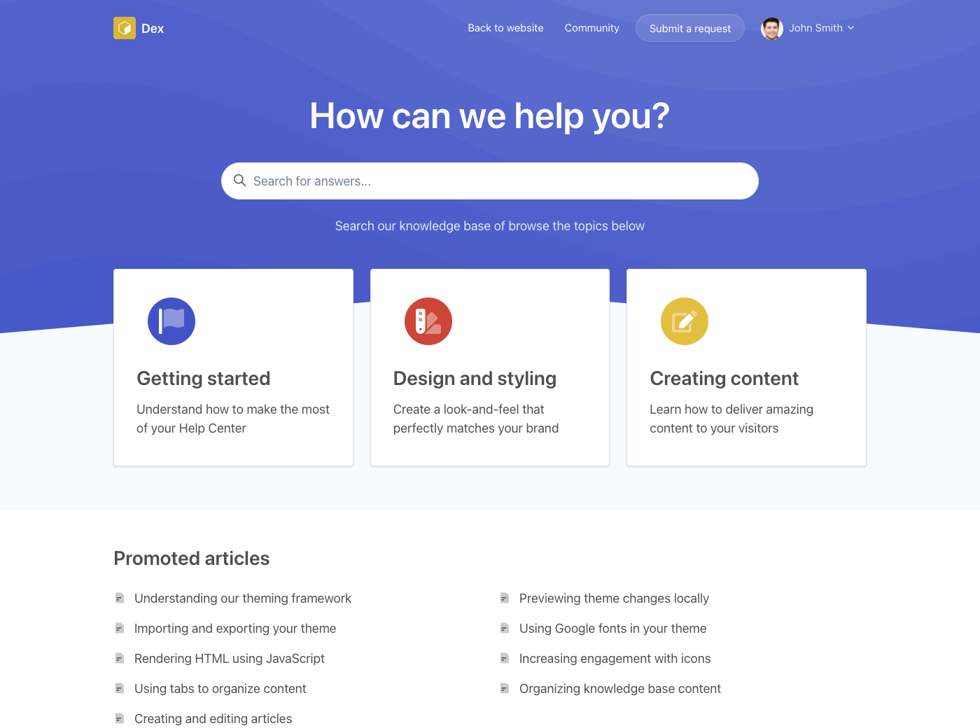 Dex is a beautiful and highly customizable theme for Zendesk Guide. It is designed to serve as a solid foundation on which to build an amazing knowledge base for your customers.