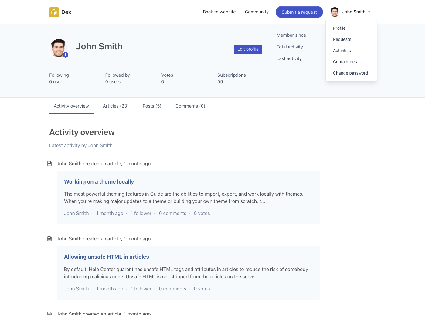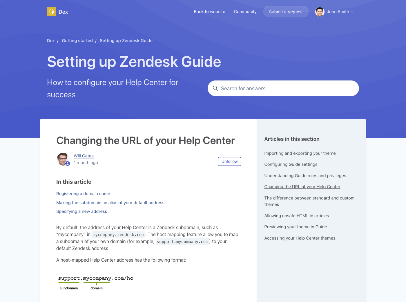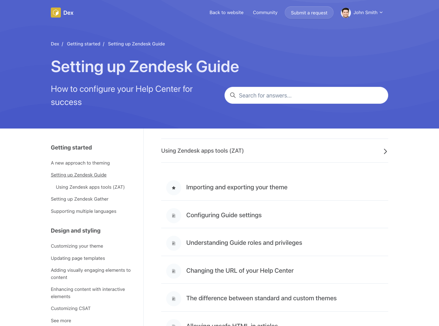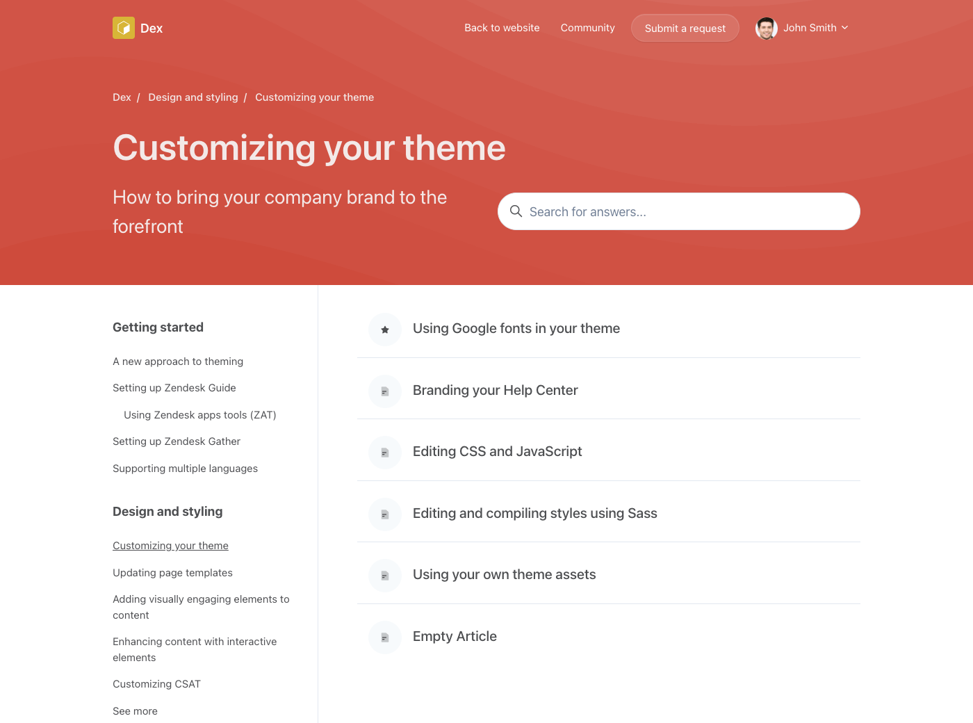 Dex is a beautiful and highly customizable theme for Zendesk Guide. It is designed to serve as a solid foundation on which to build an amazing knowledge base for your customers.