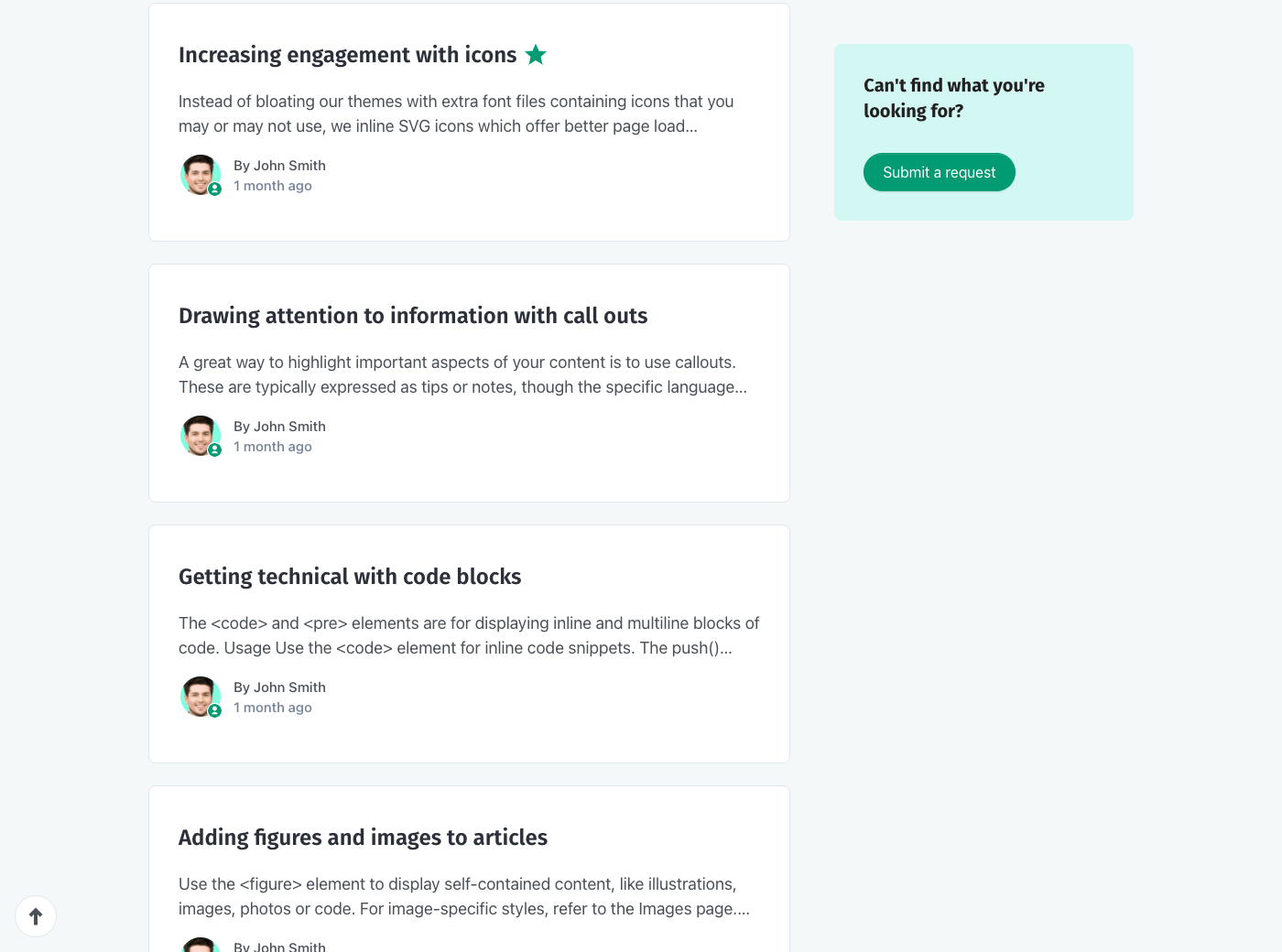 Our premium Zendesk themes are unique in that they're built on top of a powerful theming framework that allows elements and even entire layouts to be easily copied and pasted from our ever-growing library of help center UI patterns. You will not find this level of flexibility or control anywhere else!