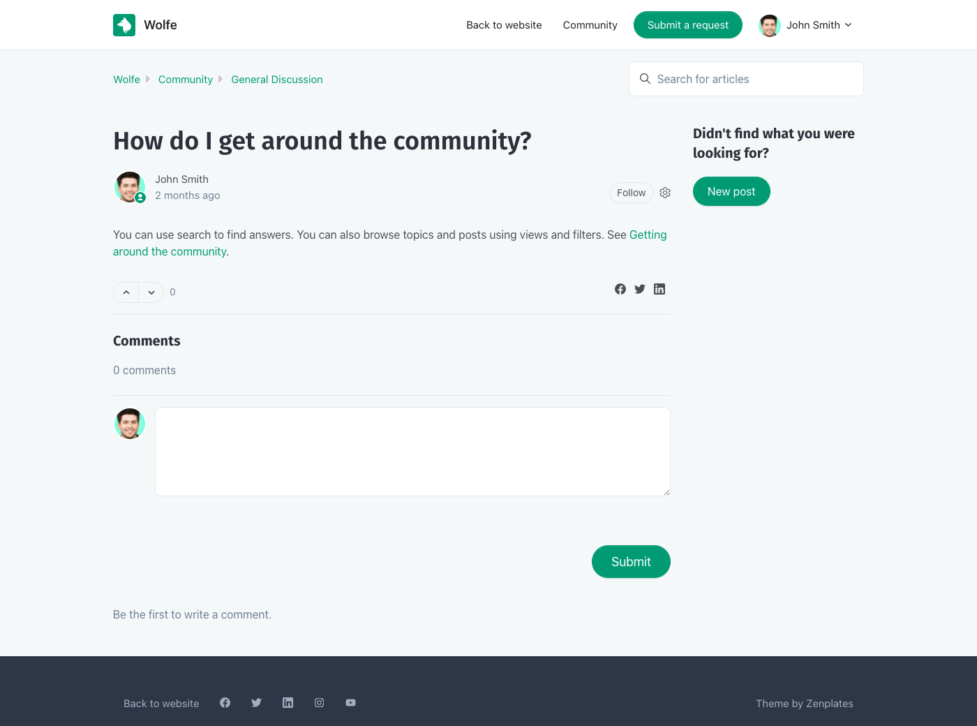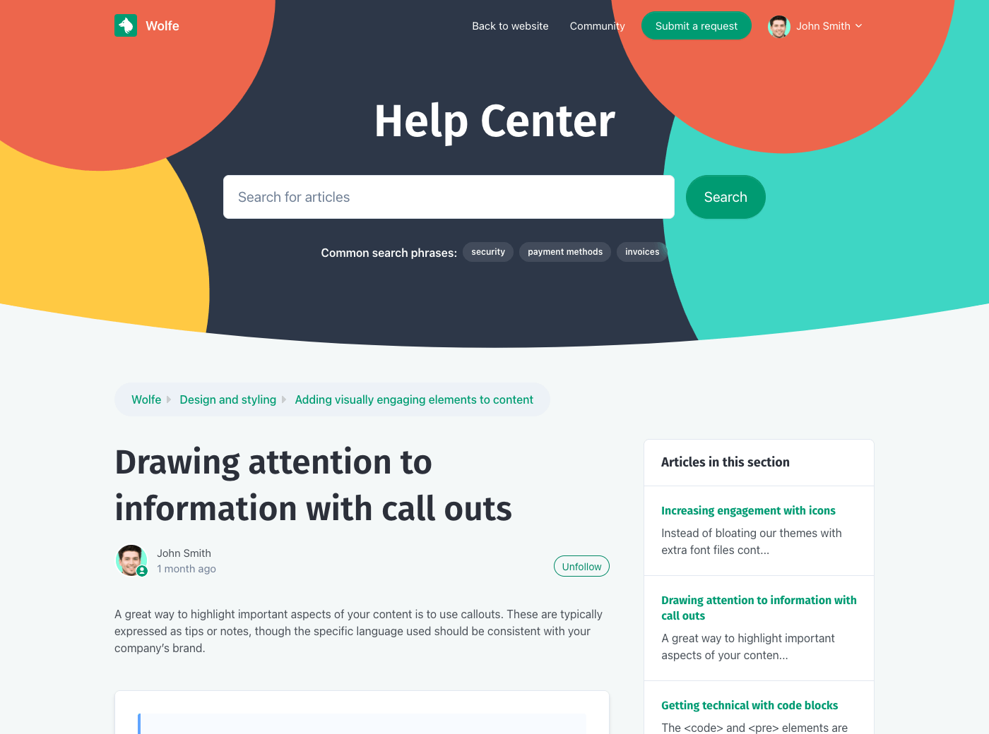 Wolfe is a beautiful and highly customizable theme for Zendesk Guide. It is designed to serve as a solid foundation on which to build an amazing knowledge base for your customers.