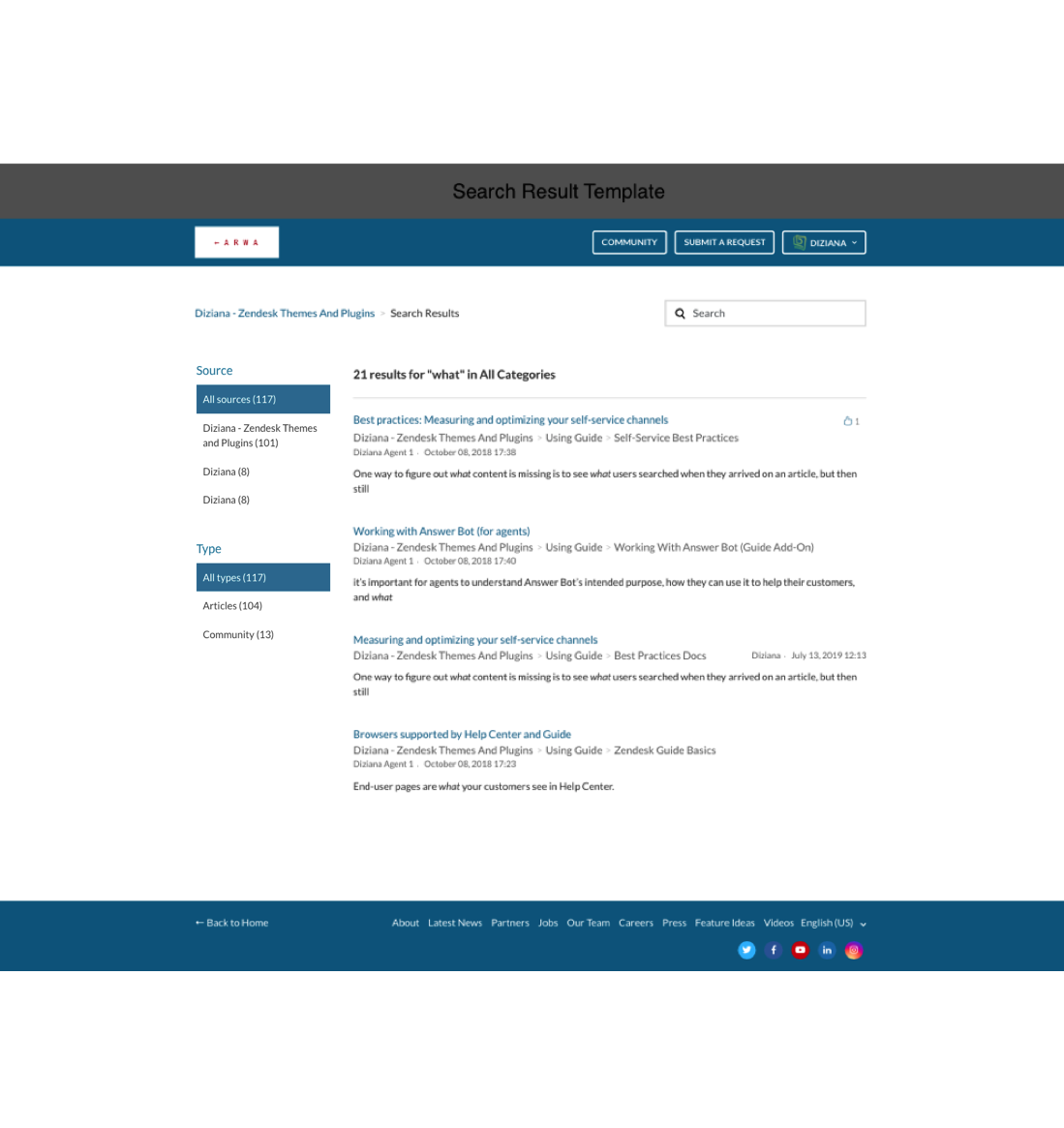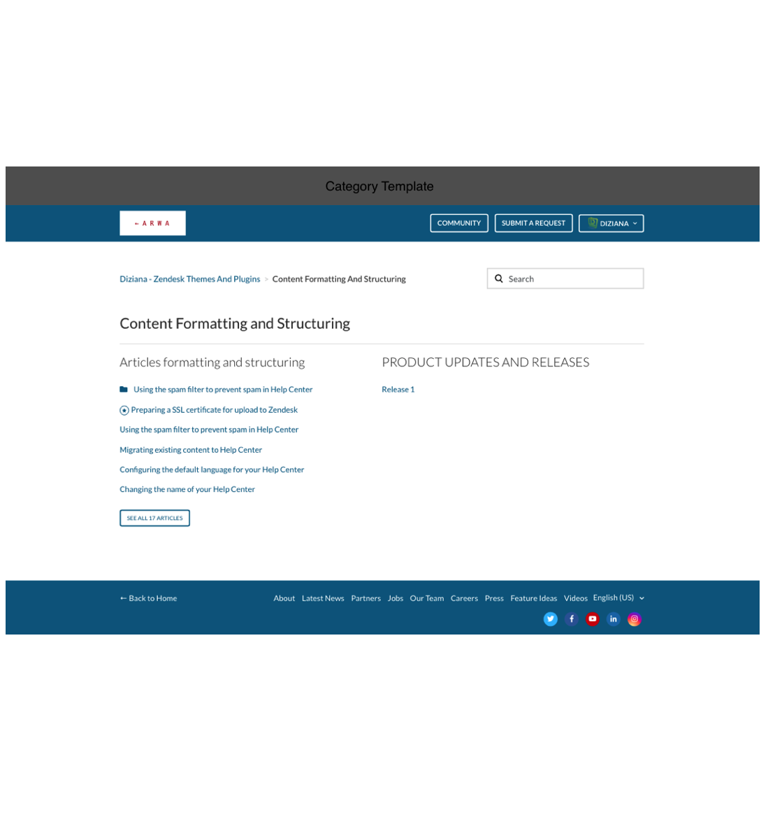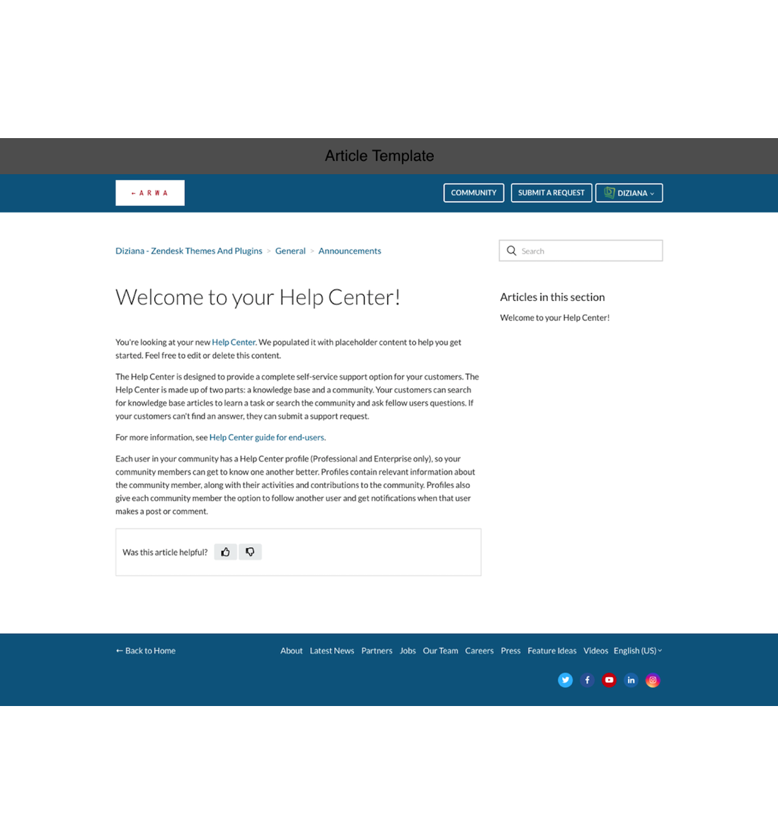 Theme License: Diziana Arwa Theme License for One (1) Zendesk Help Center or Brand.