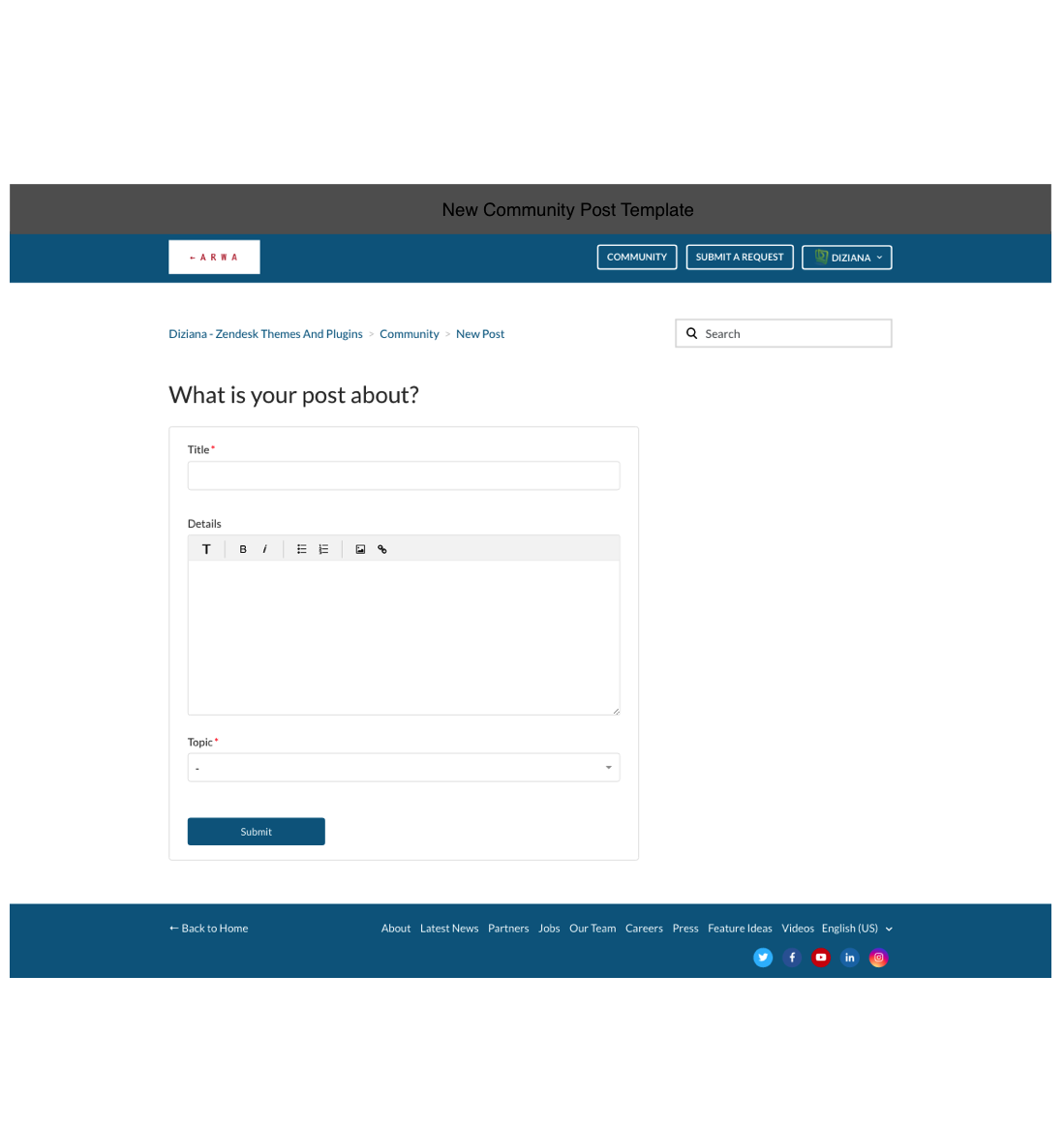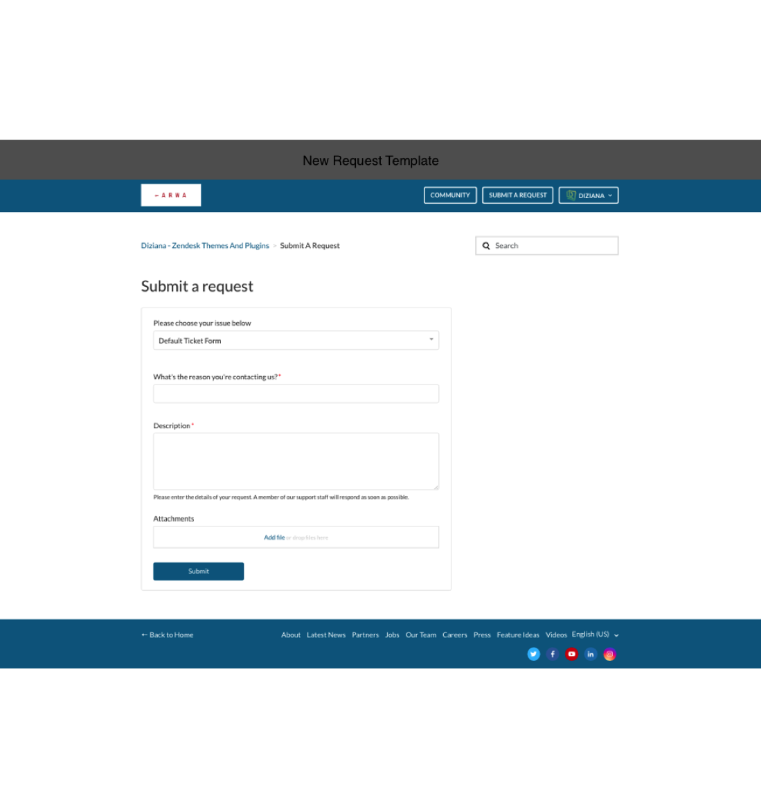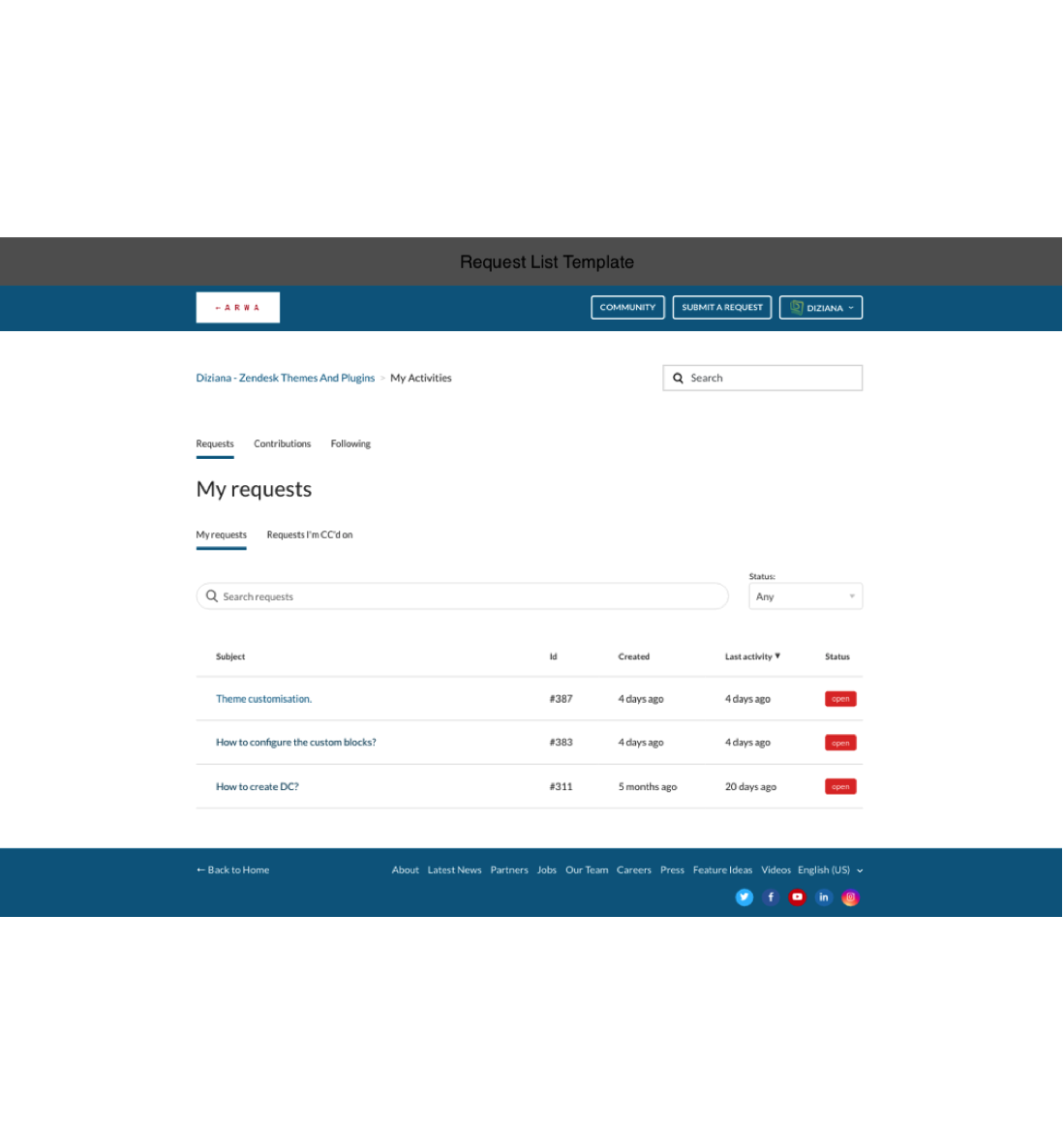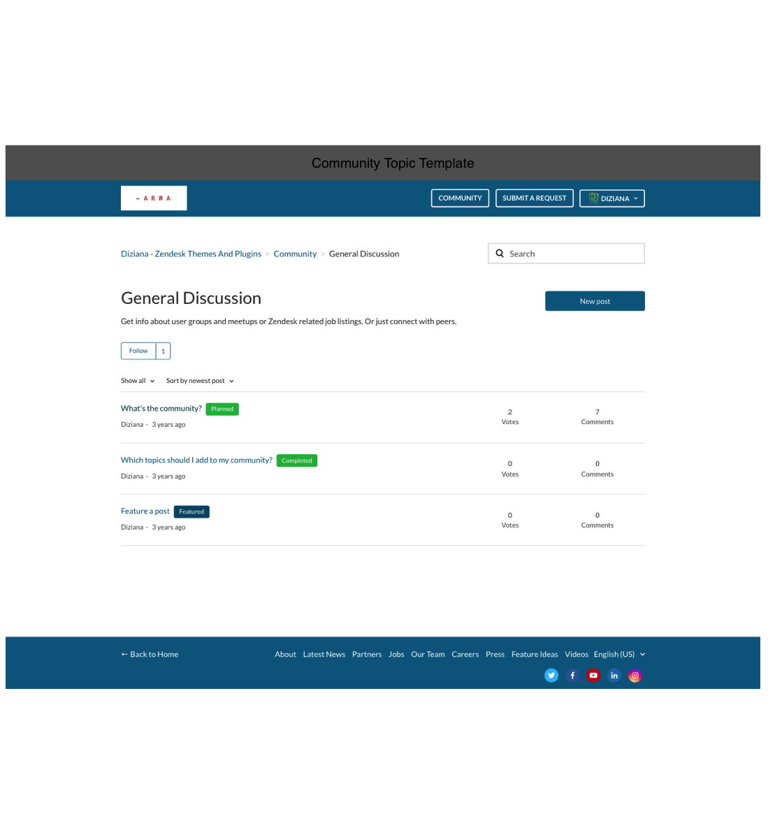 Theme License: Diziana Arwa Theme License for One (1) Zendesk Help Center or Brand.