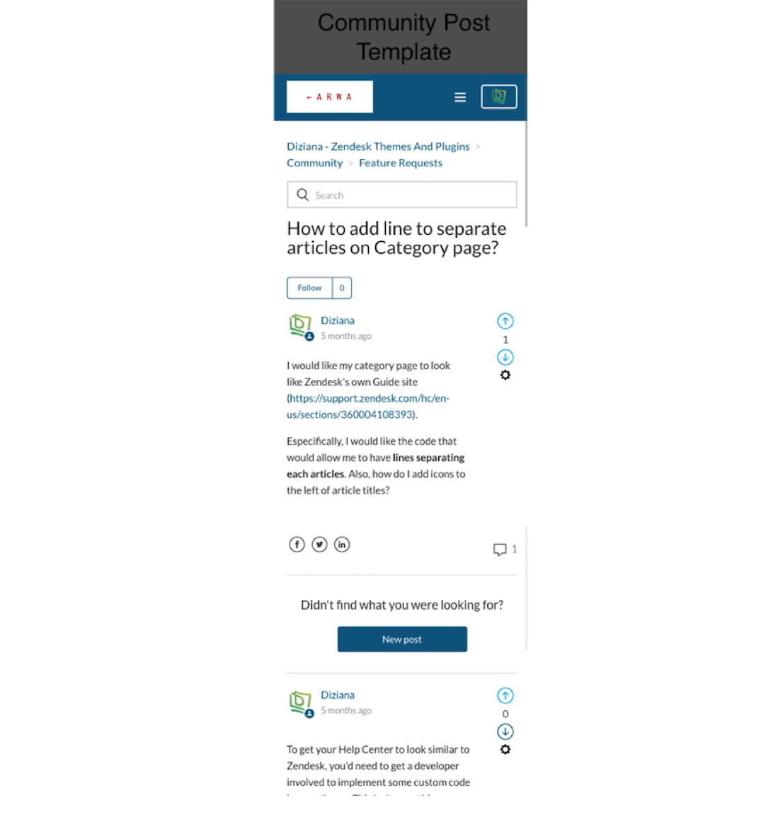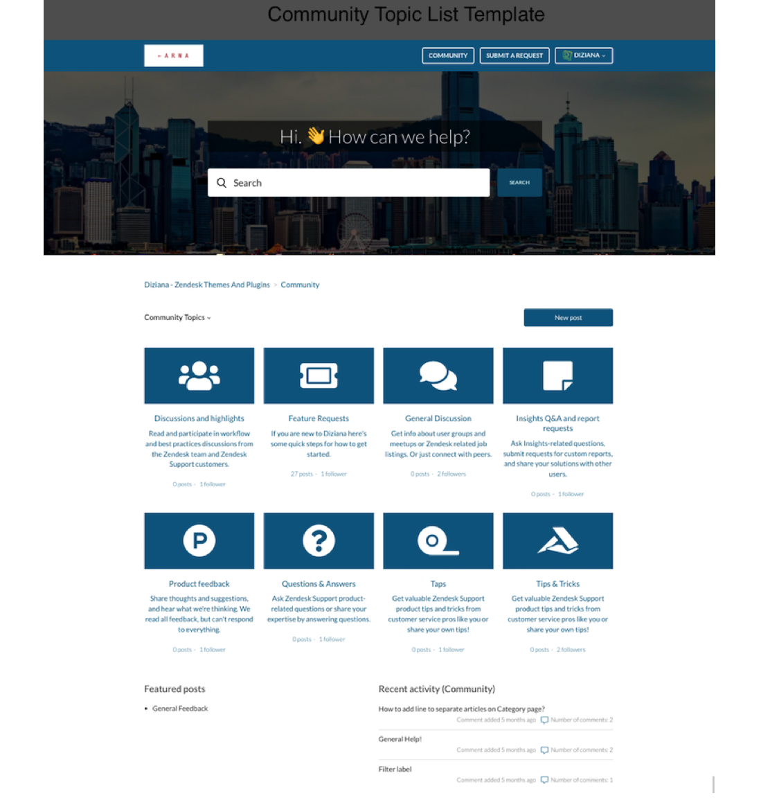 Diziana Arwa is a fully responsive Zendesk® Guide Help Center Theme (templates); an elegant one.