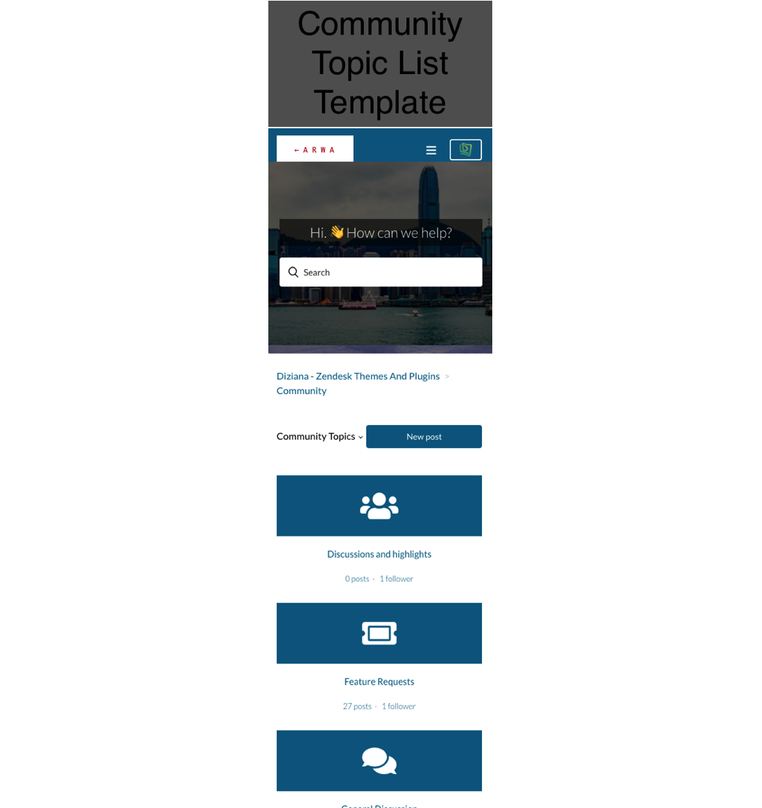 Diziana Arwa is a fully responsive Zendesk® Guide Help Center Theme (templates). It can be used by all kind of organizations -- Technology, Education, Tour & Travels, Food, Startups, IT, Medical, Construction, Builder, Marketing, Startup, Fashion, Government, NGO, Not-For-Profit - Companies, Business or Organizations.