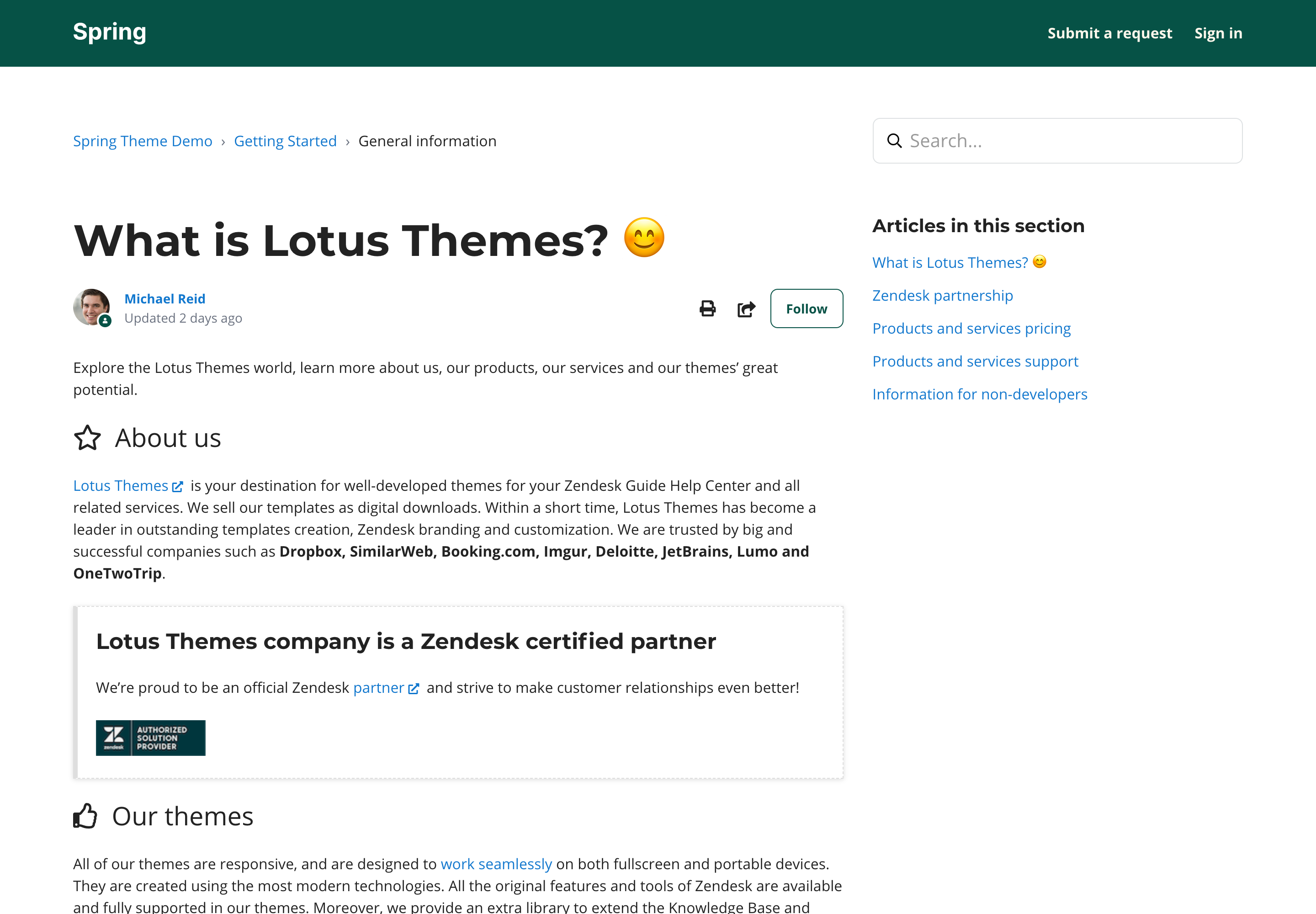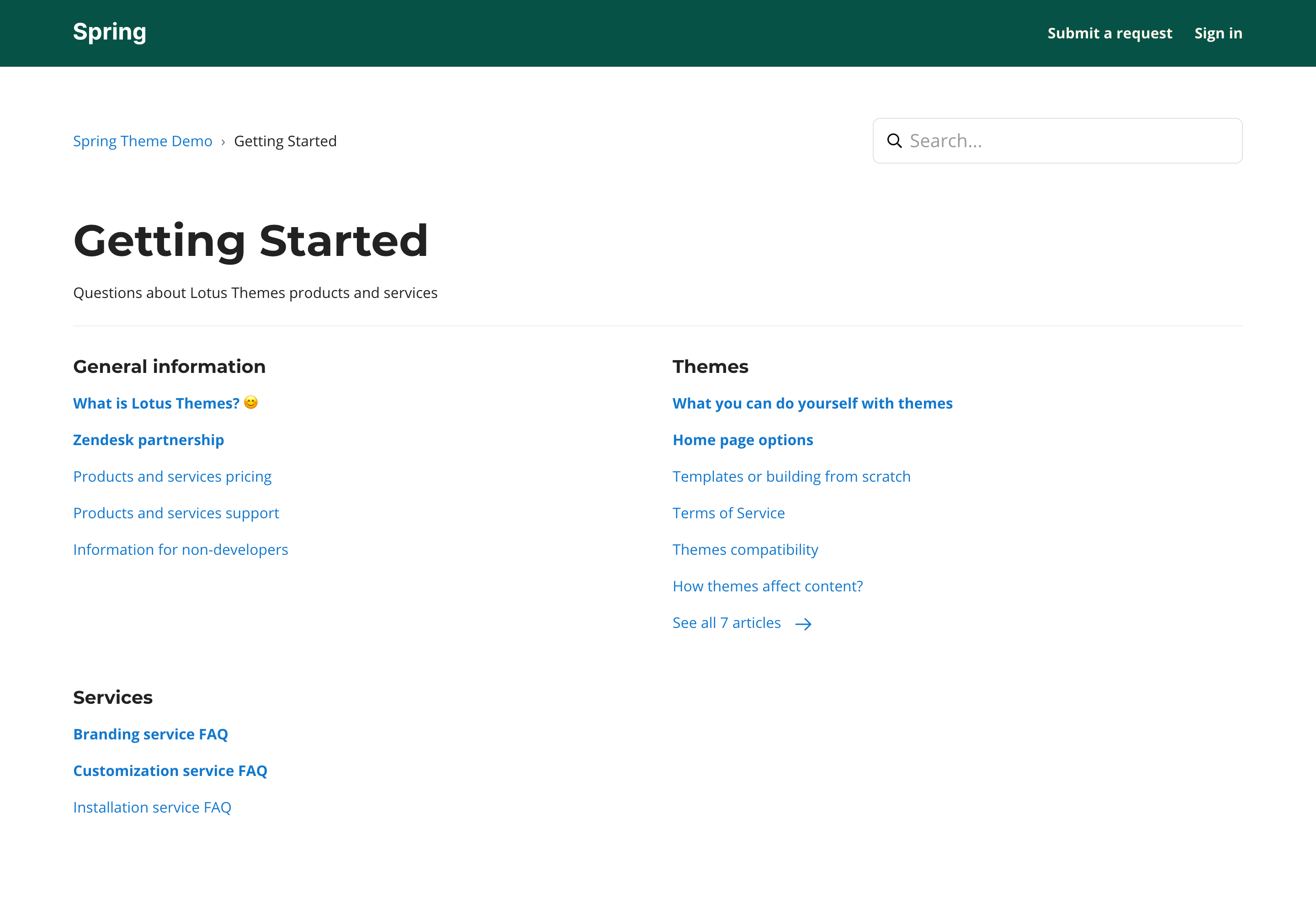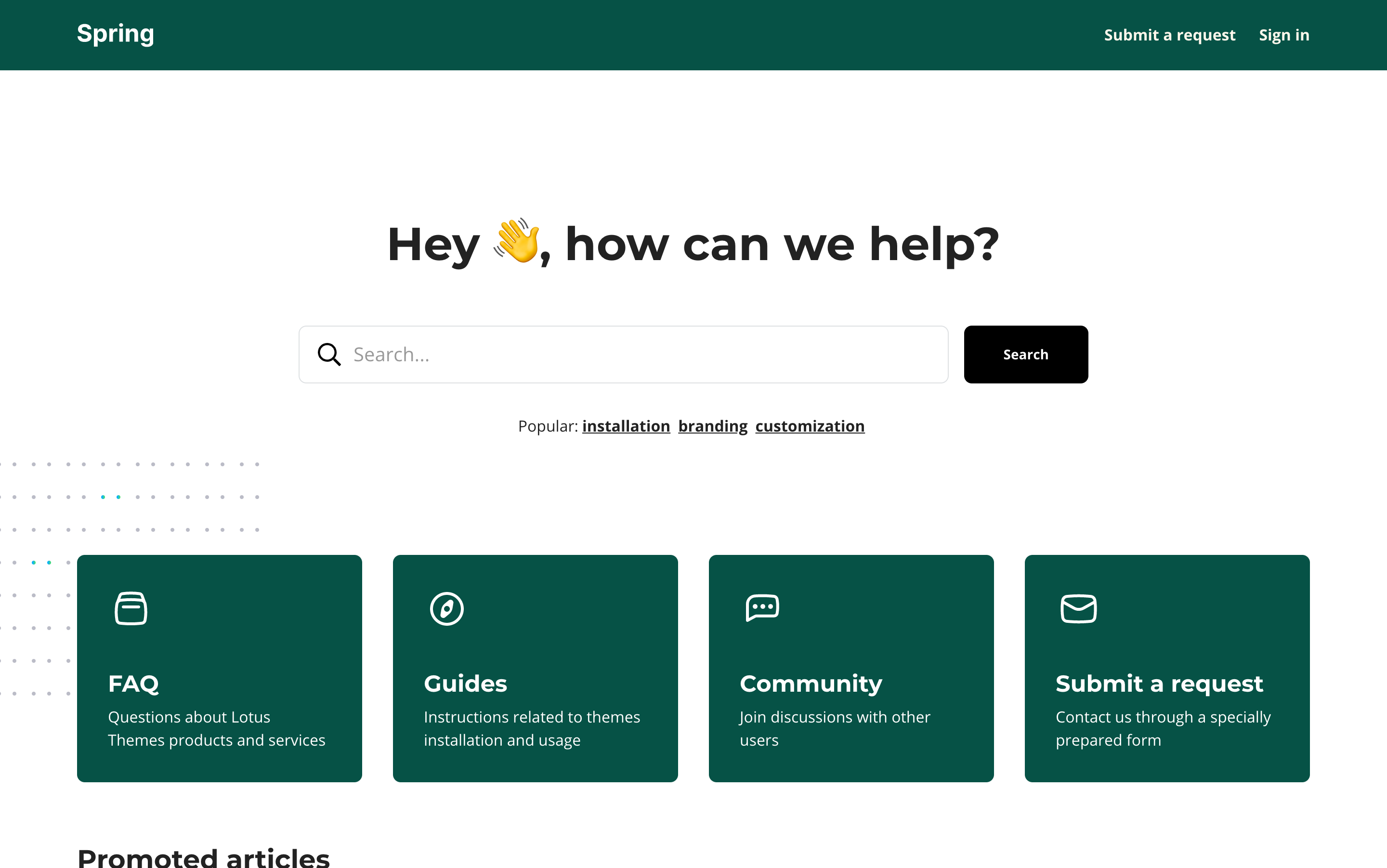 Spring is an accessible Zendesk theme with a highly customizable page layout. Even if you don’t have much experience in web development, you can easily make changes.