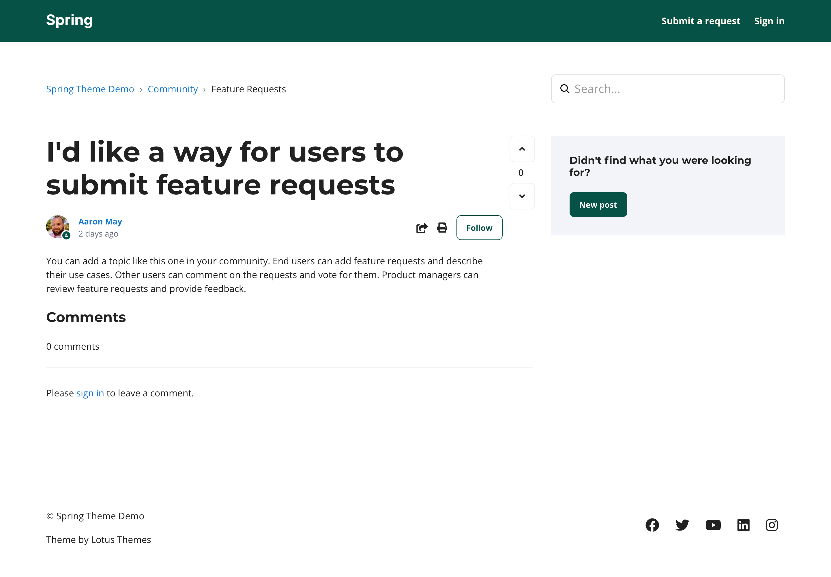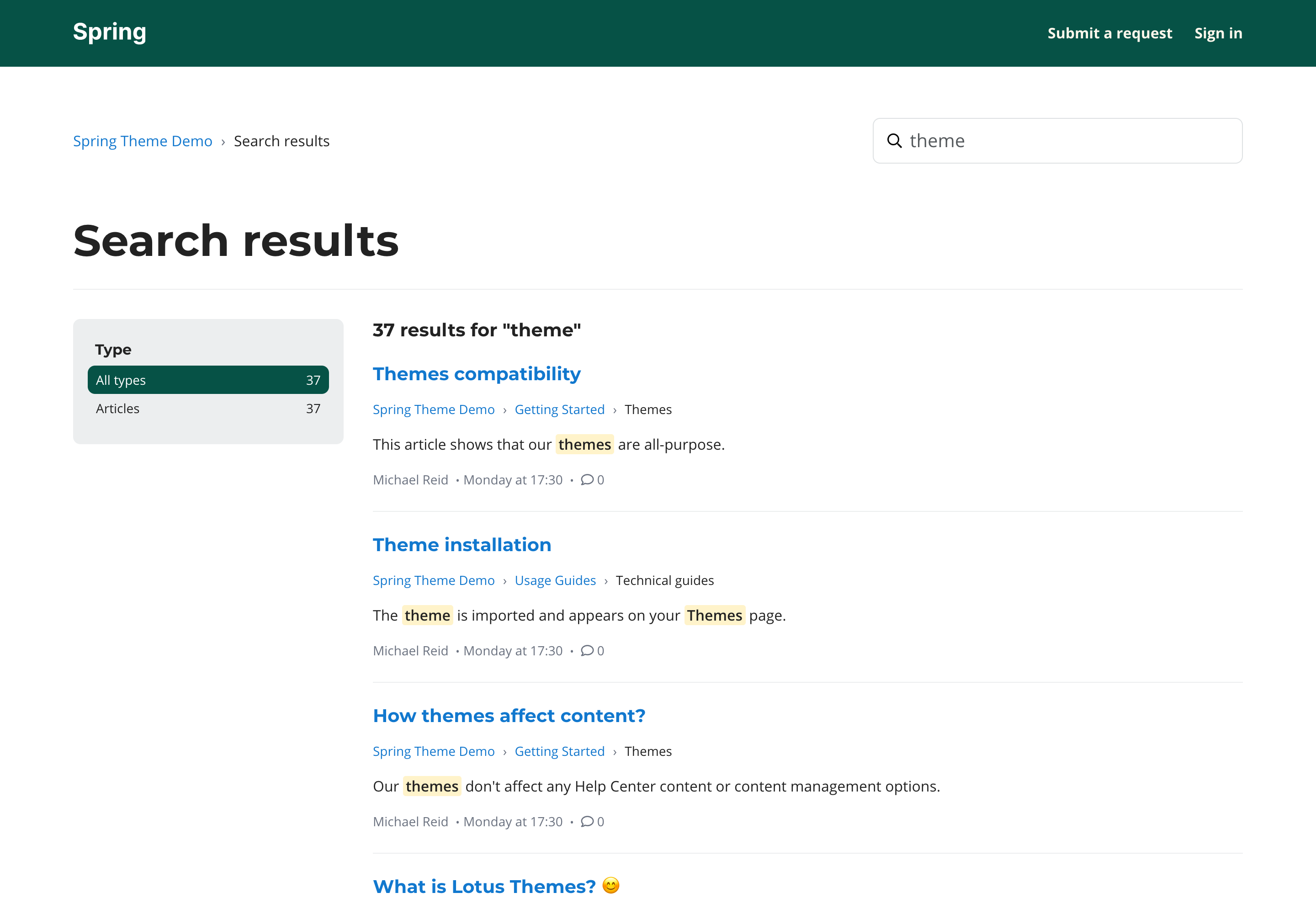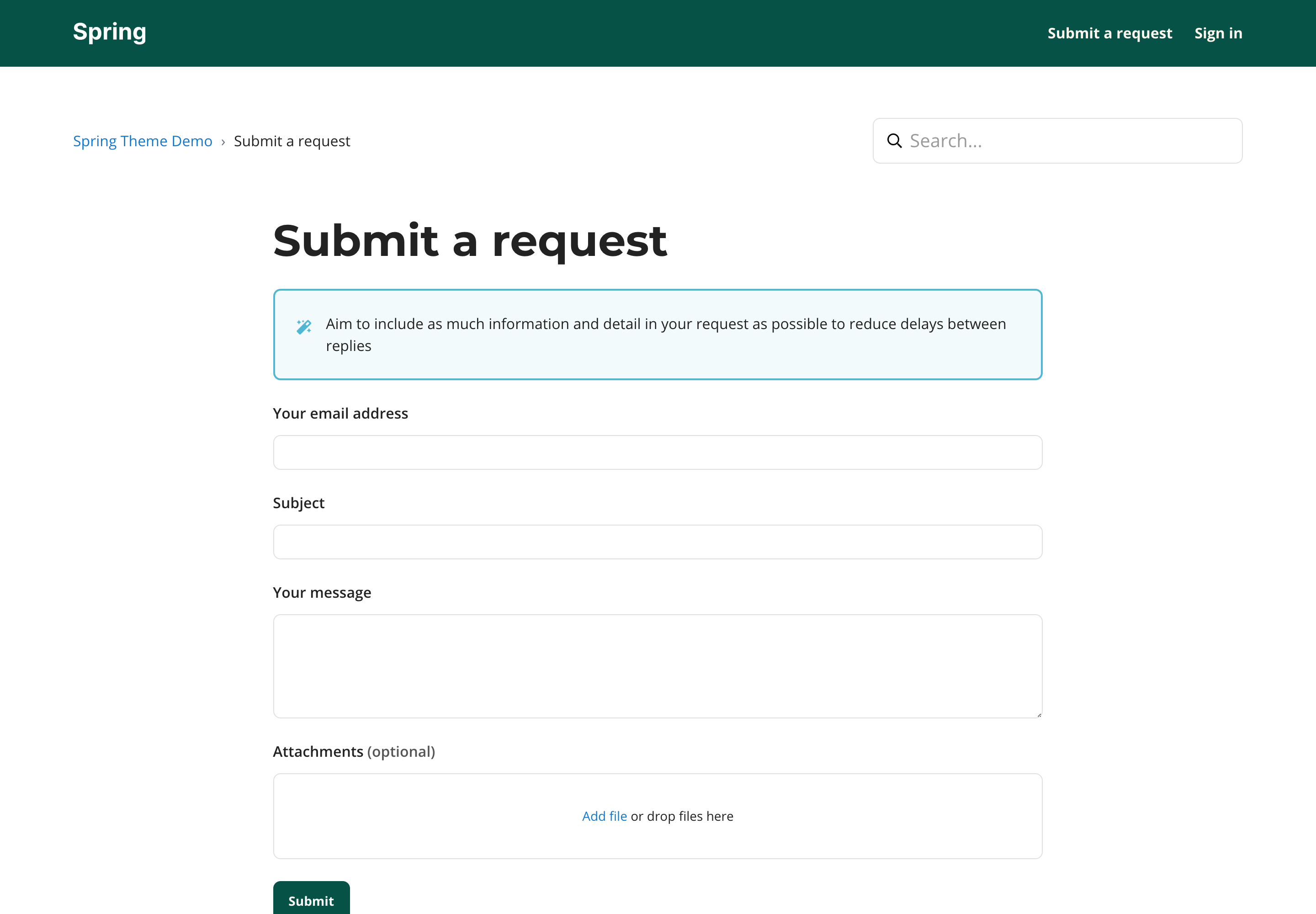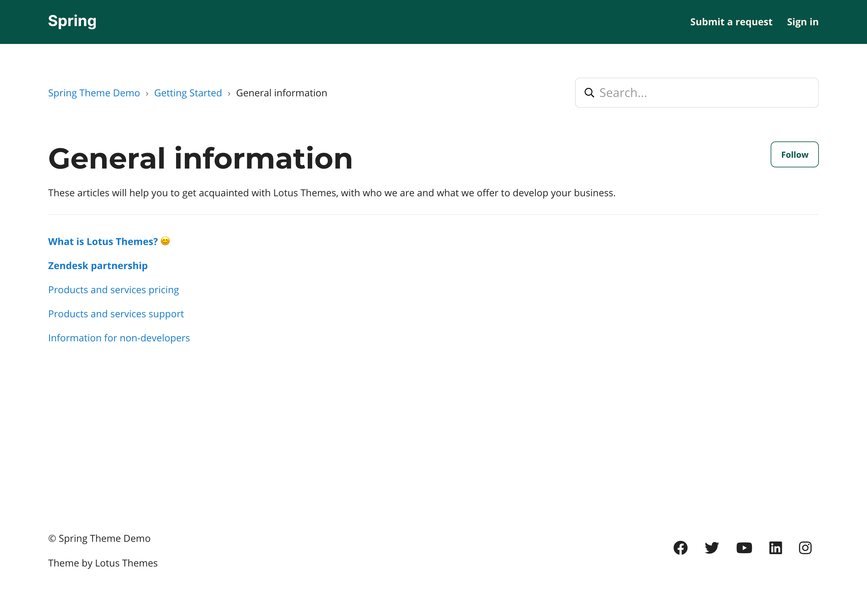 Spring is an accessible Zendesk theme with a highly customizable page layout. Even if you don’t have much experience in web development, you can easily make changes.