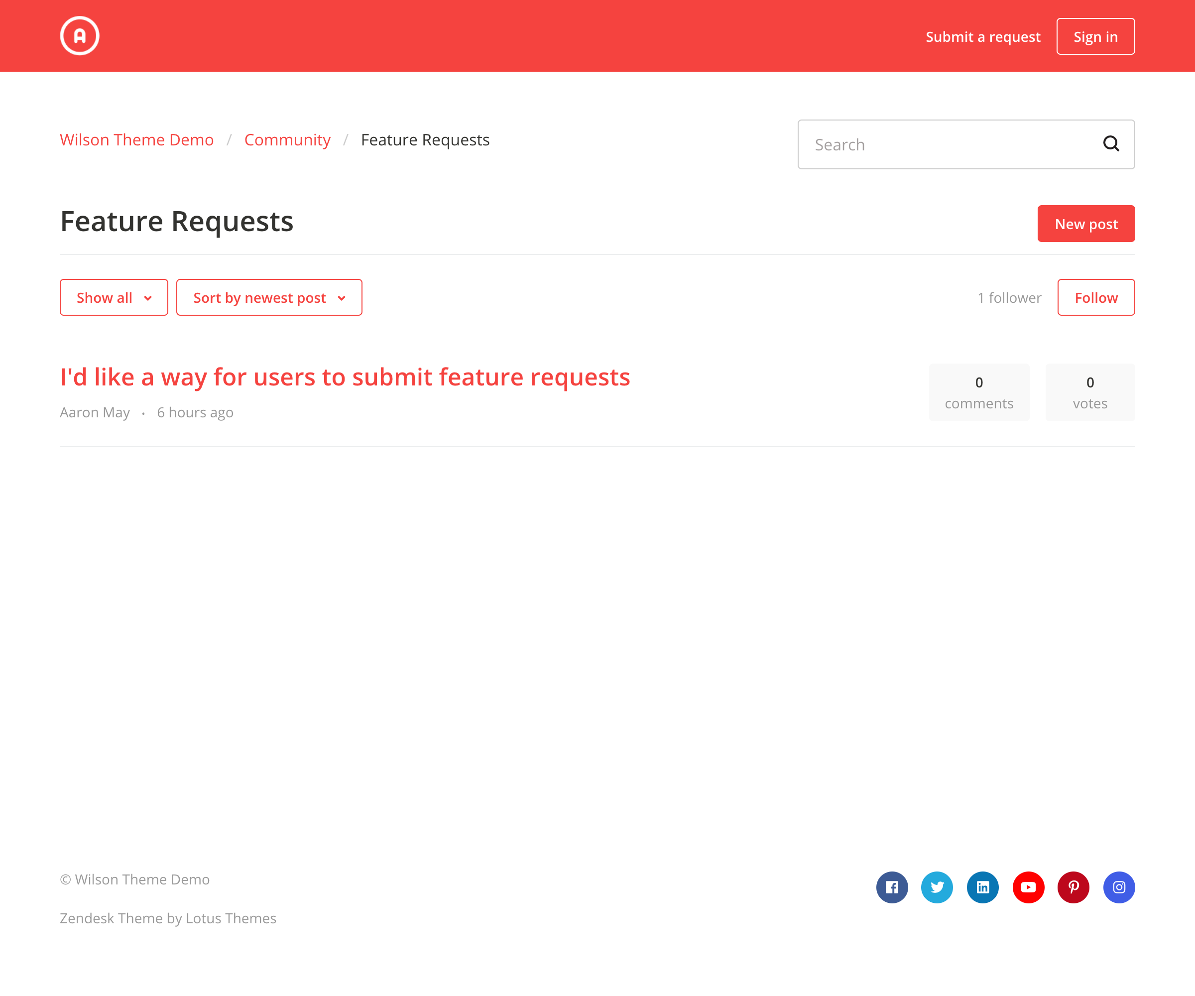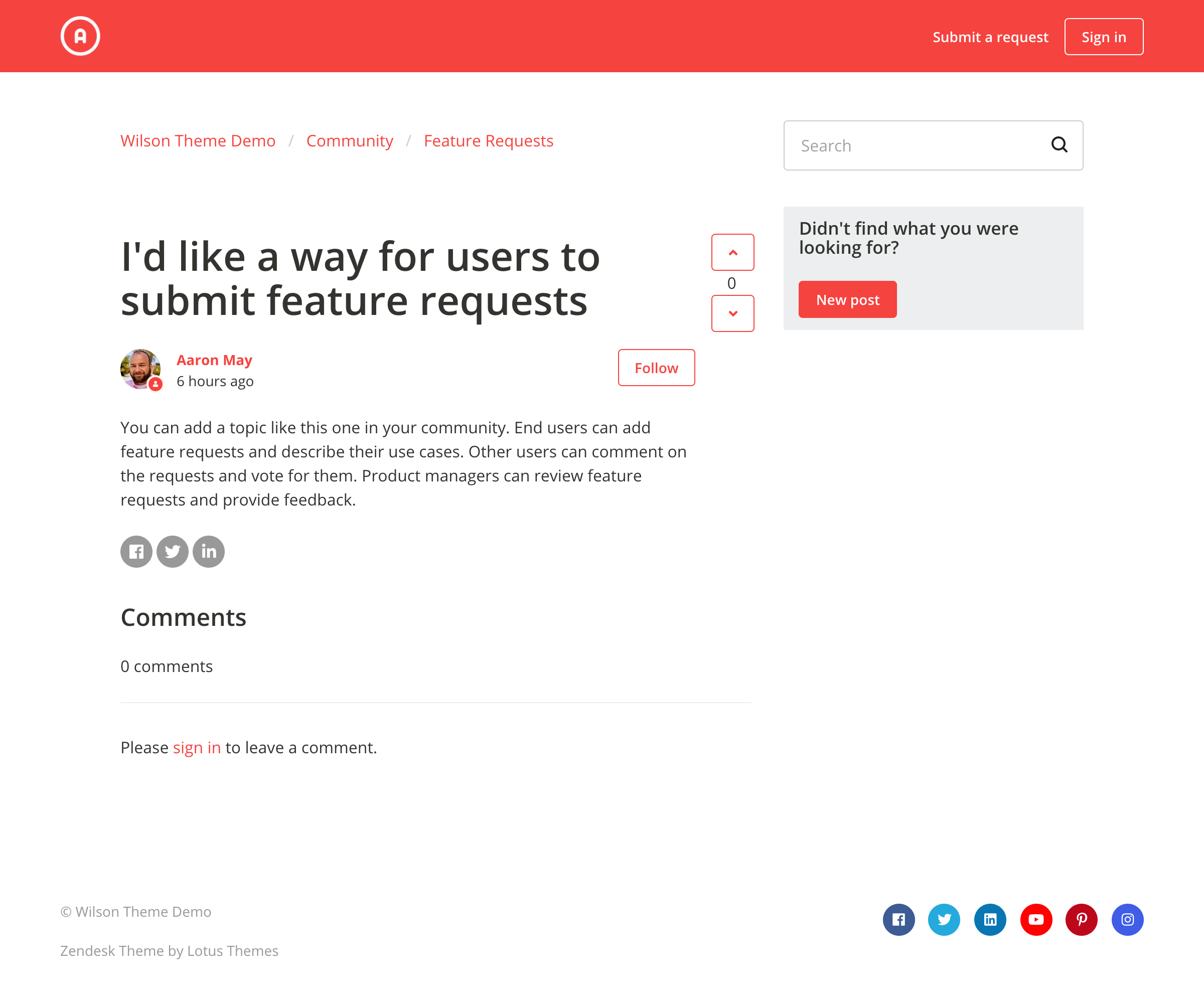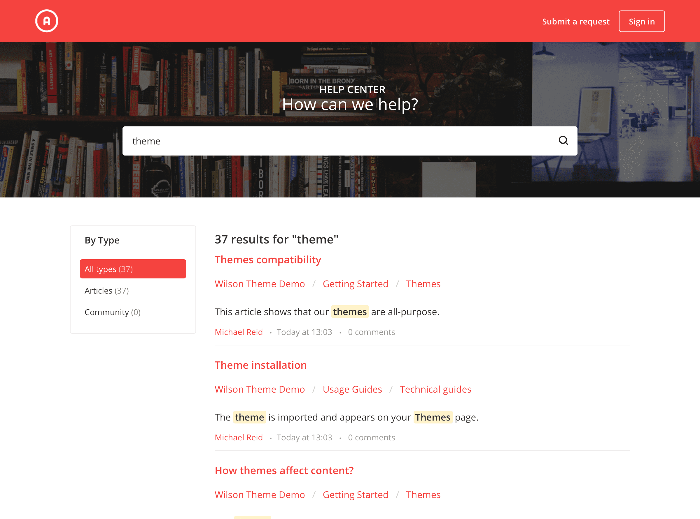 Wilson is a mobile-friendly Zendesk theme with a non-standard layout. It lets you organize help center elements as you wish and keep navigation super easy.